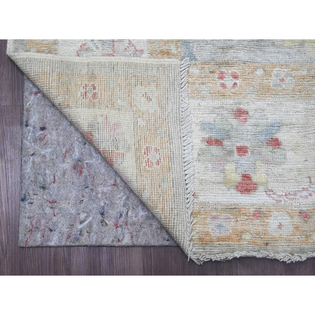6'2"x11'10" Cloud Gray, Hand Knotted, Afghan Angora Oushak With Large Leaf Design, Vegetable Dyes, 100% Wool, Wide Runner, Oriental Rug FWR124632