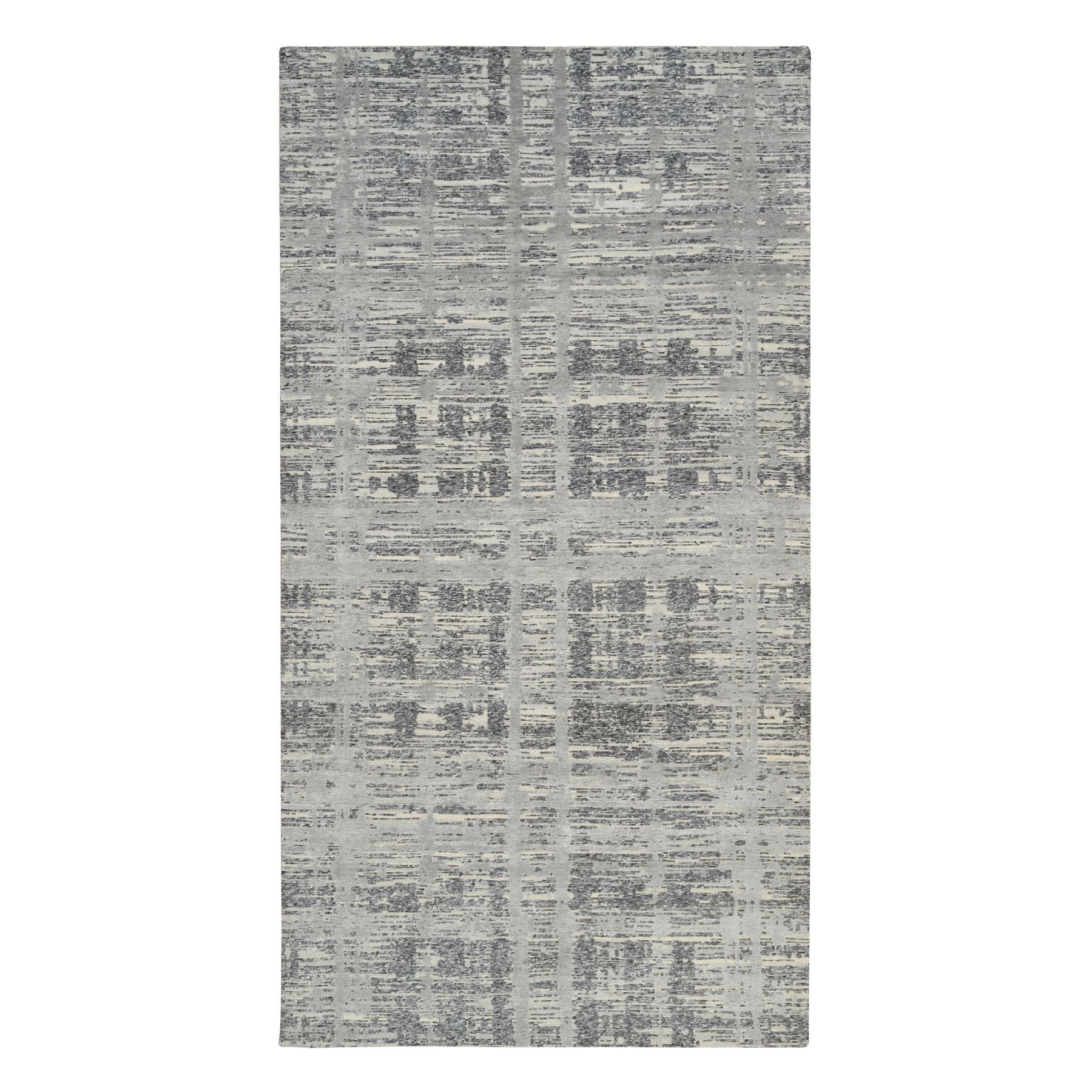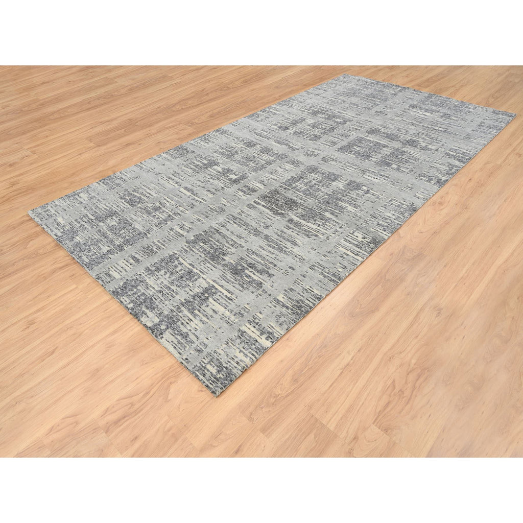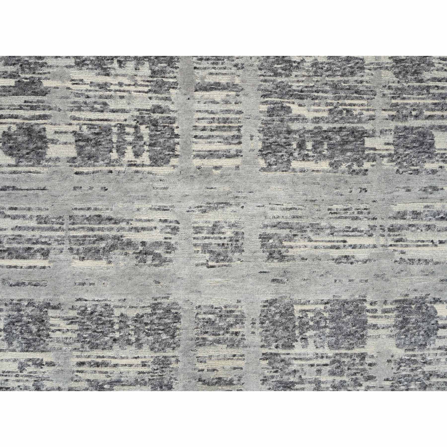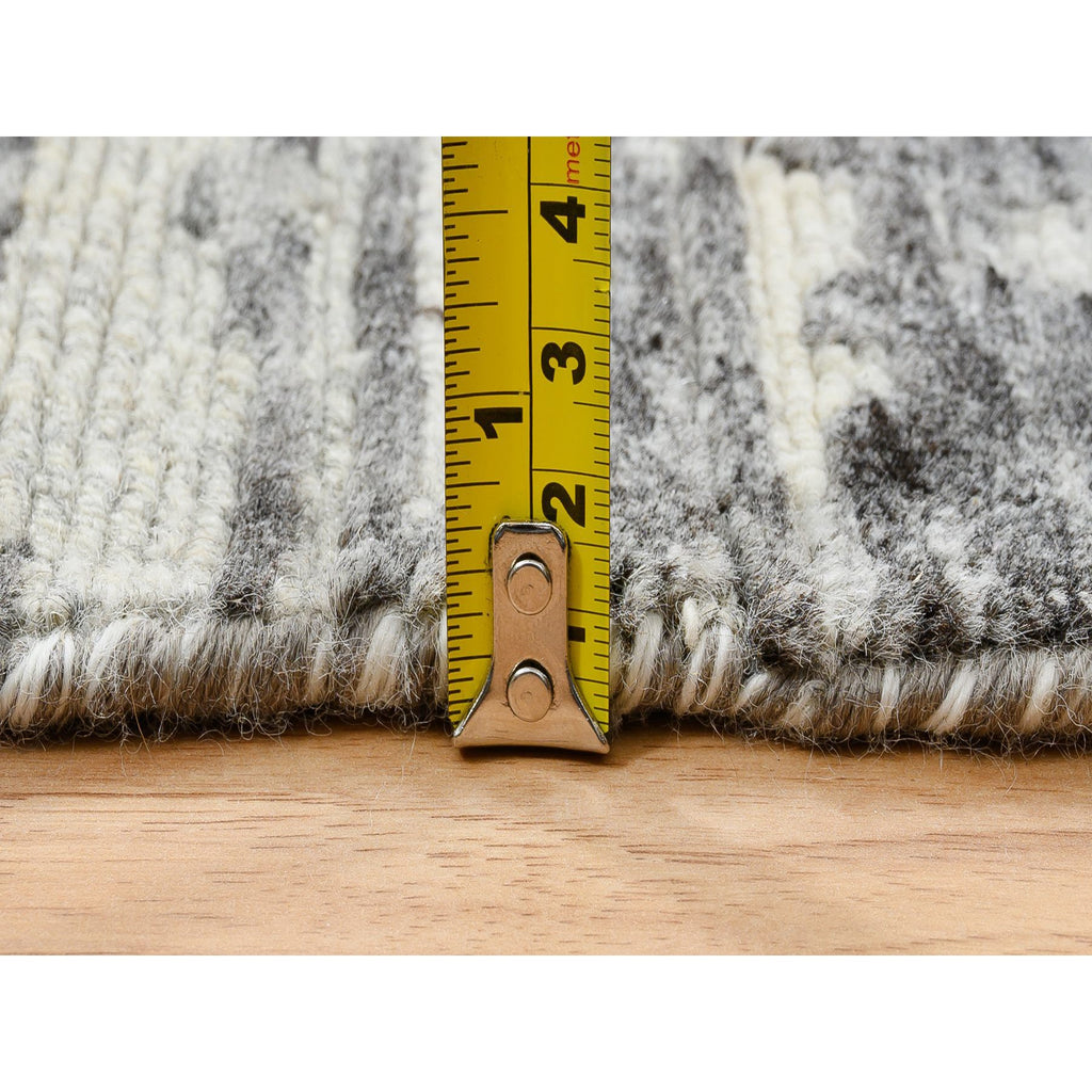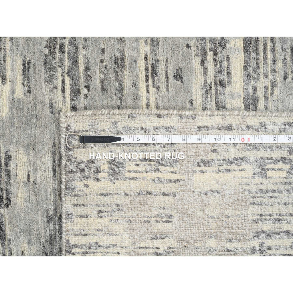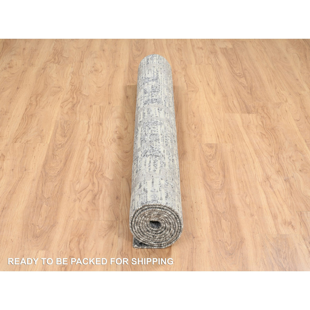 6'2"x12' Light Gray, Hand Spun Undyed Natural Wool, Hand Knotted, Modern Criss Cross Erased Design, Gallery Size Runner Oriental Rug FWR388146