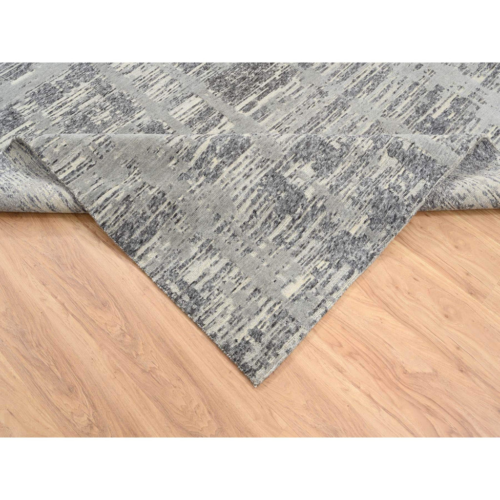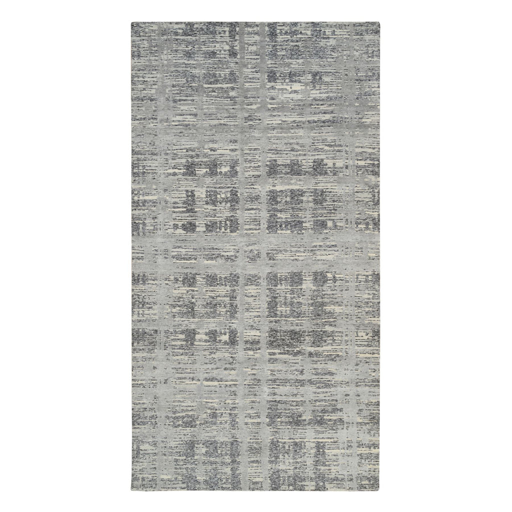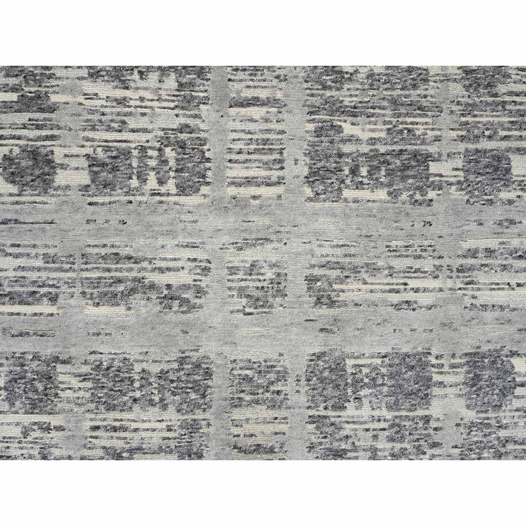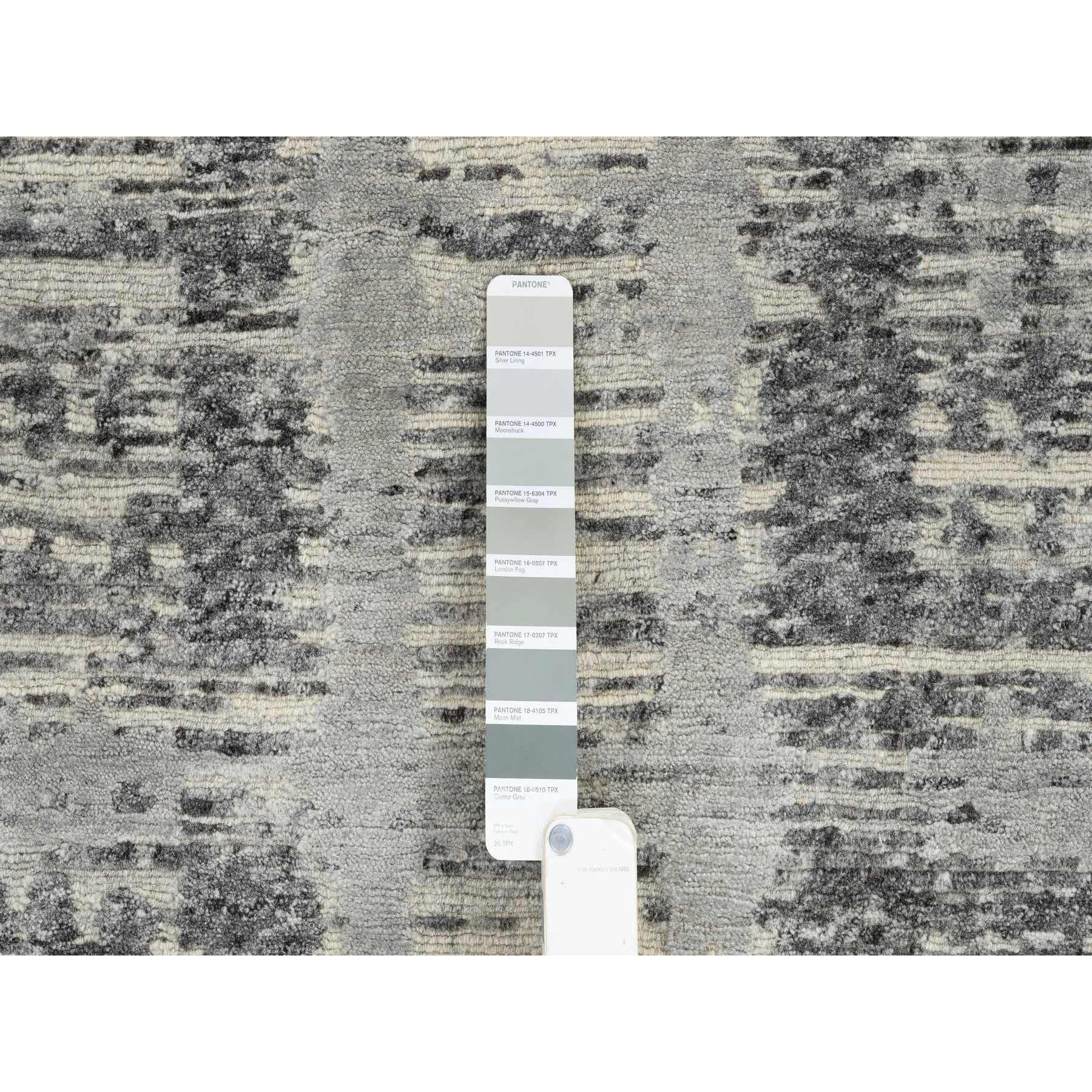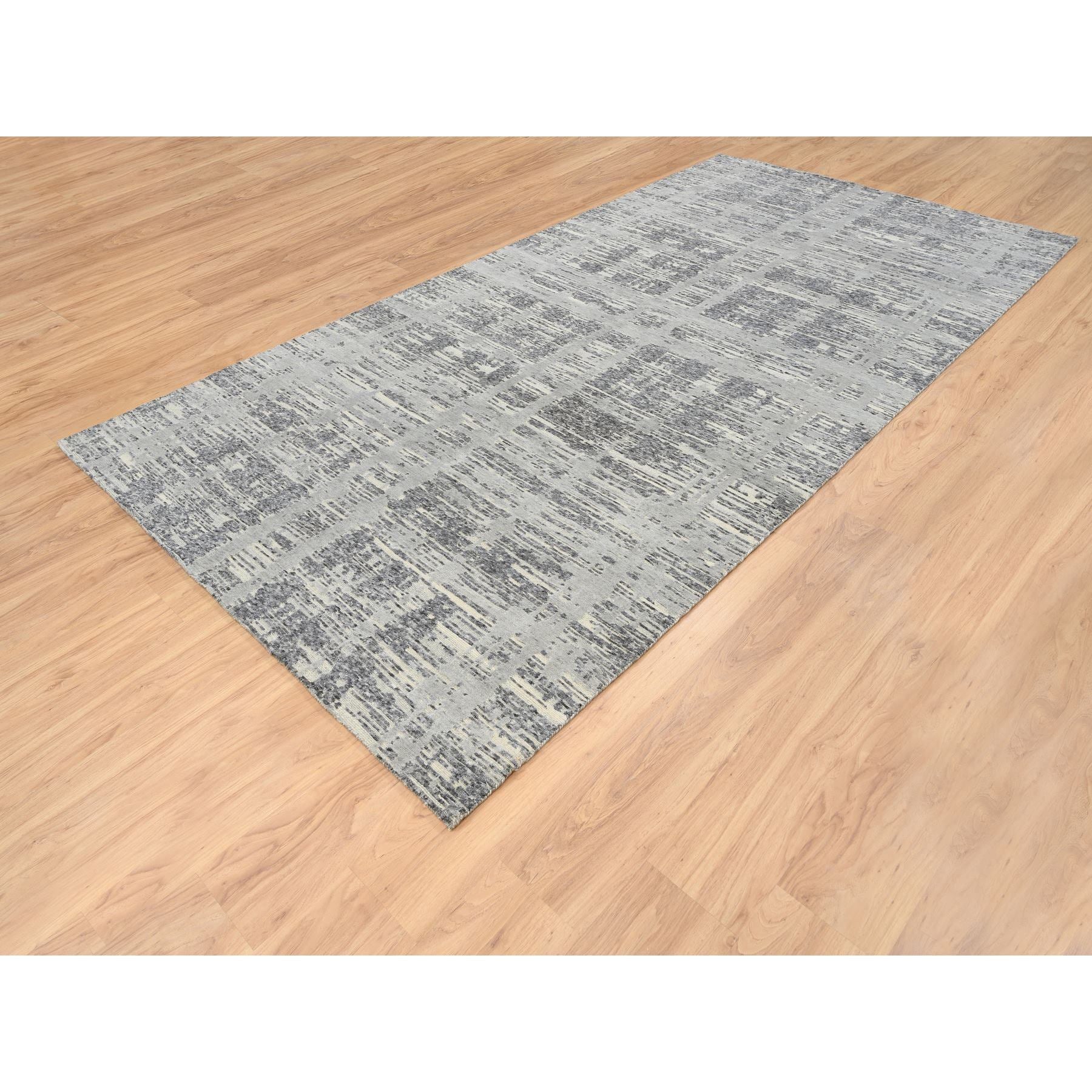 6'2"x12' Light Gray, Hand Spun Undyed Natural Wool, Hand Knotted, Modern Criss Cross Erased Design, Gallery Size Runner Oriental Rug FWR388146