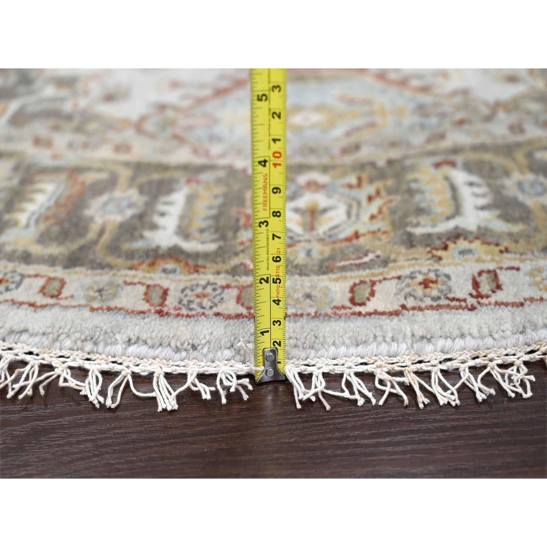 6'2"x6'2" Goose Gray, Karajeh Design With Tribal Medallions, Pure Wool, Hand Knotted, Round Oriental Rug FWR508206