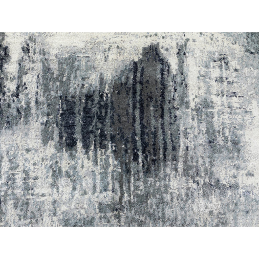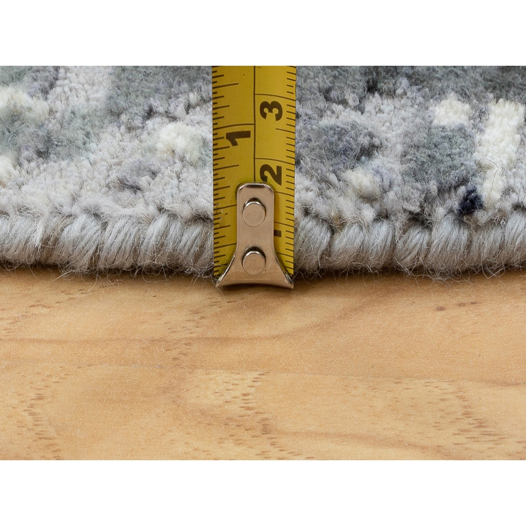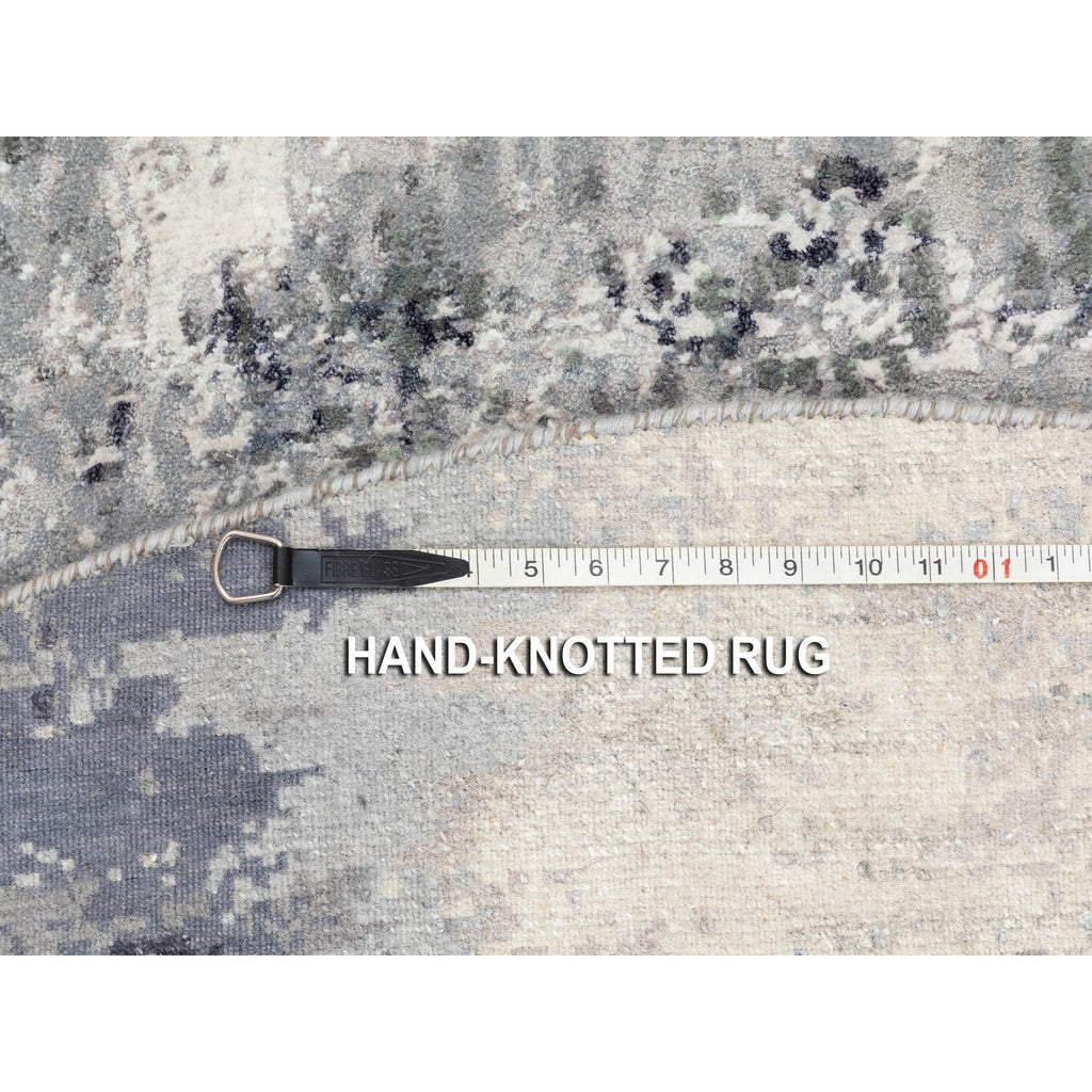 6'2"x6'2" Gray With Black Abstract Design Wool And Silk Hand Knotted Round Oriental Rug FWR351738