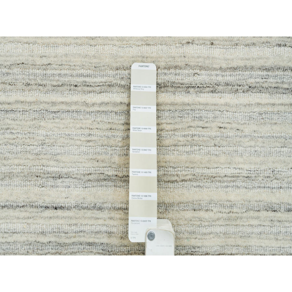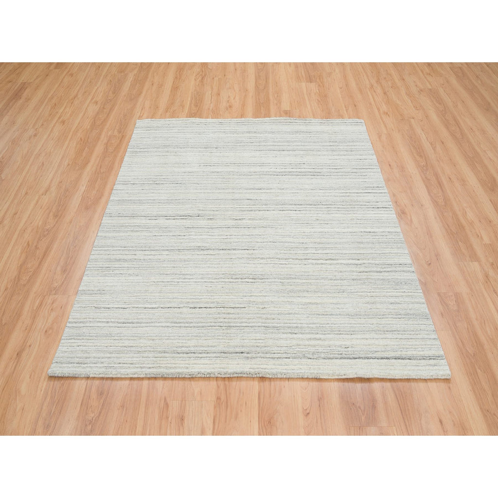 6'2"x6'2" Ivory And Cream, Undyed Natural Wool Modern Design, Thick And Plush Plain Hand Loomed, Square Oriental Rug FWR390060