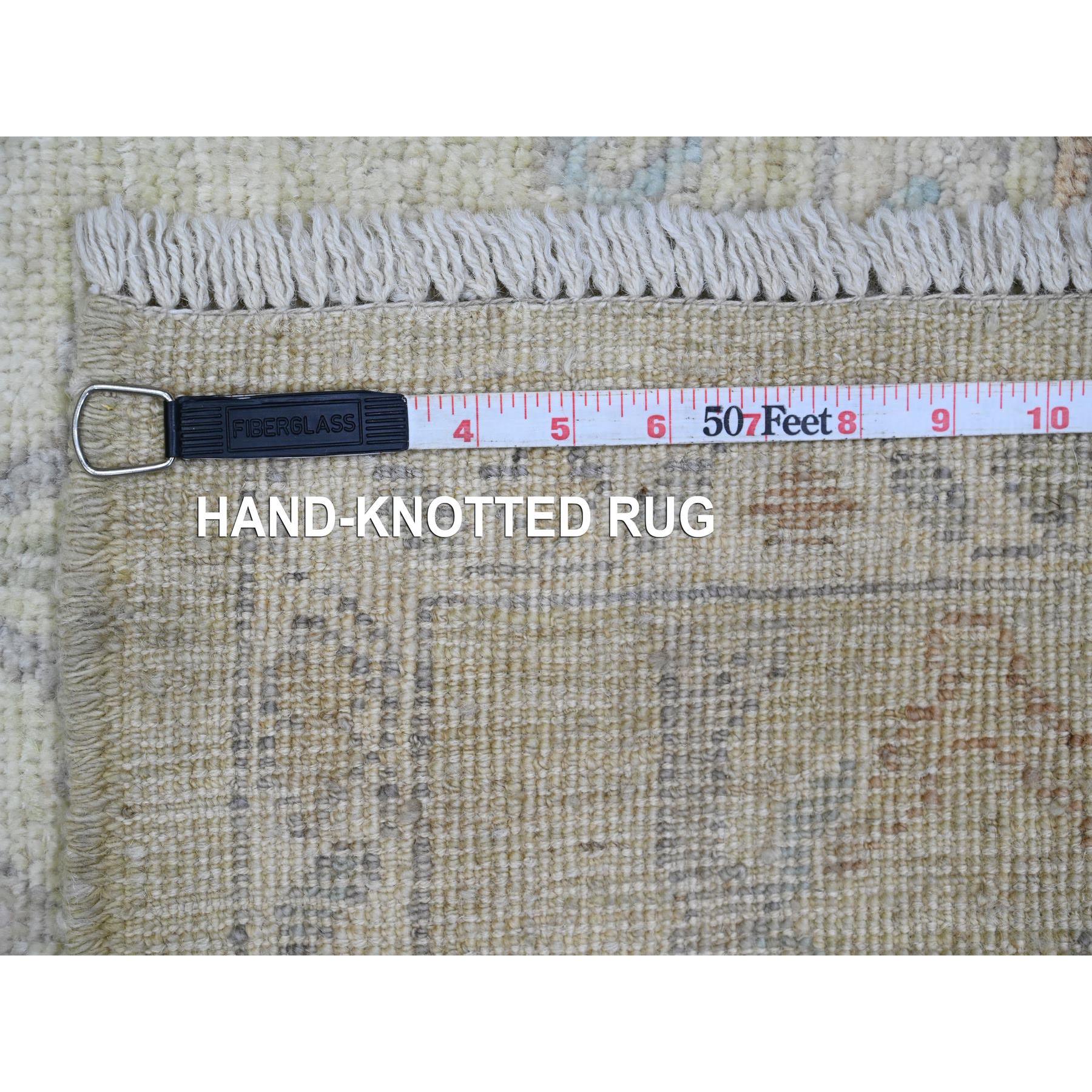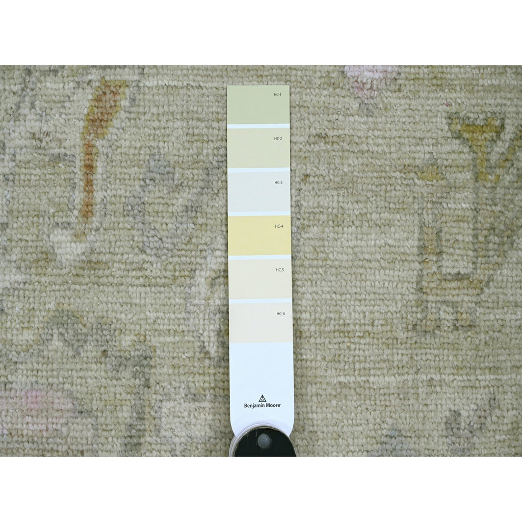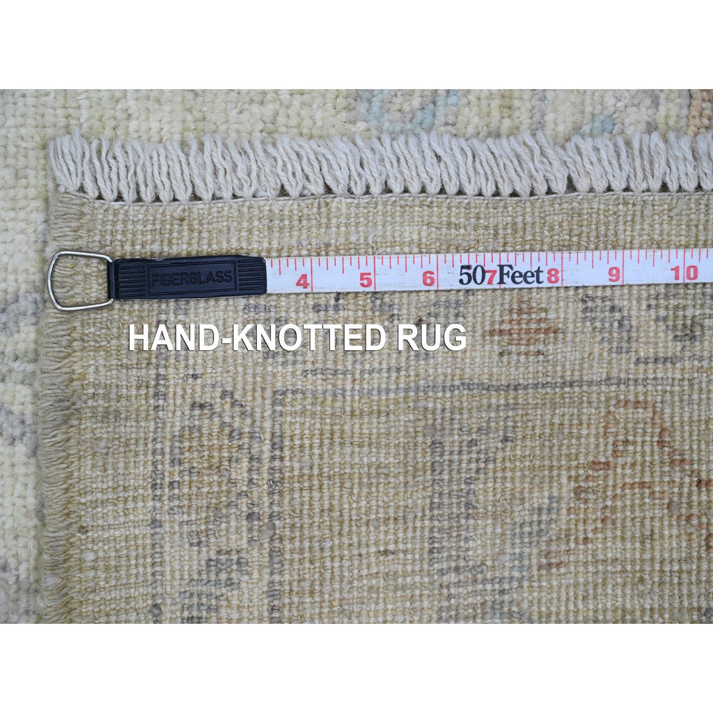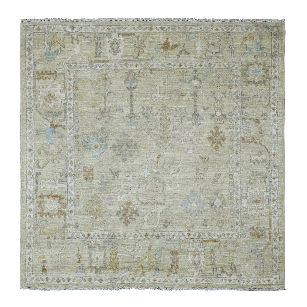 6'2"x6'2" Laurel Green, Afghan Angora Oushak With Floral Pattern, Hand Knotted, Vegetable Dyes, 100% Wool, Square, Oriental Rug FWR121188