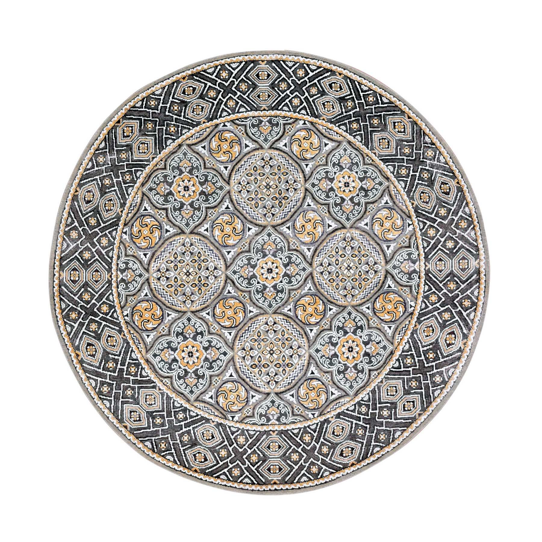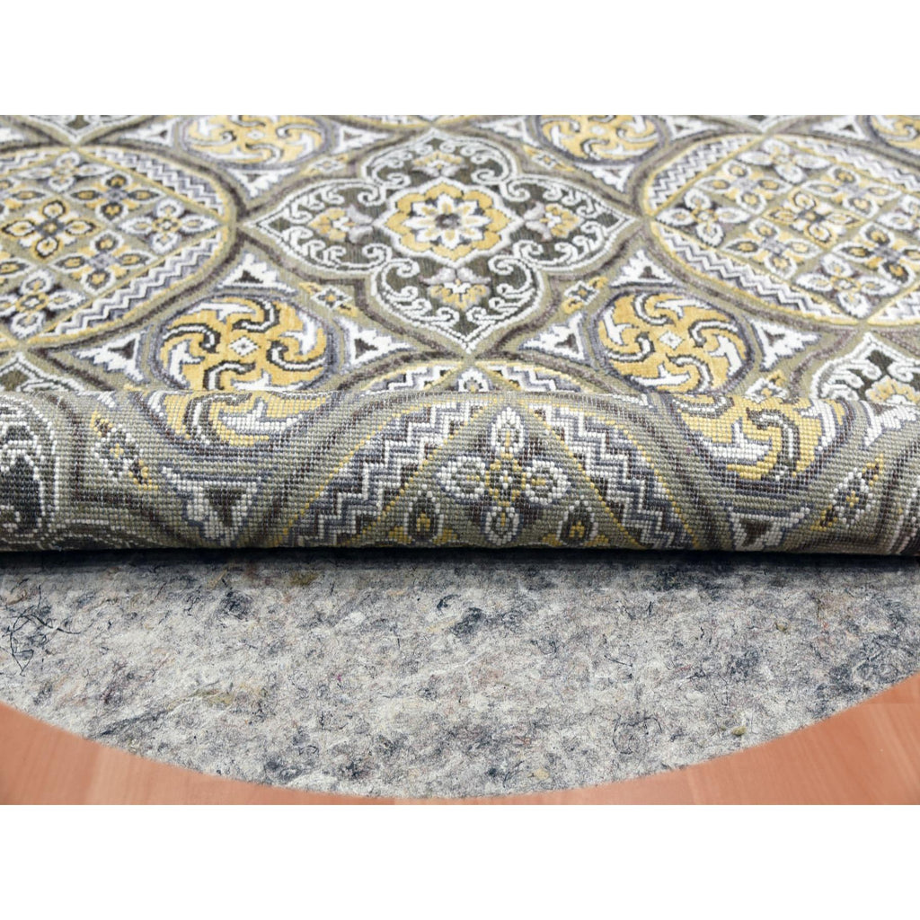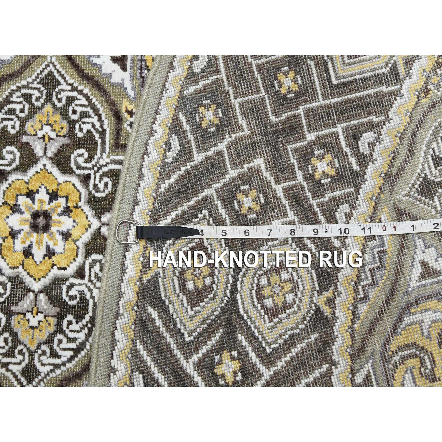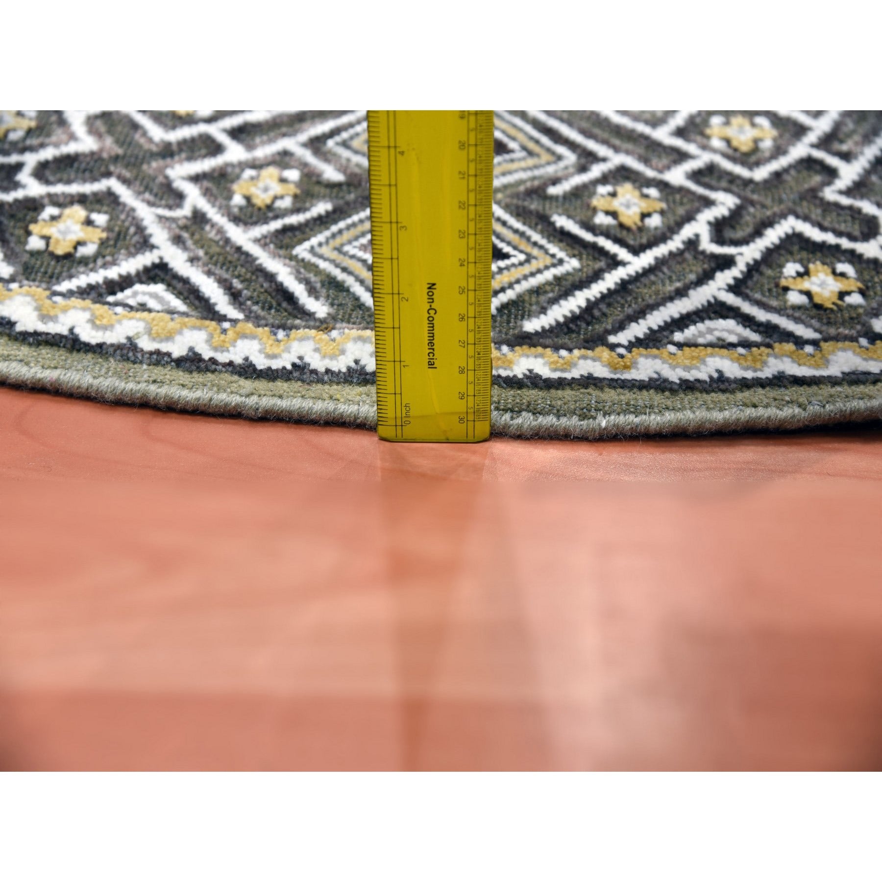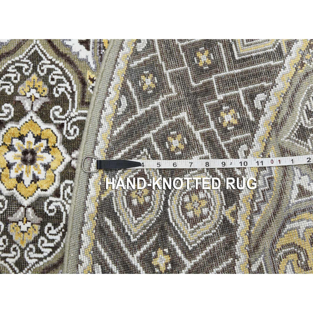 6'2"x6'2" Taupe-brown Textured Wool And Silk Mughal Inspired Medallions Design Hand-knotted Round Oriental Rug FWR450774