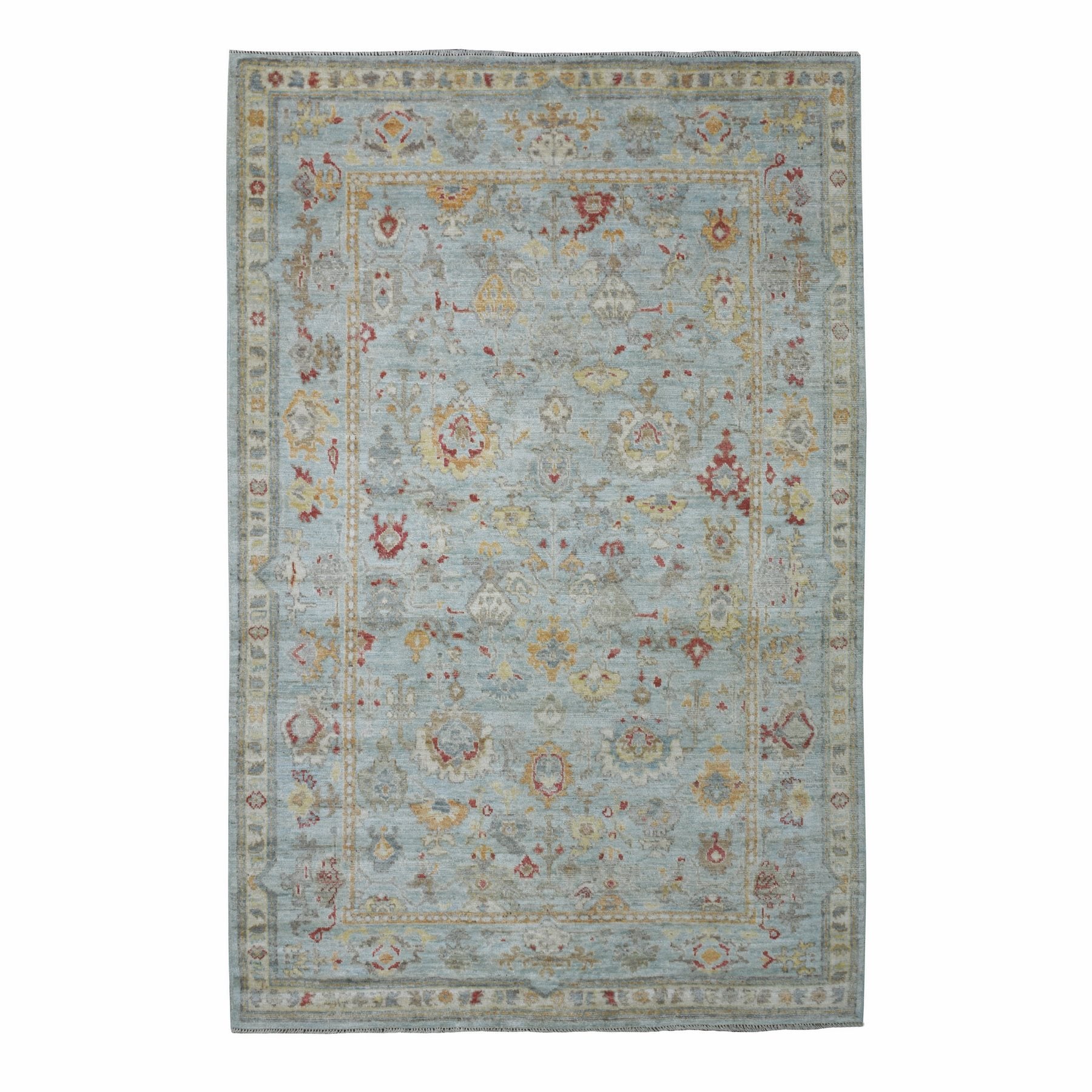 6'2"x9'5" Light Blue, Afghan Angora Oushak With All Over Floral Pattern, Hand Knotted, Natural Wool Oriental Rug FWR423096