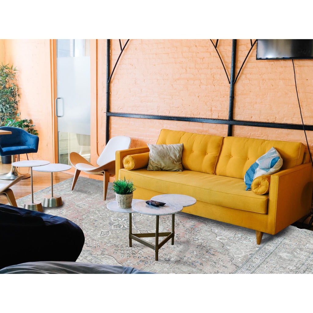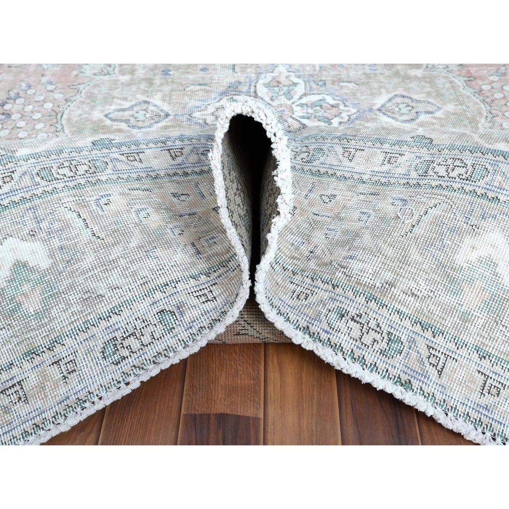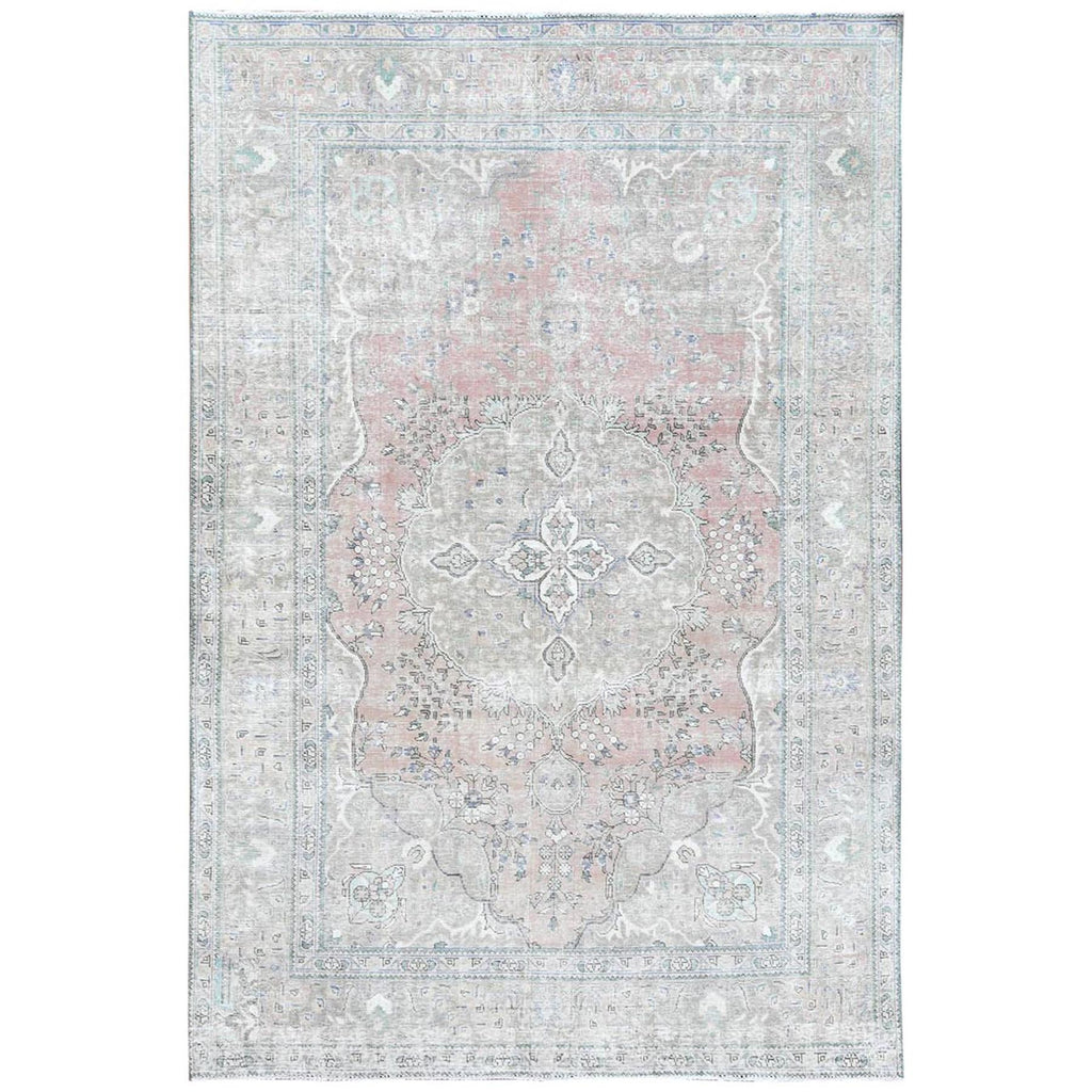 6'2"x9'7" Red Clean Natural Wool Shabby Chic Distressed Old Persian Tabriz Medallion Design Hand Knotted Oriental Rug FWR361116