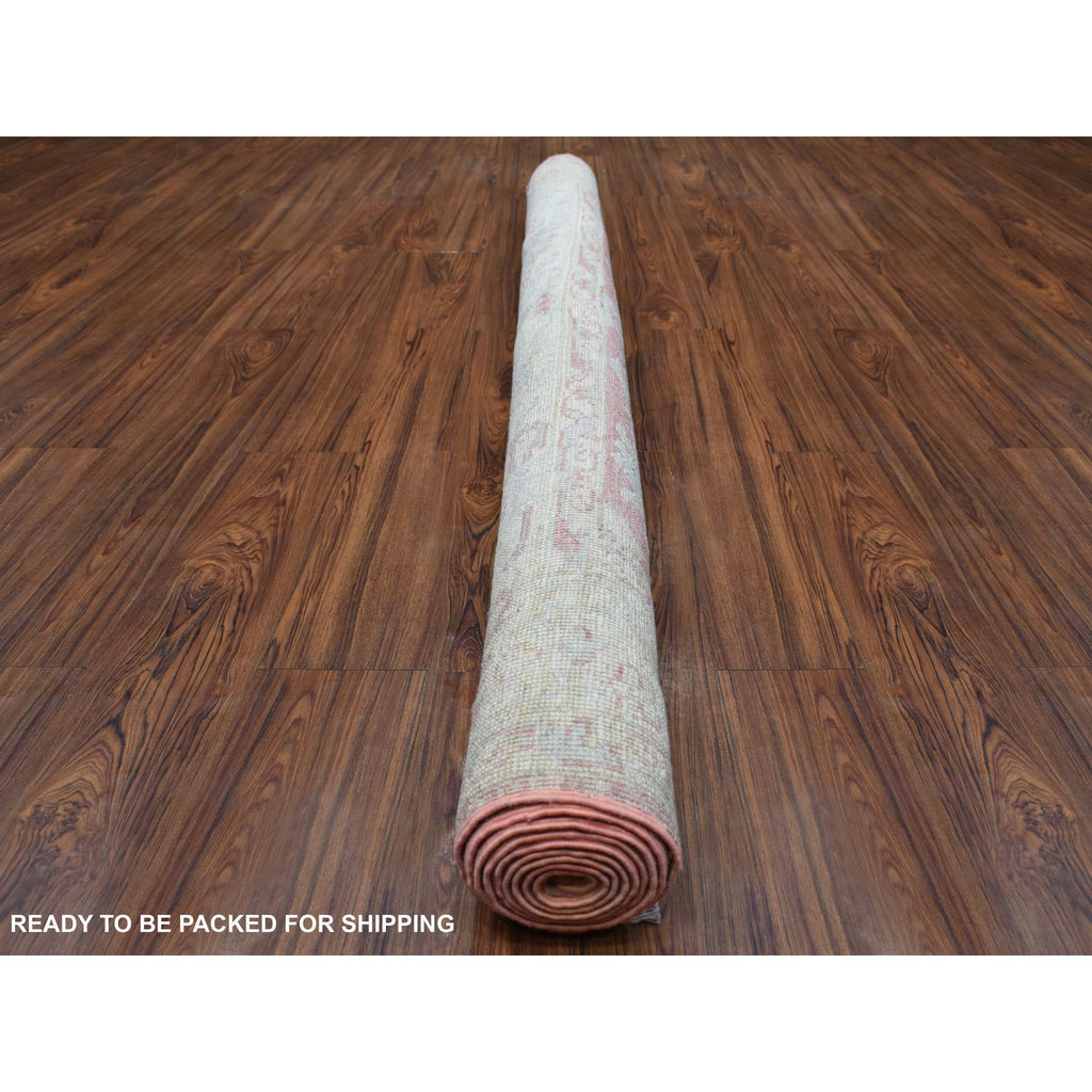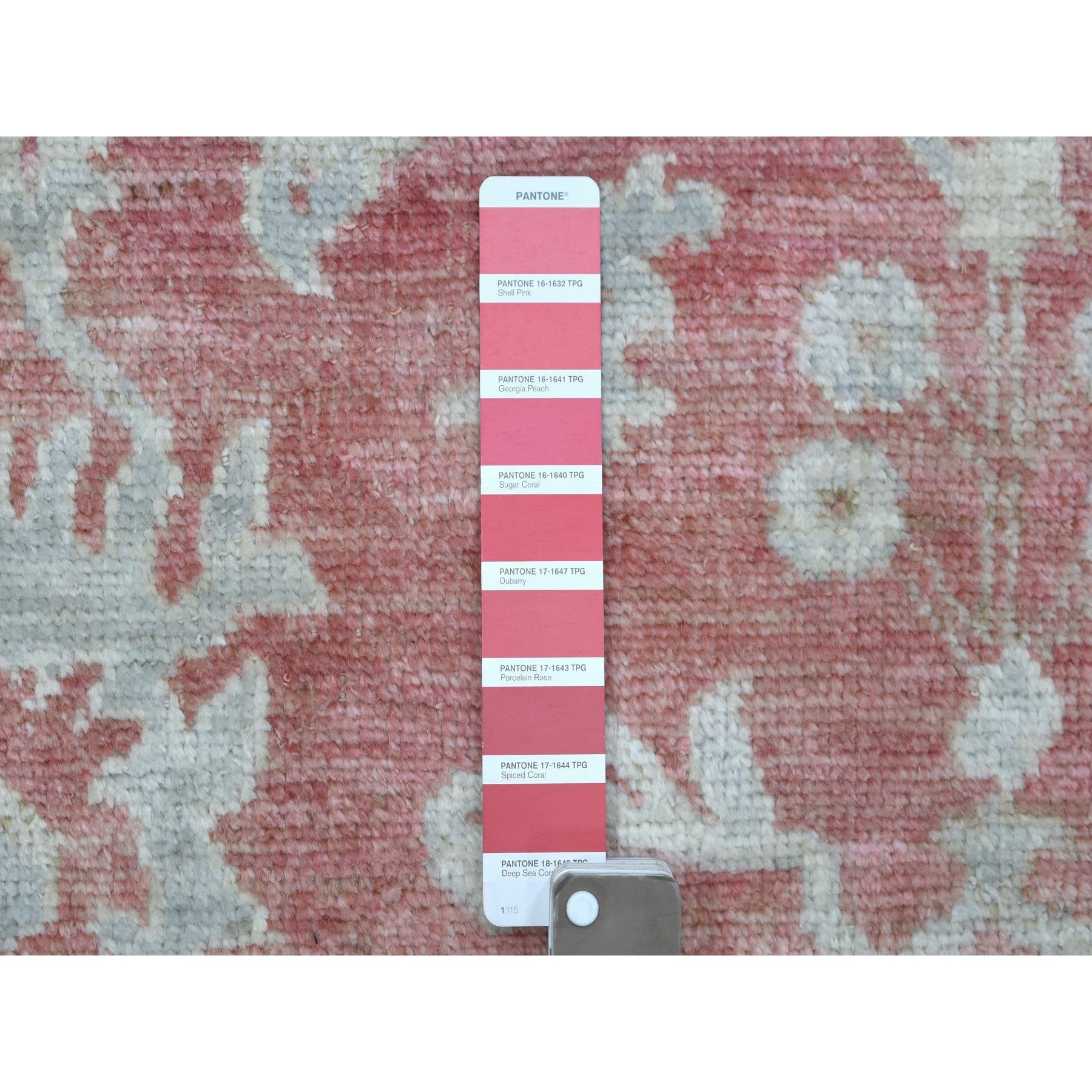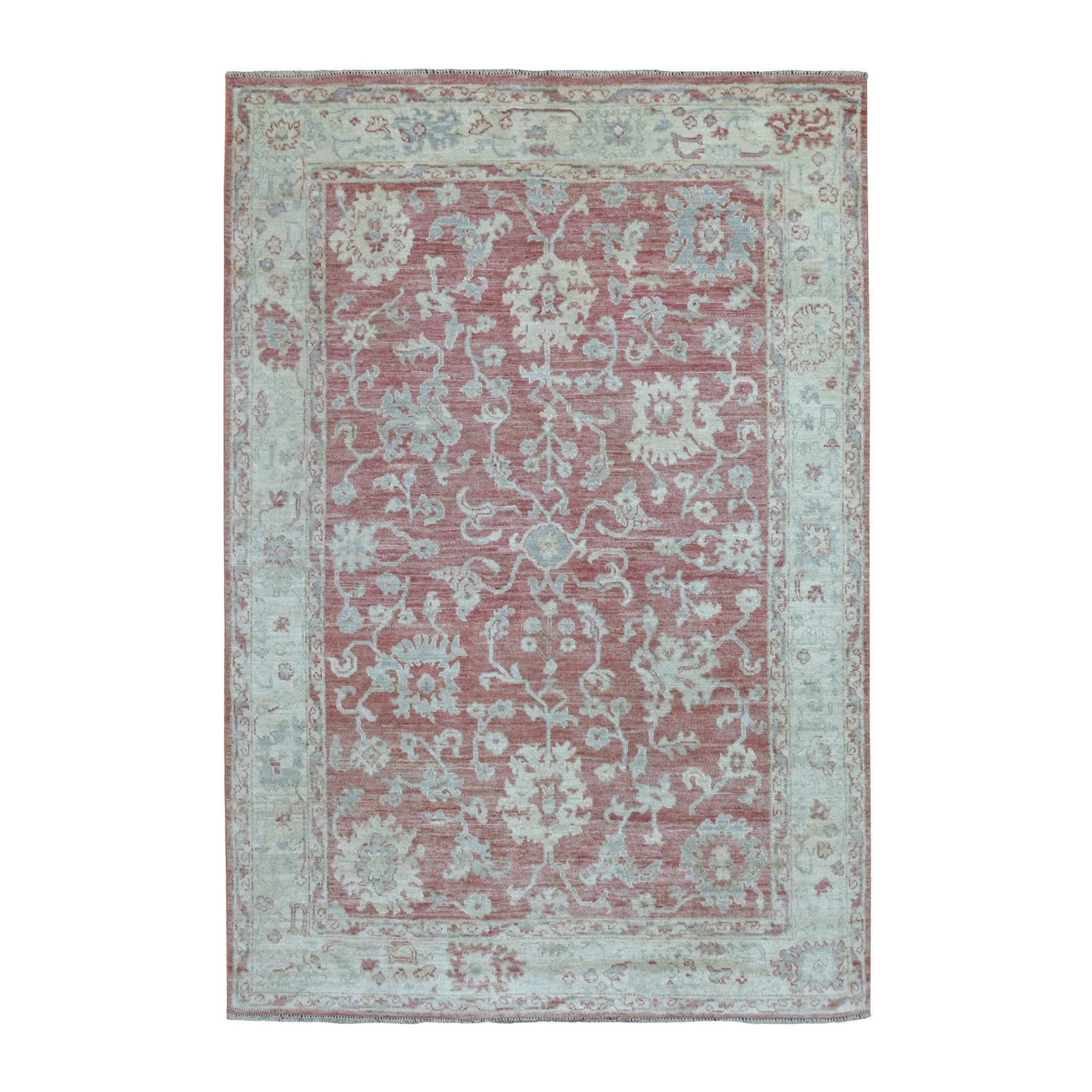 6'2"x9' Coral Pink, Afghan Angora Oushak With All Over Leaf Design, Organic Wool, Hand Knotted, Oriental Rug FWR416472