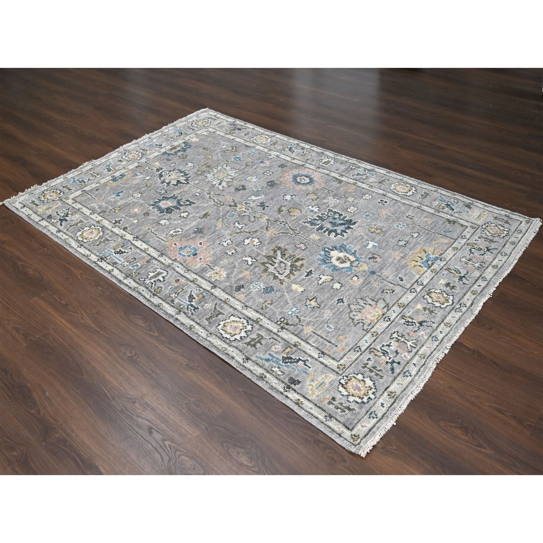 6'2"x9' Gray With Pop Of Color, Oushak Design, Plush And Lush Supple Collection, Soft Wool Hand Knotted, Oriental Rug FWR505602