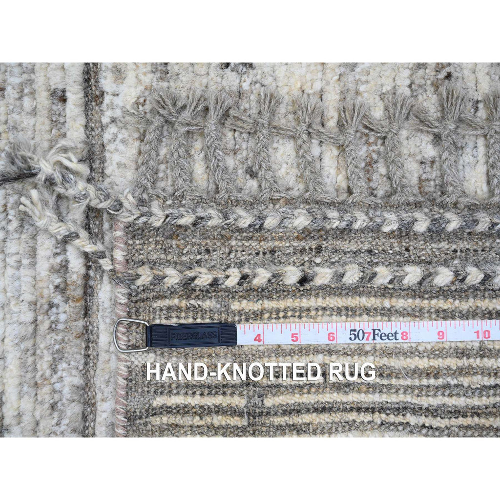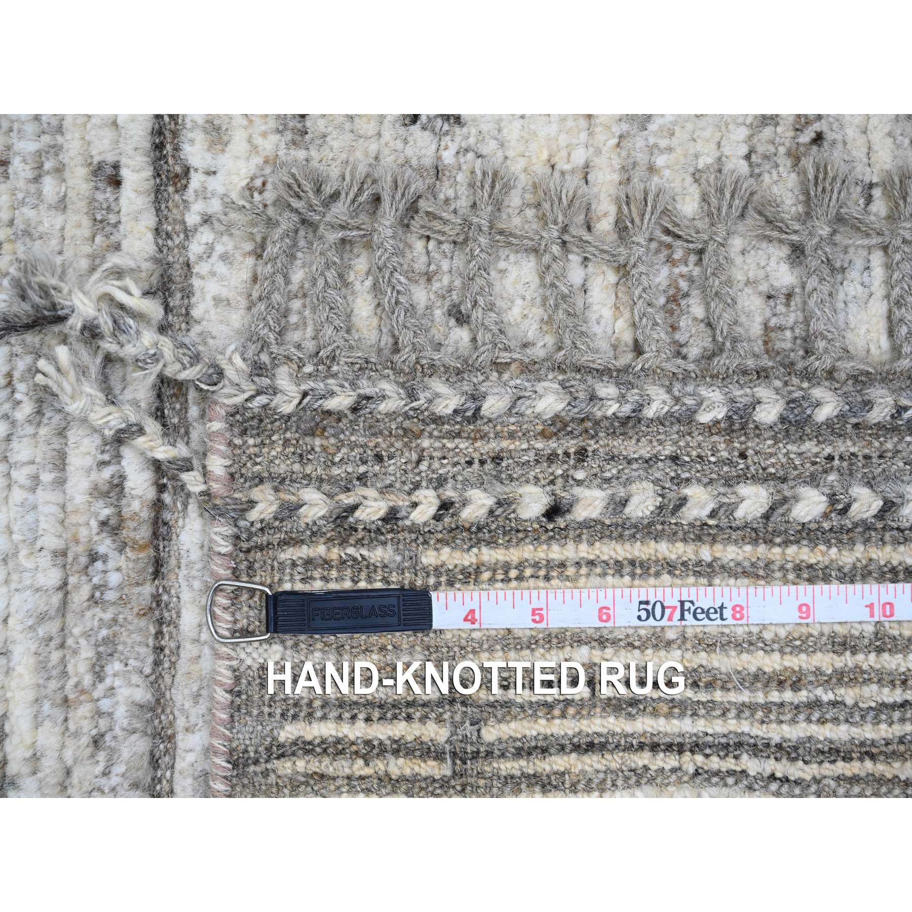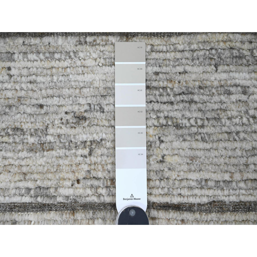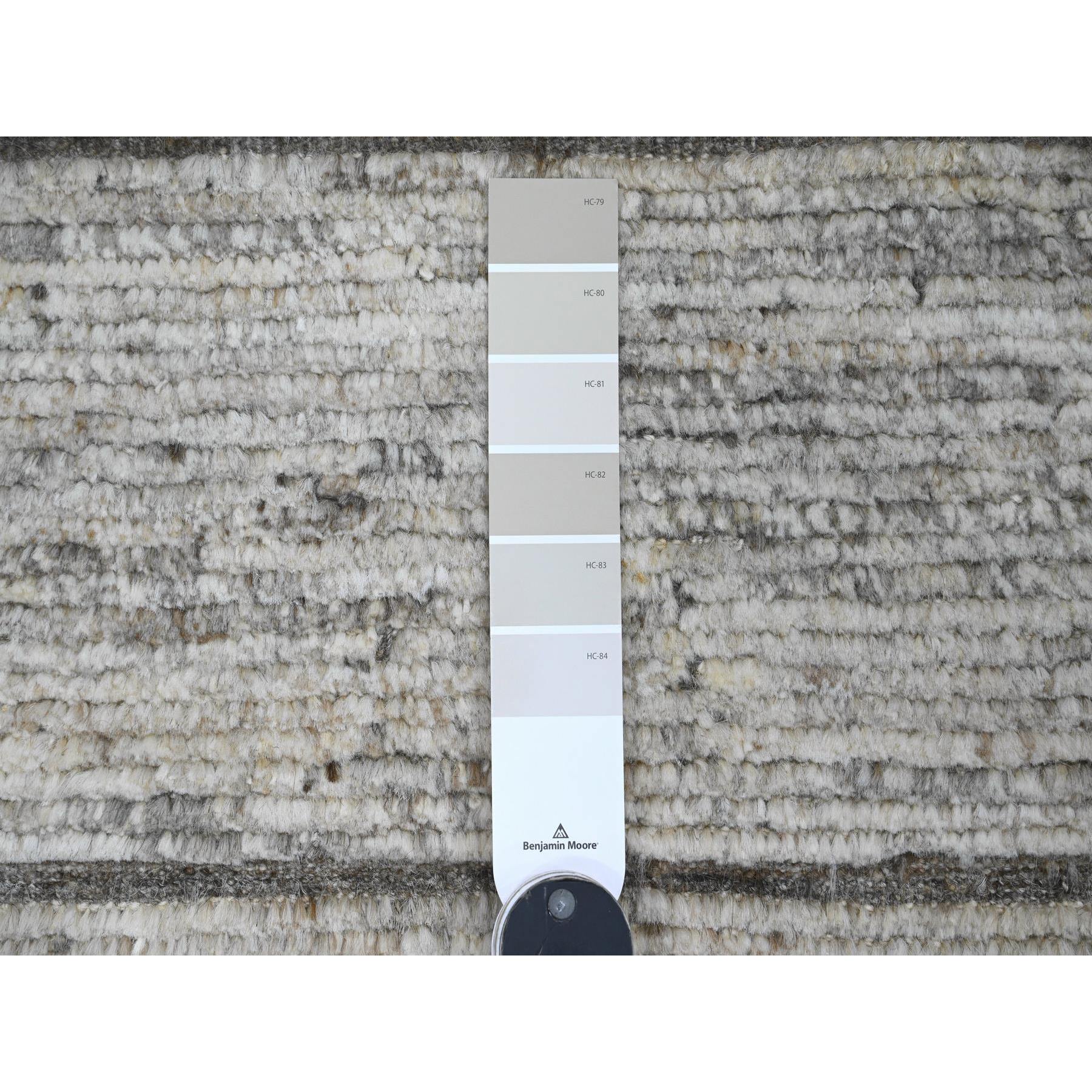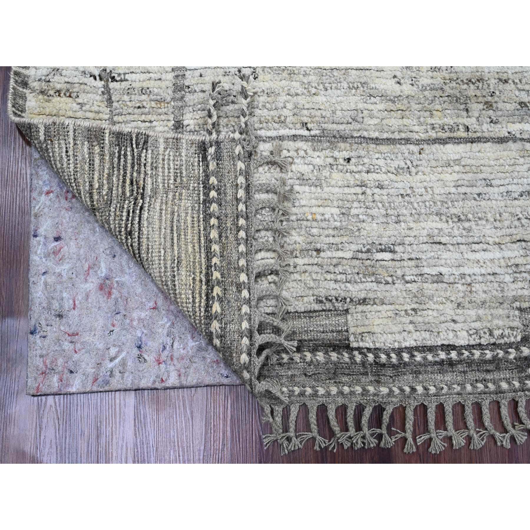 6'2"x9' Spanish Gray, Moroccan Weave With Compartment Design, Natural Colors, Hand Knotted, Soft Wool, Tone On Tone, Textured Pile, Oriental Rug FWR122538