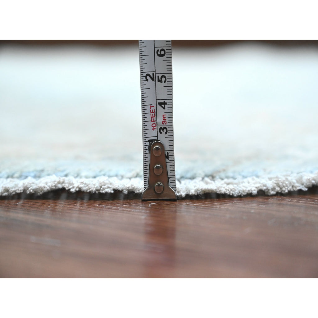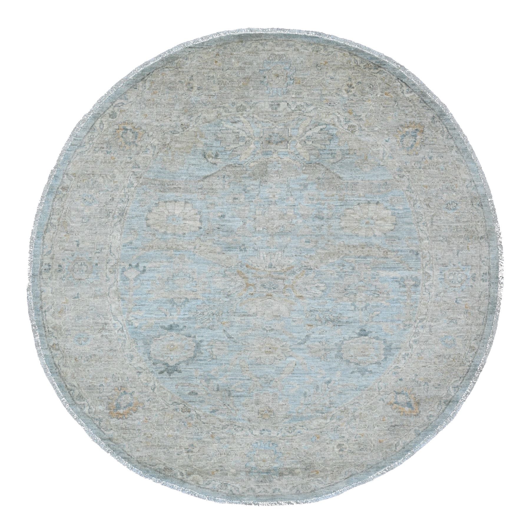 6'3"x6'3" Beau Blue, Peshawar With Ziegler Mahal Design, High Mountain Wool, Washed Out, Denser Weave, Hand Knotted, Round, Oriental Rug FWR122046