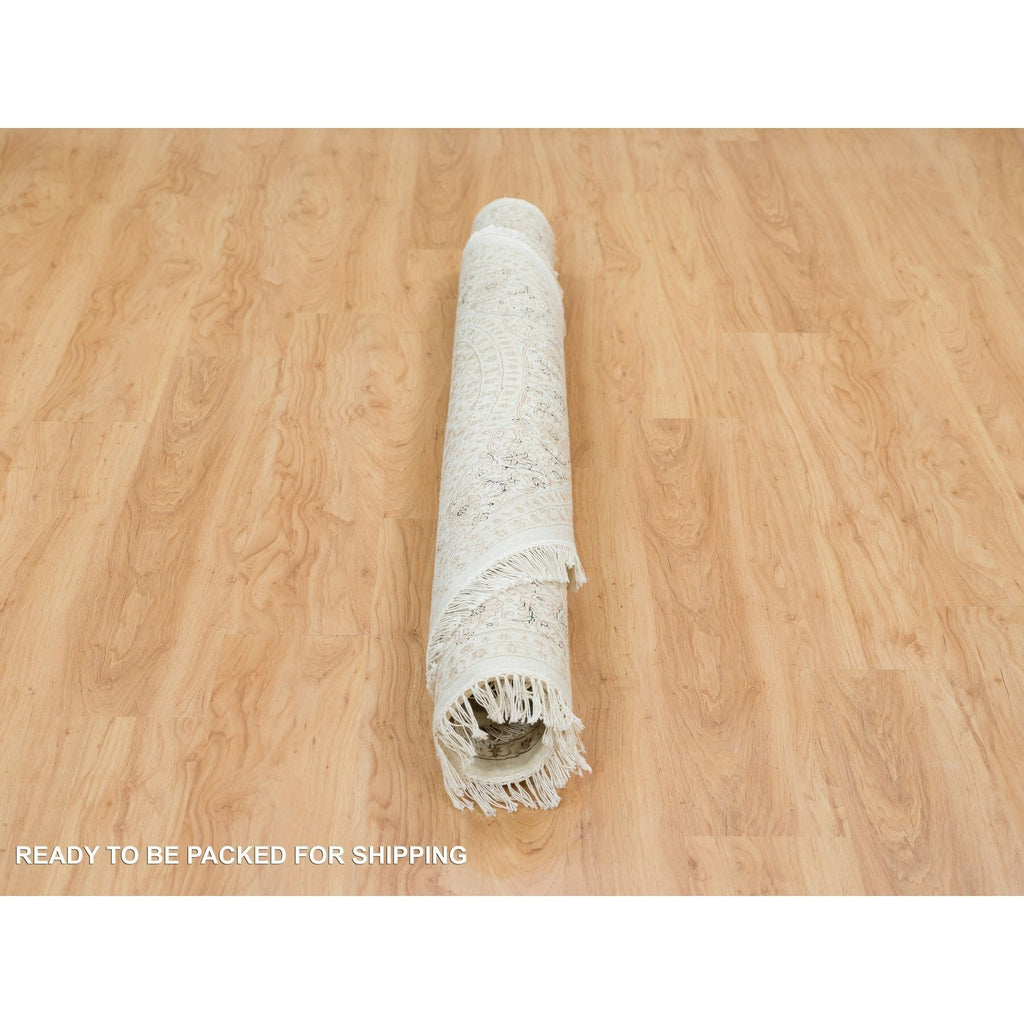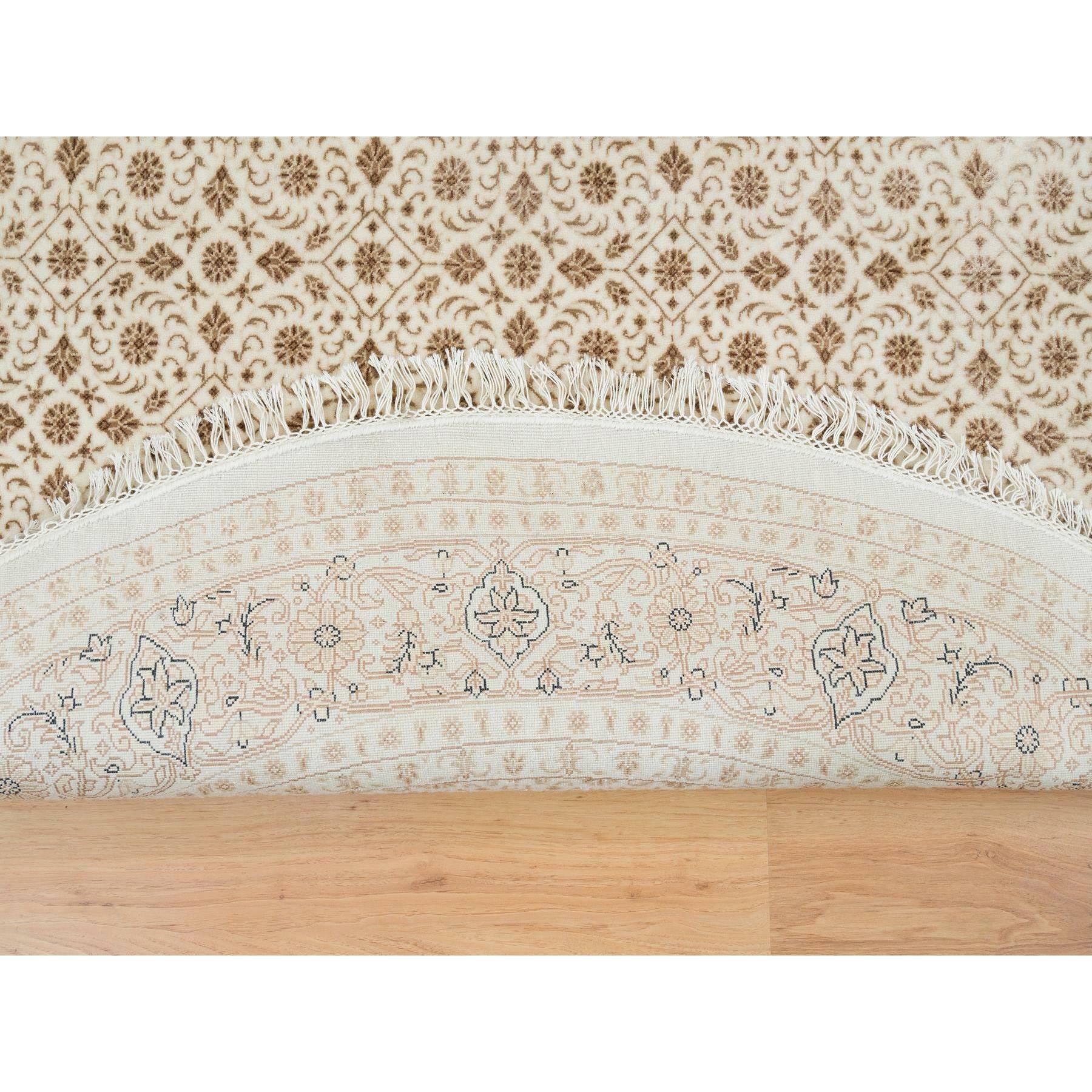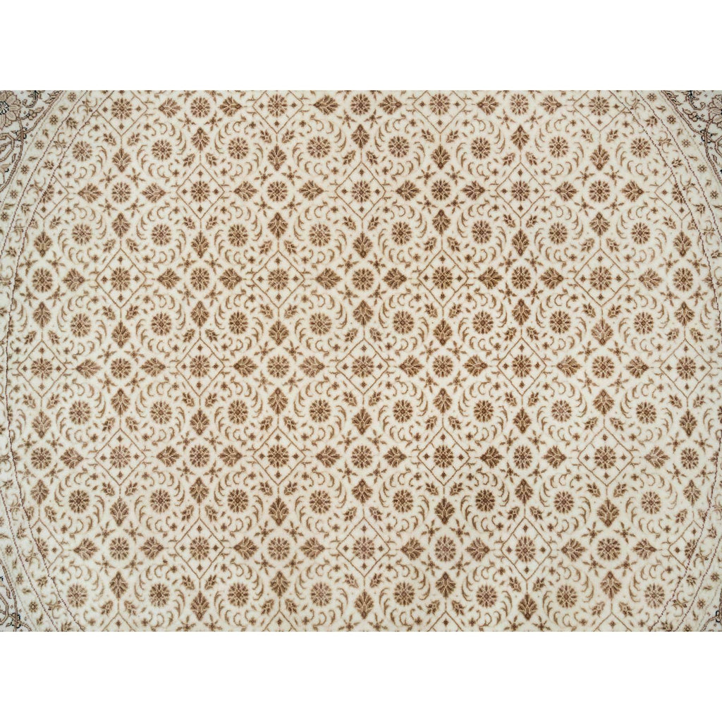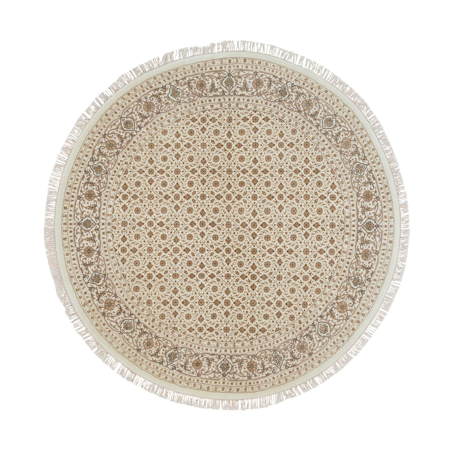 6'3"x6'3" Ivory, Densely Woven Organic Wool, Hand Knotted Herati With All Over Fish Mahi Design, 250 Kpsi, Round Oriental Rug FWR392406