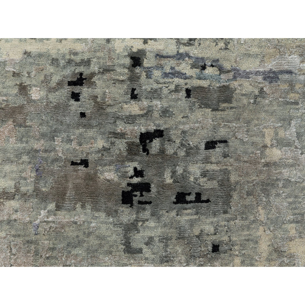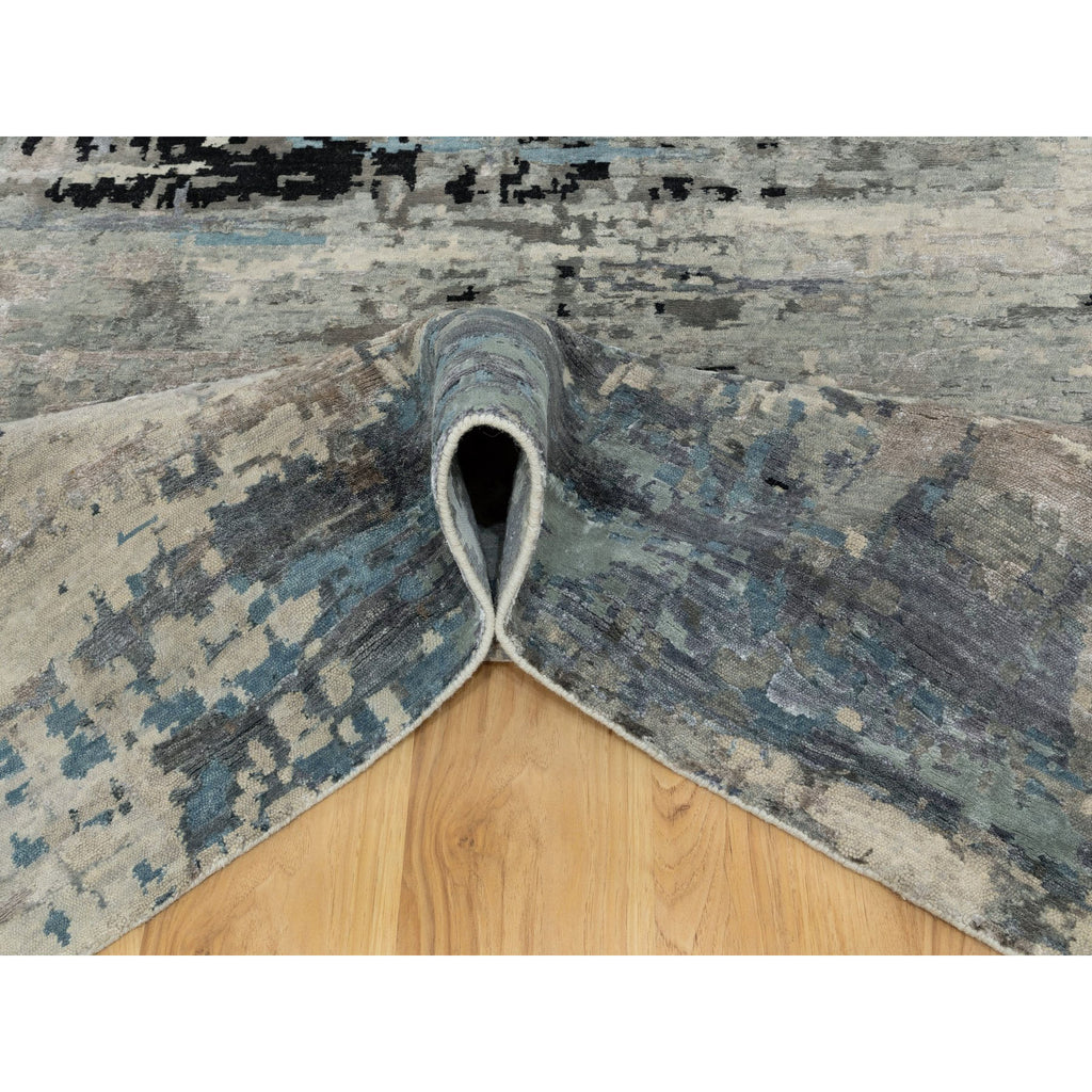 6'3"x8'10" Abstract Design Modern Silver- Blue Hand Knotted Wool & Silk Hi-low Pile Oriental Rug FWR350886