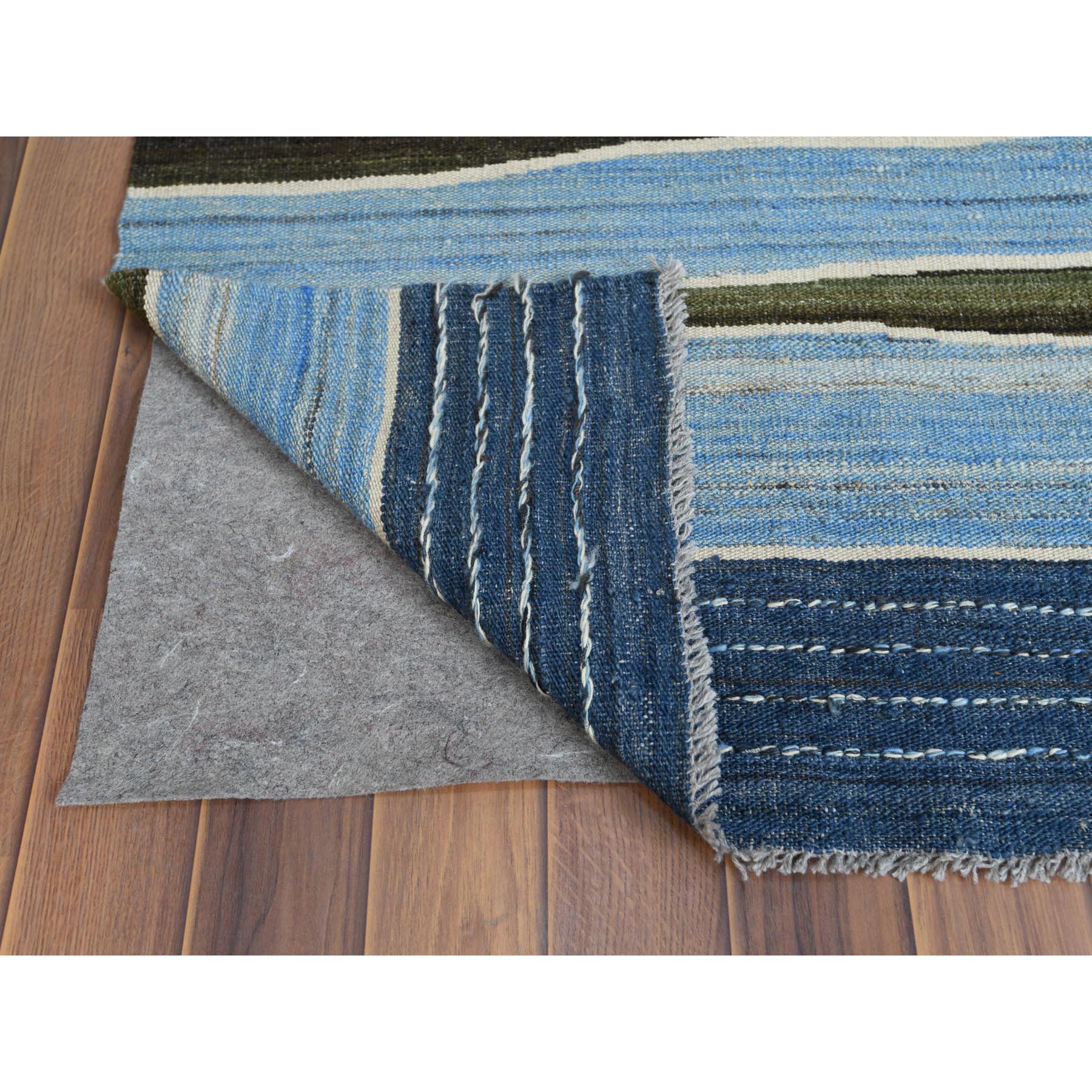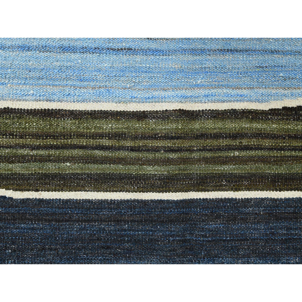 6'3"x8'9" Hand Woven Flat Weave Kilim Organic Blue And Brown Mountain Design Wool Reversible Oriental Rug FWR360624