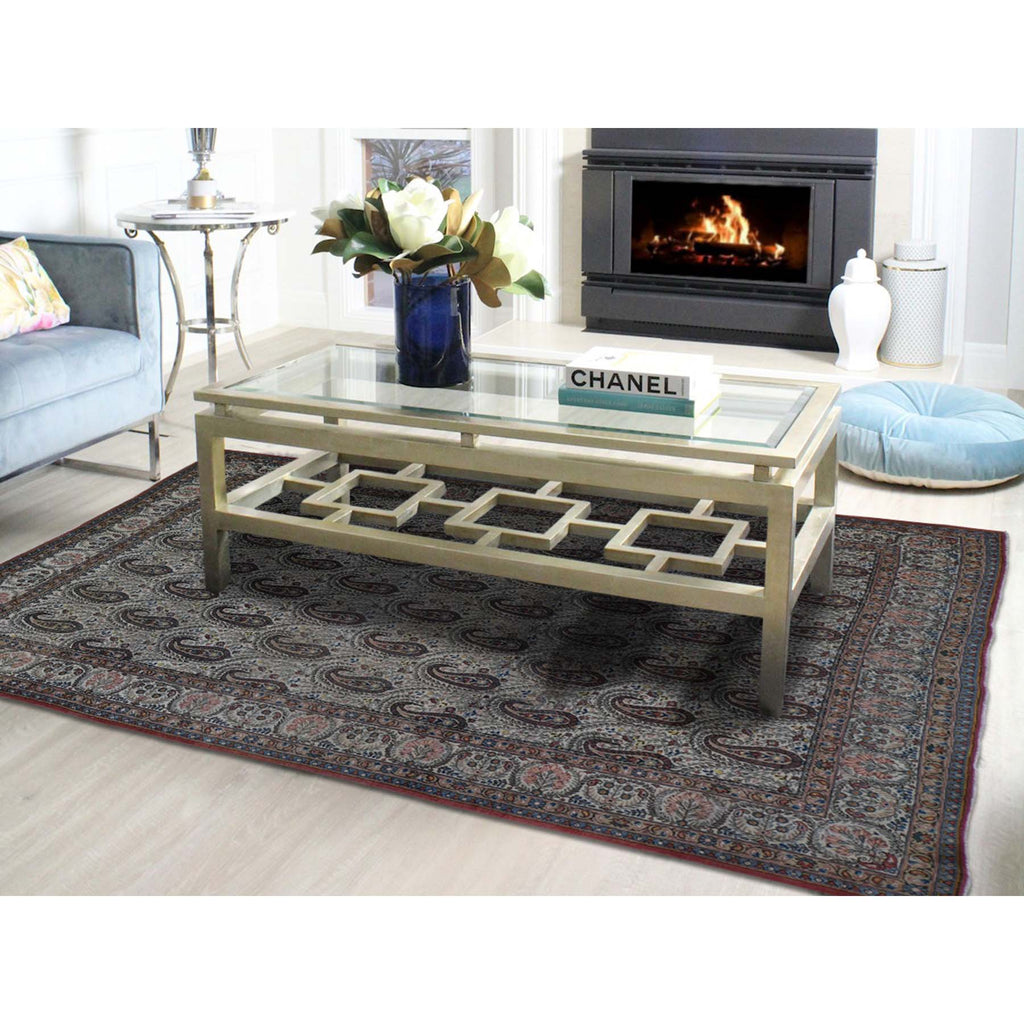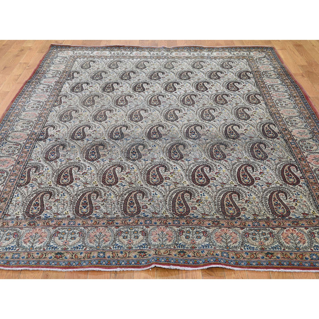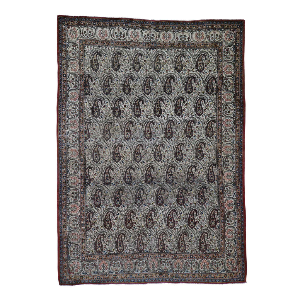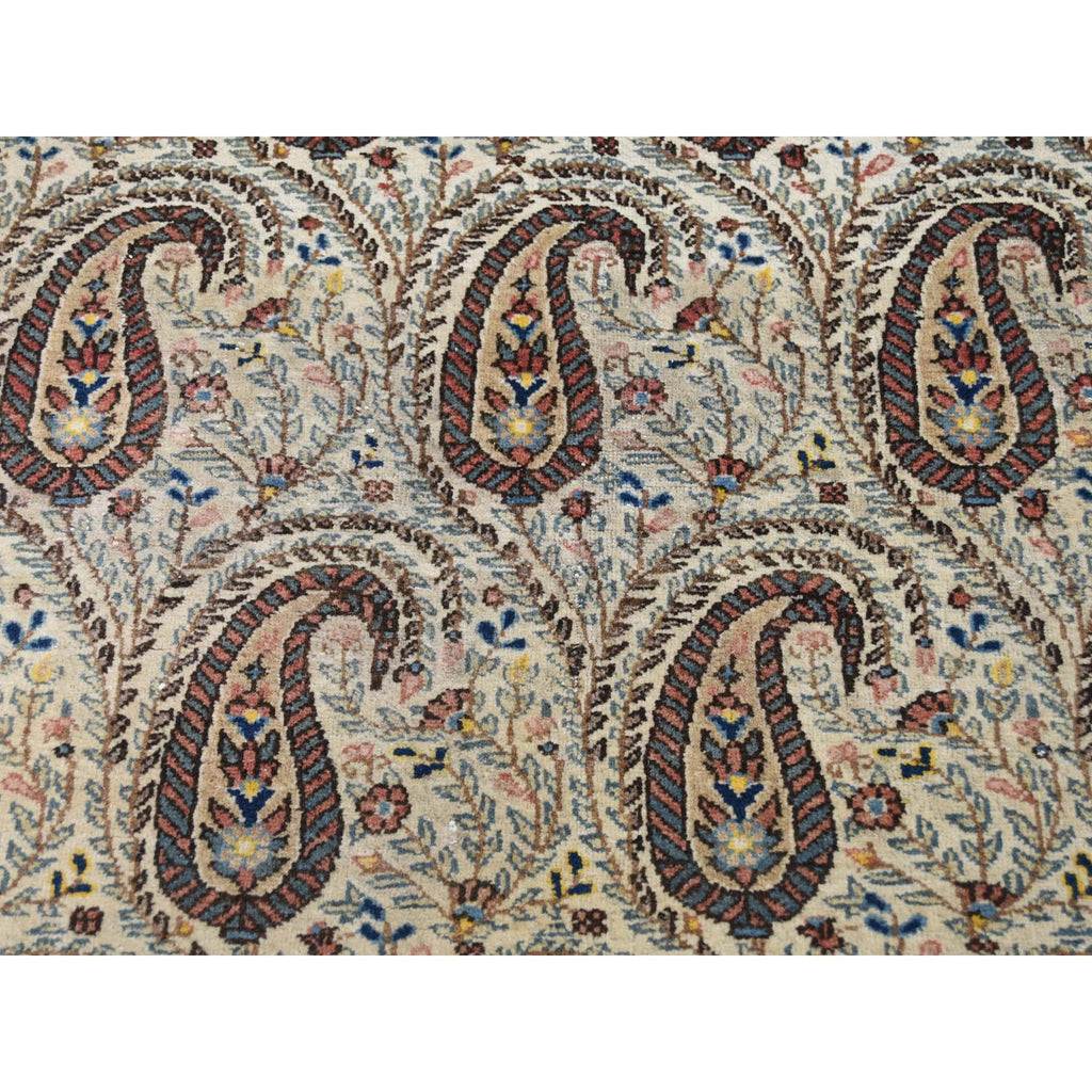 6'3"x8'9" Ivory Antique Persian Qum Good Condition Paisley Design Hand-knotted Fine Oriental Rug FWR269634