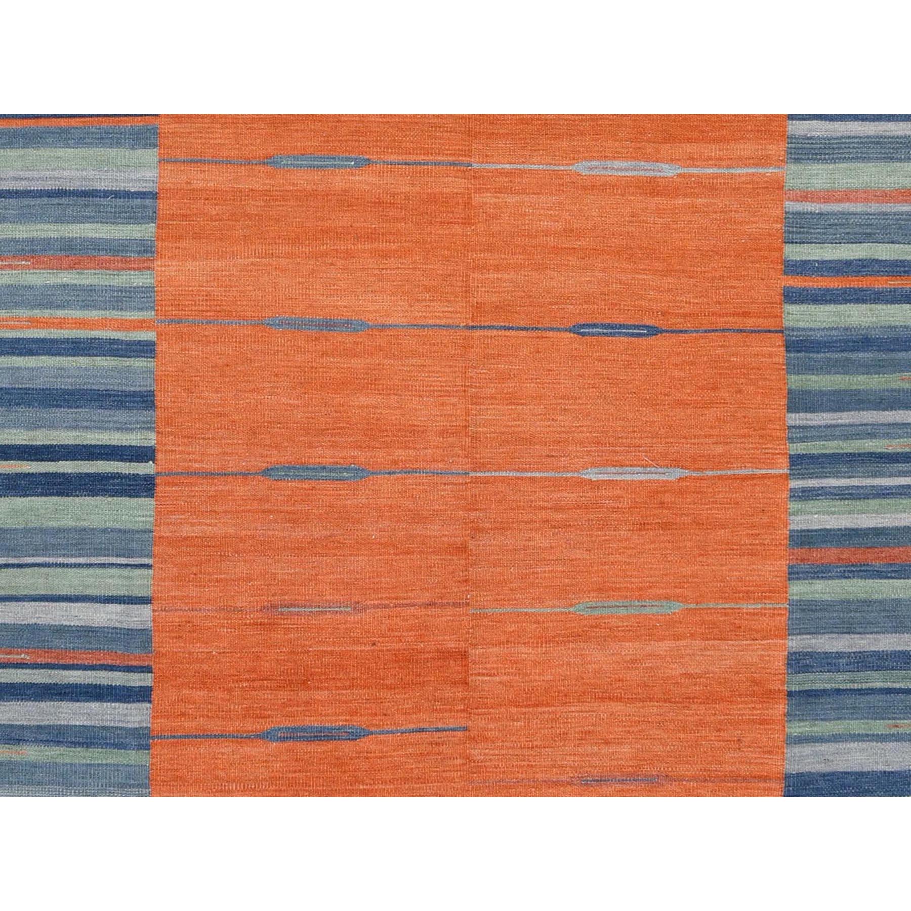 6'3"x9'2" Hand Woven Sunburst And Stripes Design Flat Weave Kilim Organic Wool Reversible Oriental Rug FWR360288