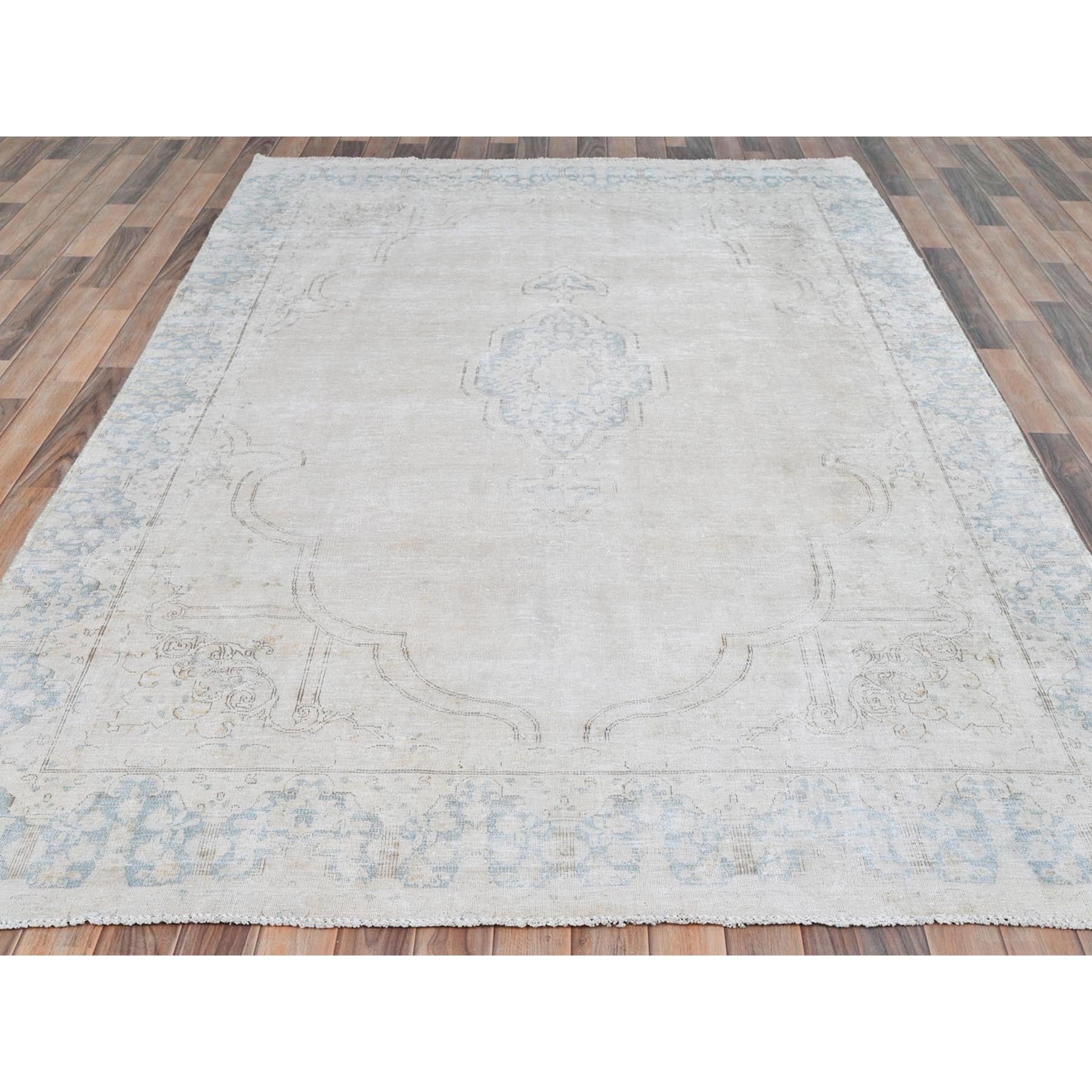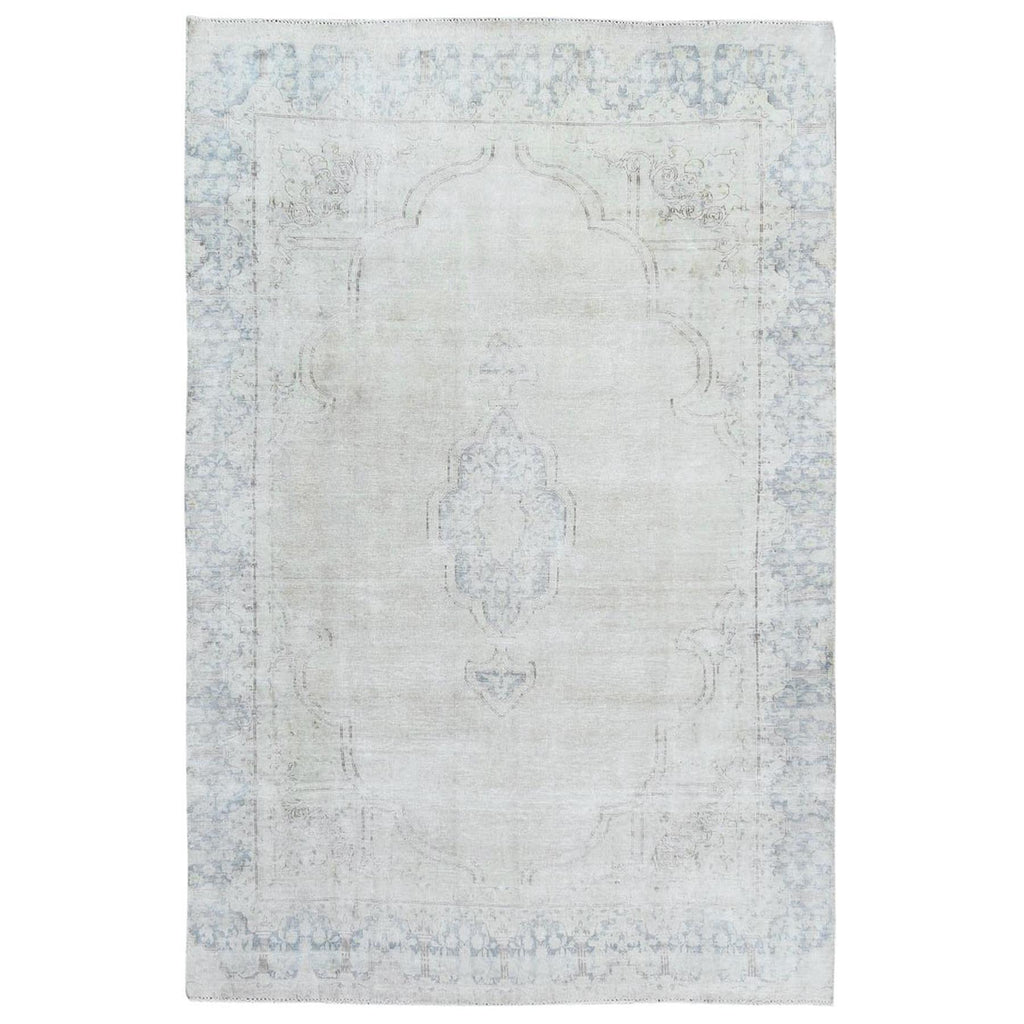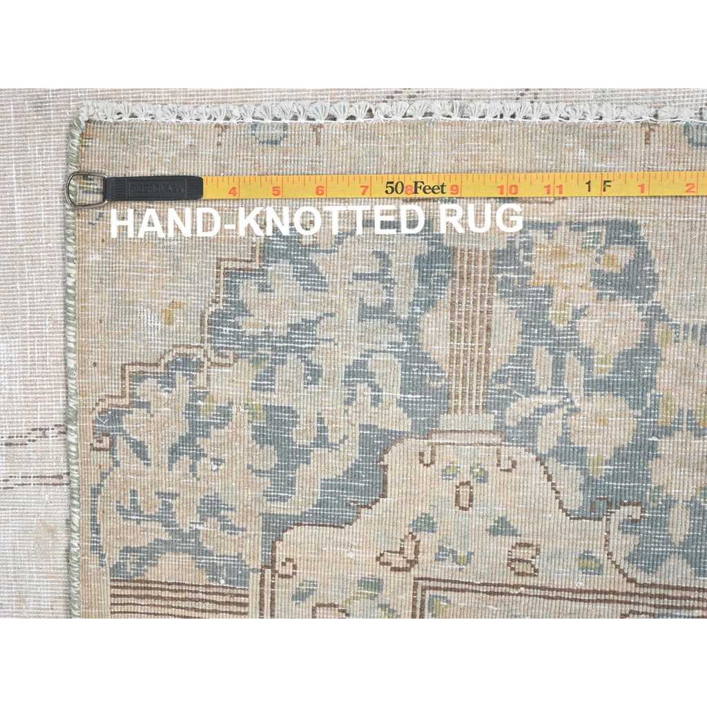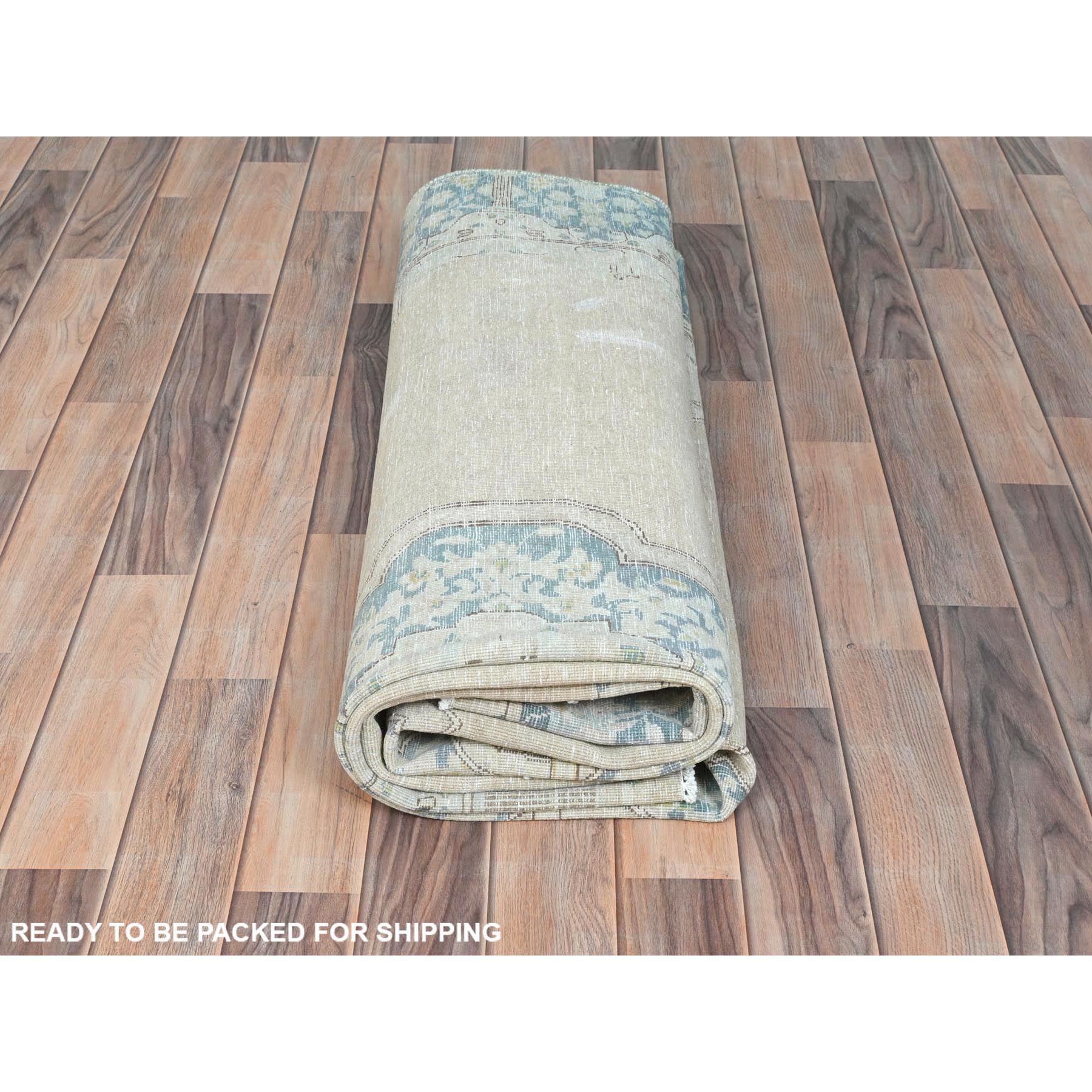 6'3"x9'6" Ivory, Worn Wool Hand Knotted, Old Persian Kerman Cropped Thin Distressed Look, Oriental Rug FWR491658