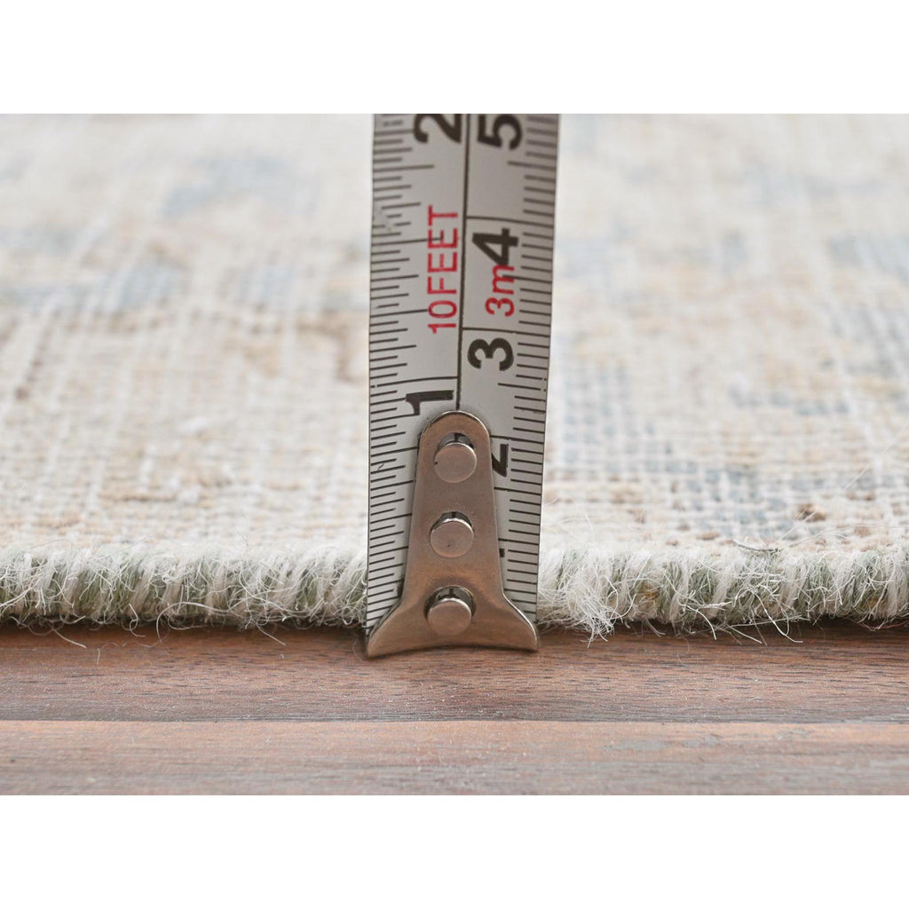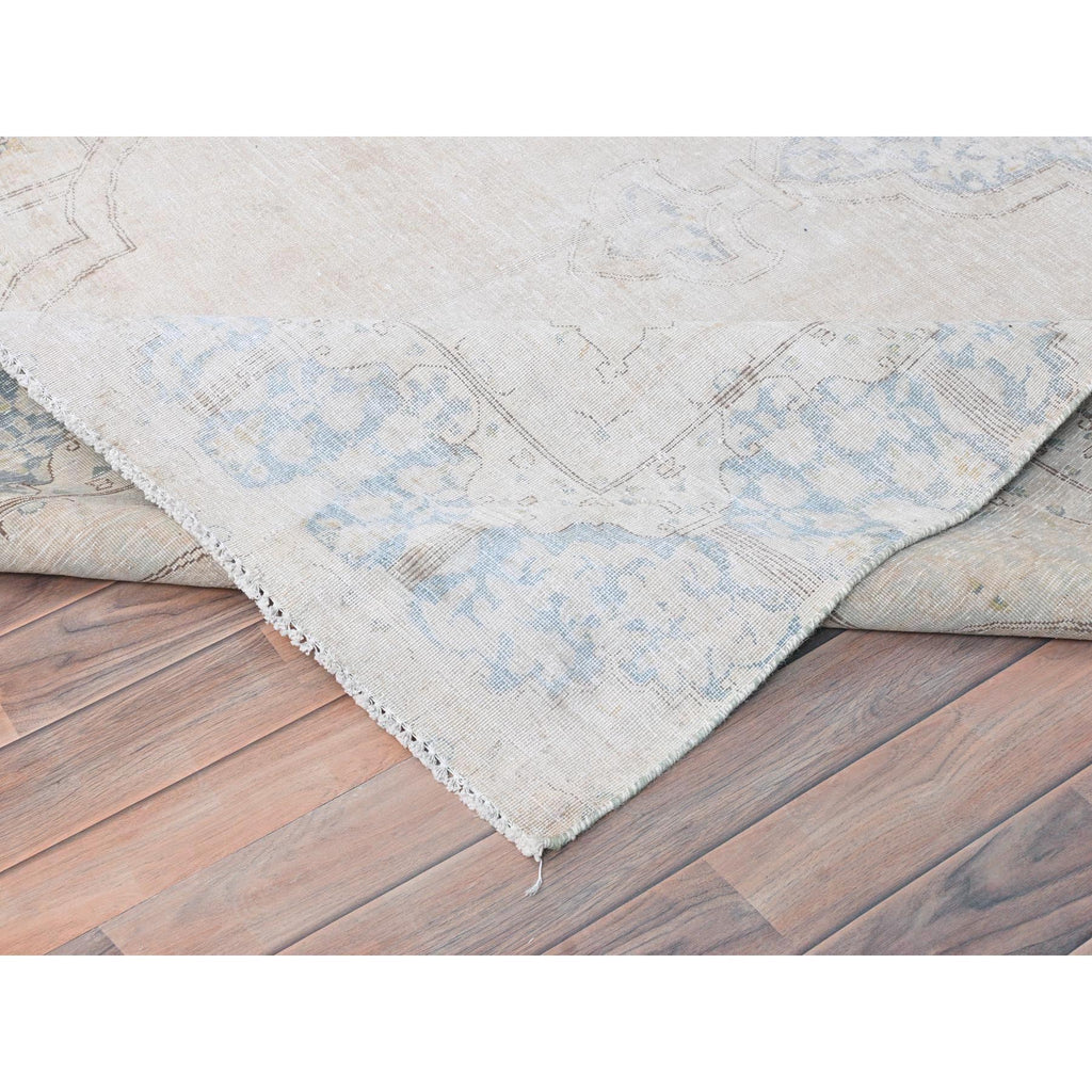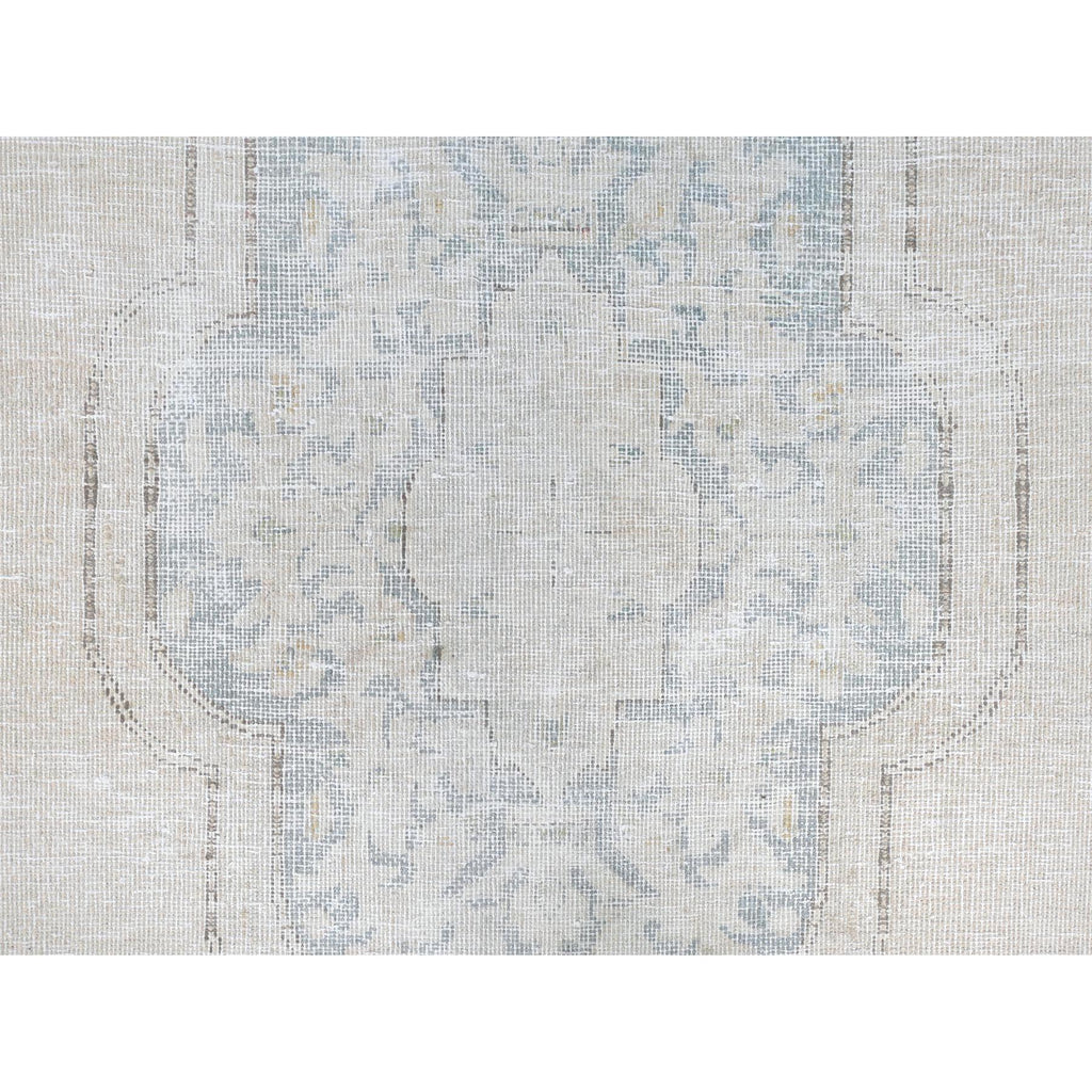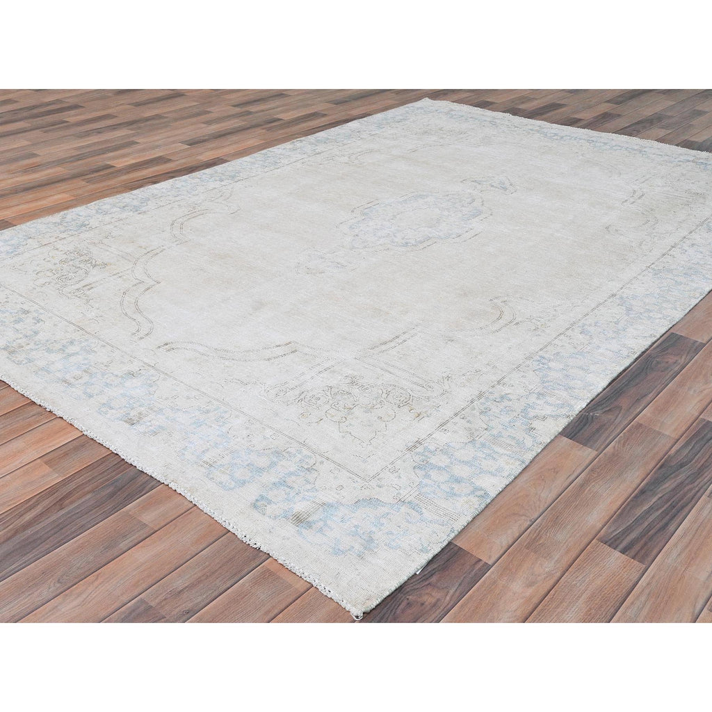 6'3"x9'6" Ivory, Worn Wool Hand Knotted, Old Persian Kerman Cropped Thin Distressed Look, Oriental Rug FWR491658