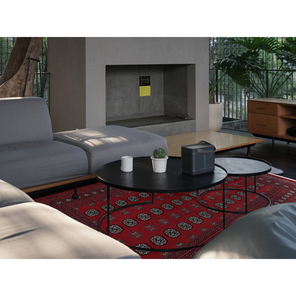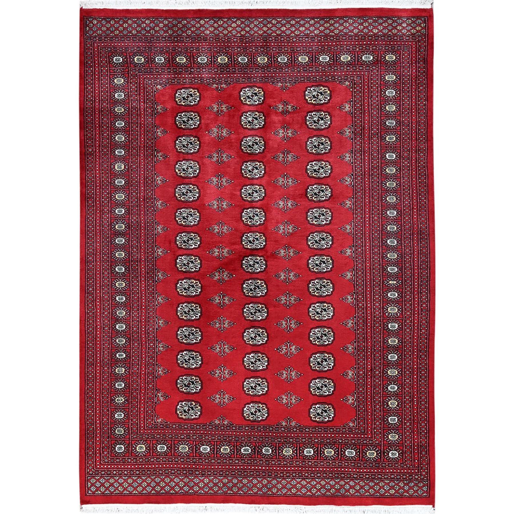 6'4"x8'10" Crimson Red, Hand Knotted, Princess Bokara With Tribal Medallions, Vegetable Dyes, Soft And Velvety Wool, Oriental Rug FWR7938