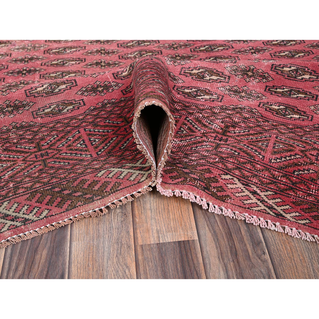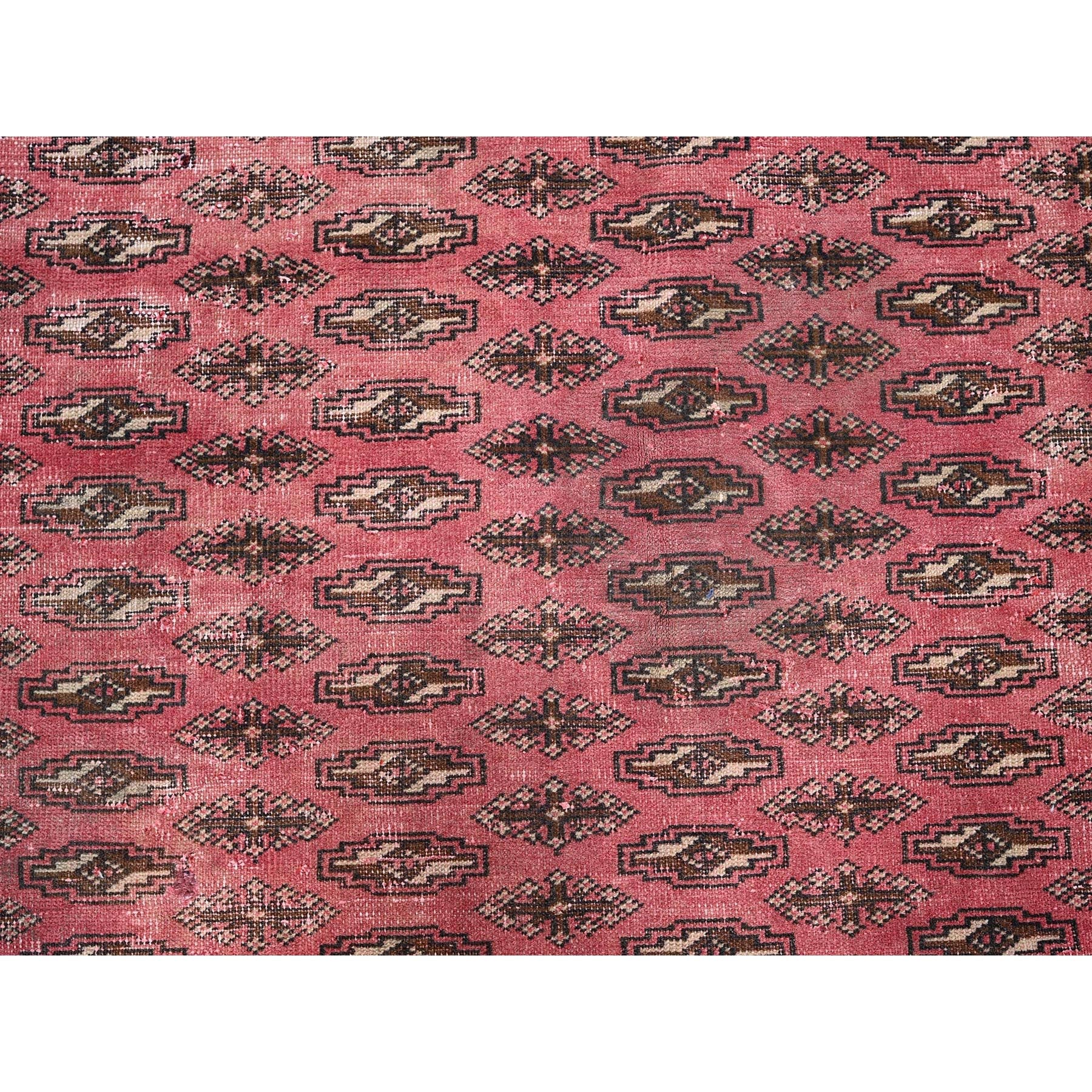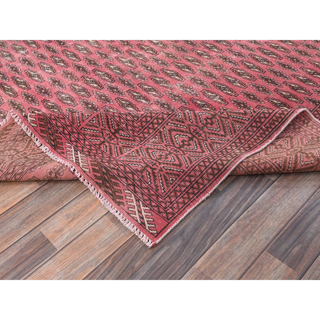 6'4"x9'3" Blush Red, Overdyed Vintage Turkoman With Intricate Repetitive Gul Motif Pattern, Worn Down, Sheared Low, Zero Pile, Sides And Ends Professionally Secured, Hand Knotted, 100% Wool, Oriental Rug FWR6066
