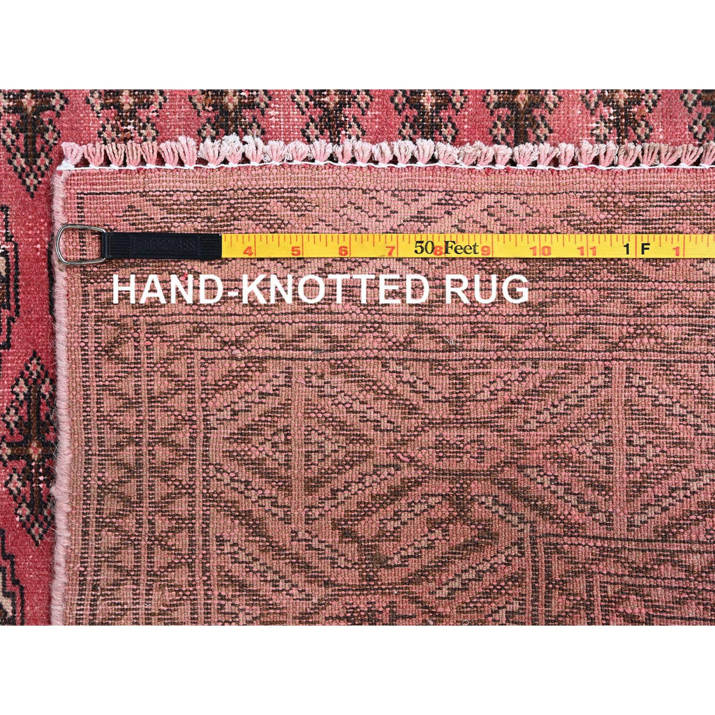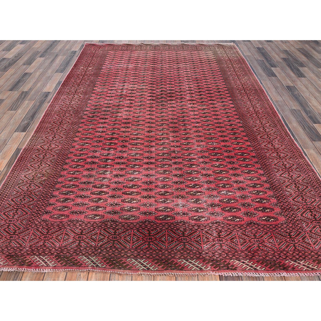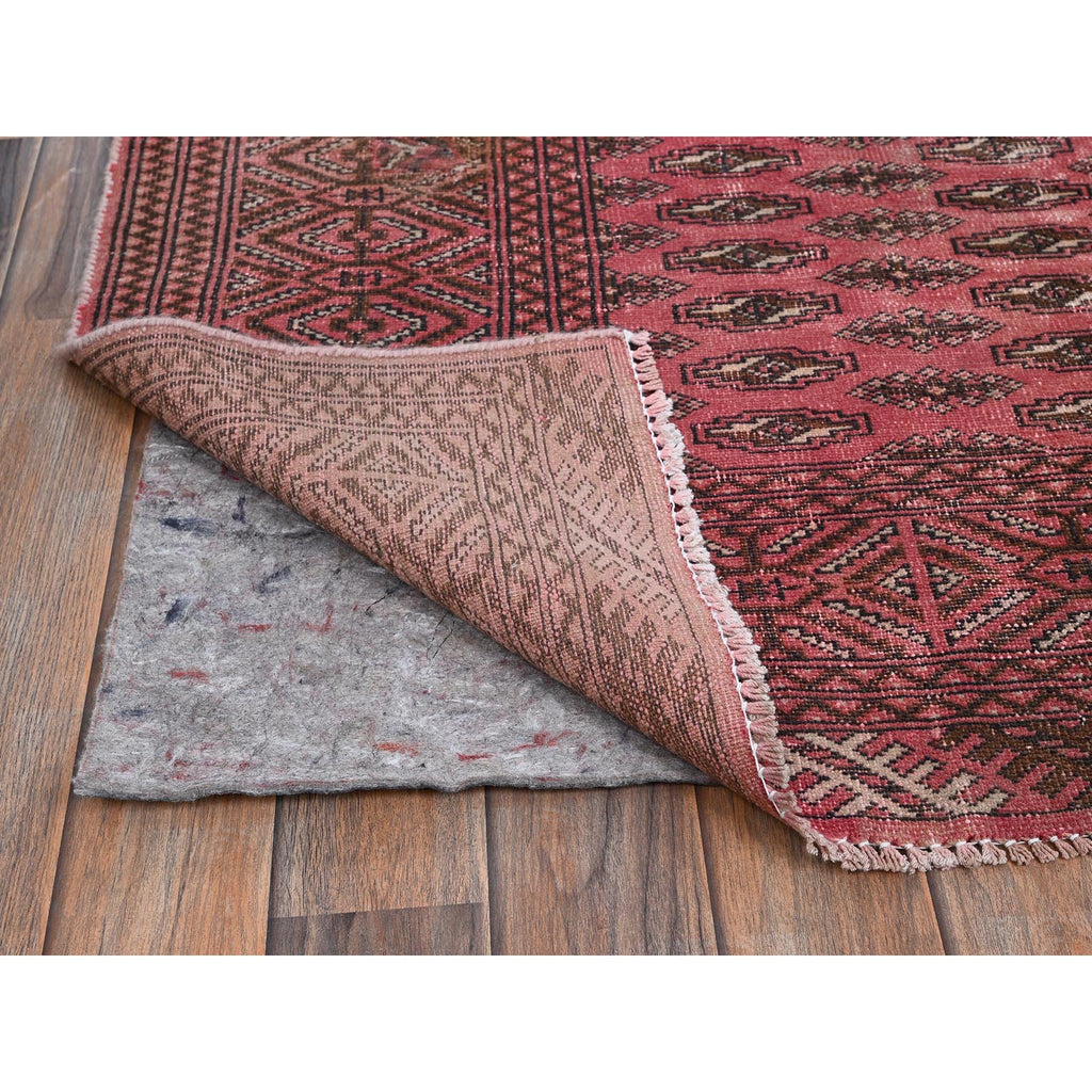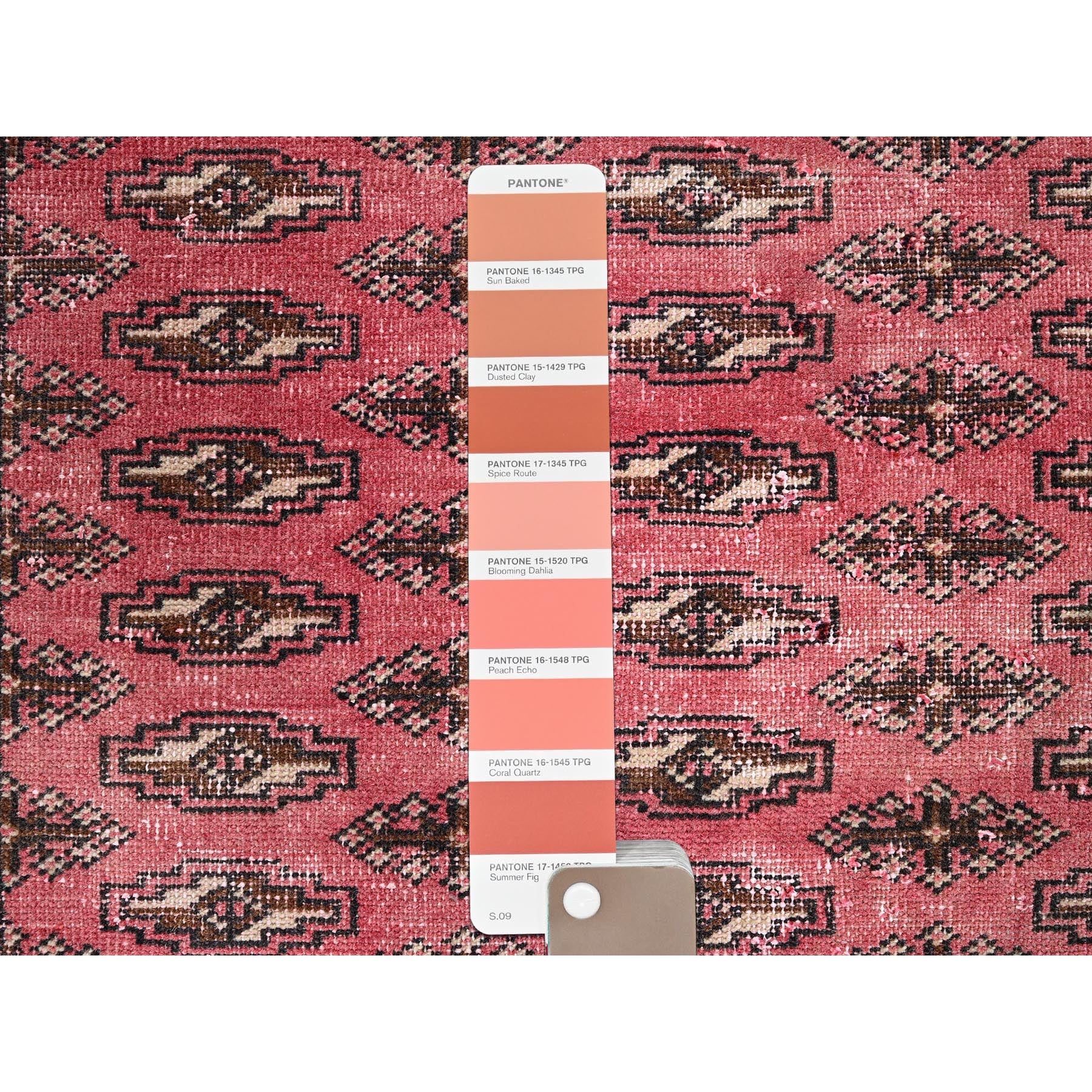 6'4"x9'3" Blush Red, Overdyed Vintage Turkoman With Intricate Repetitive Gul Motif Pattern, Worn Down, Sheared Low, Zero Pile, Sides And Ends Professionally Secured, Hand Knotted, 100% Wool, Oriental Rug FWR6066