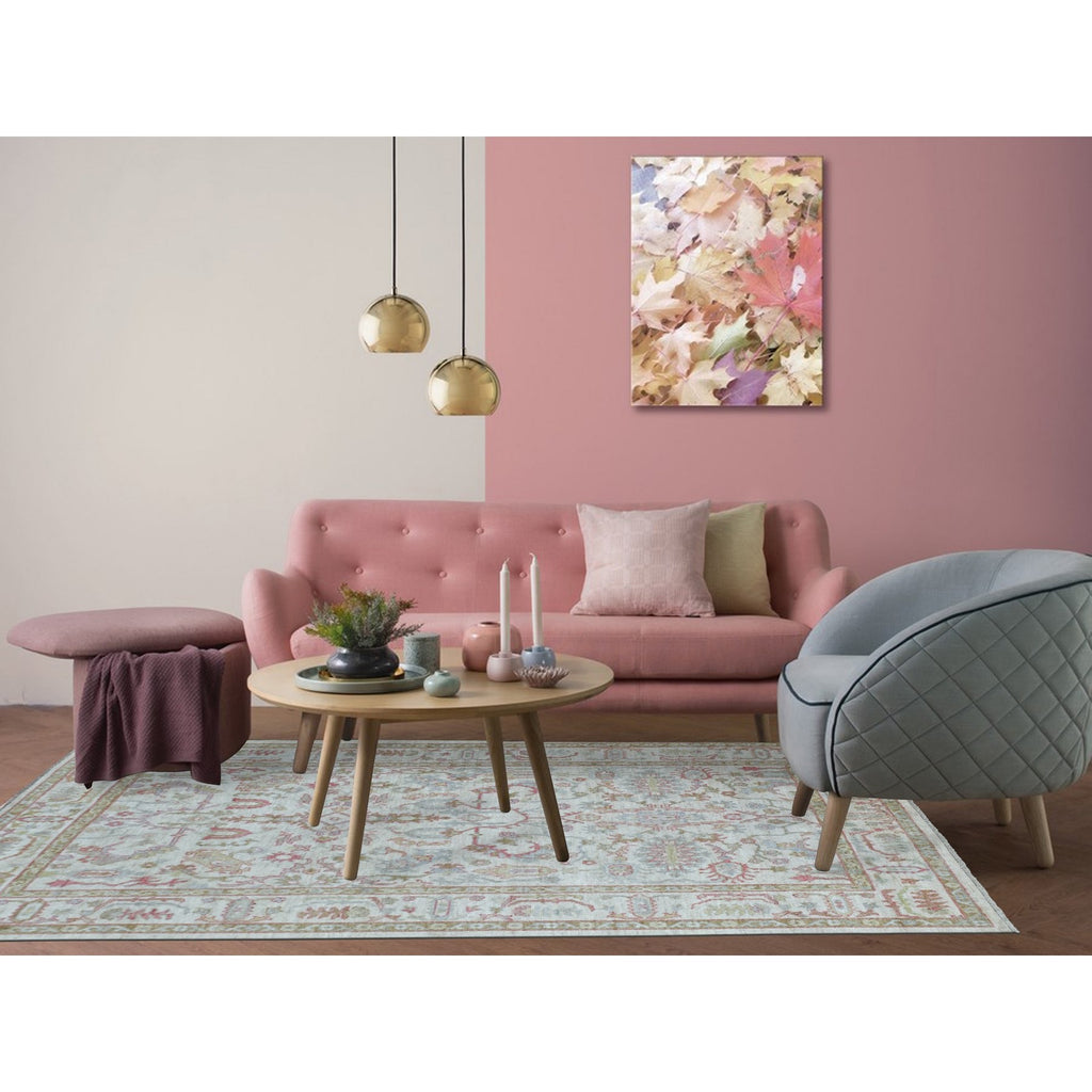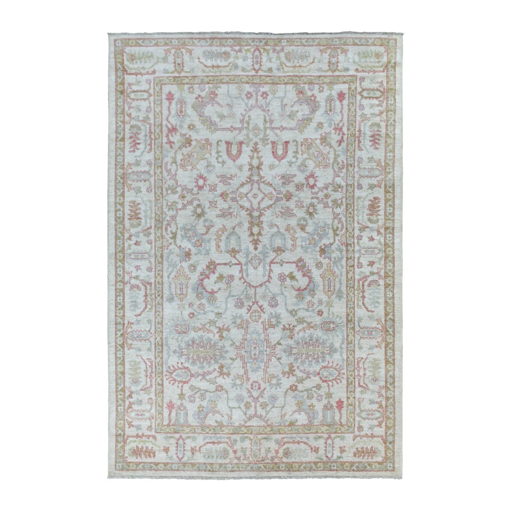 6'4"x9'6" Soft Wool Hand Knotted Ivory Afghan Angora Oushak With All Over Leaf Design Oriental Rug FWR413526