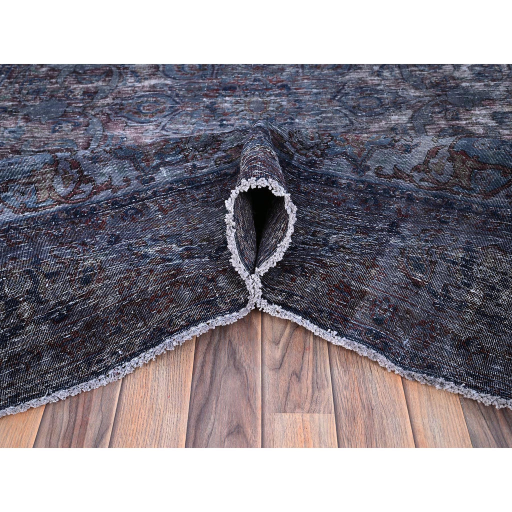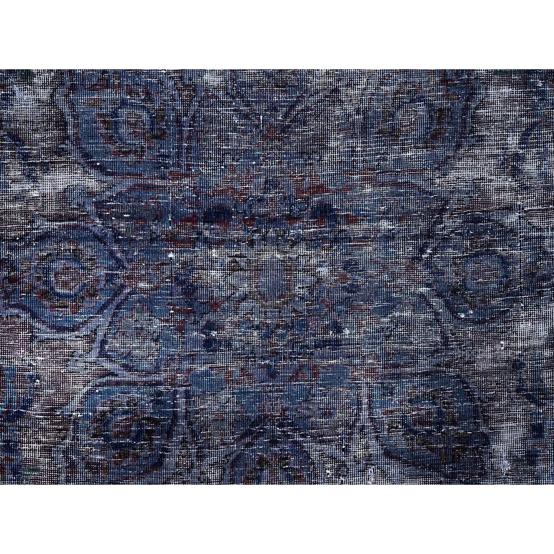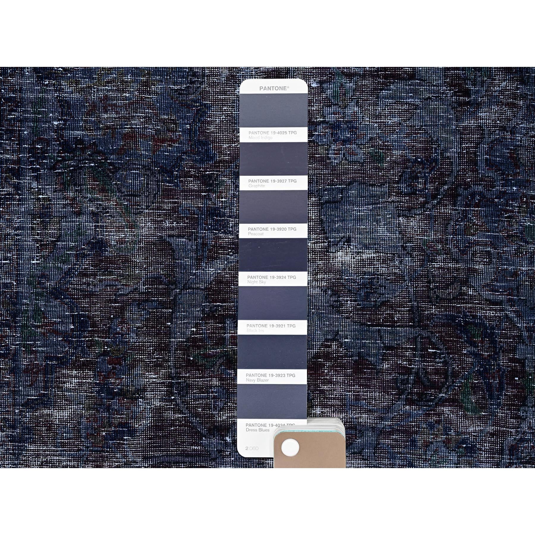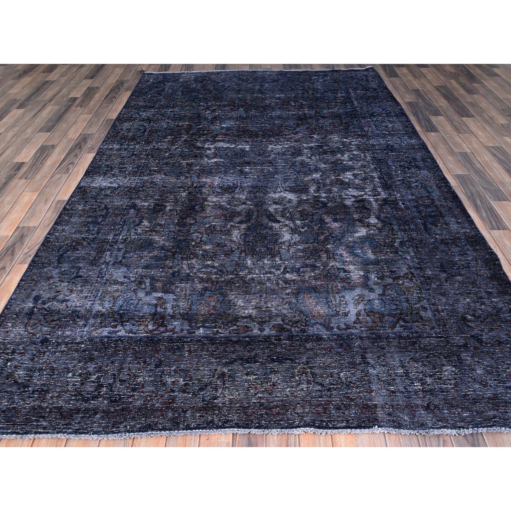 6'5"x10'3" Peacoat Blue And Charcoal Black, Overdyed, Semi Antique Tabriz, Pure Wool Sheared Low, Worn And Distressed, Professional Cleaner, Tone On Tone, Hand Knotted, Excellent Condition Oriental Rug FWR516660