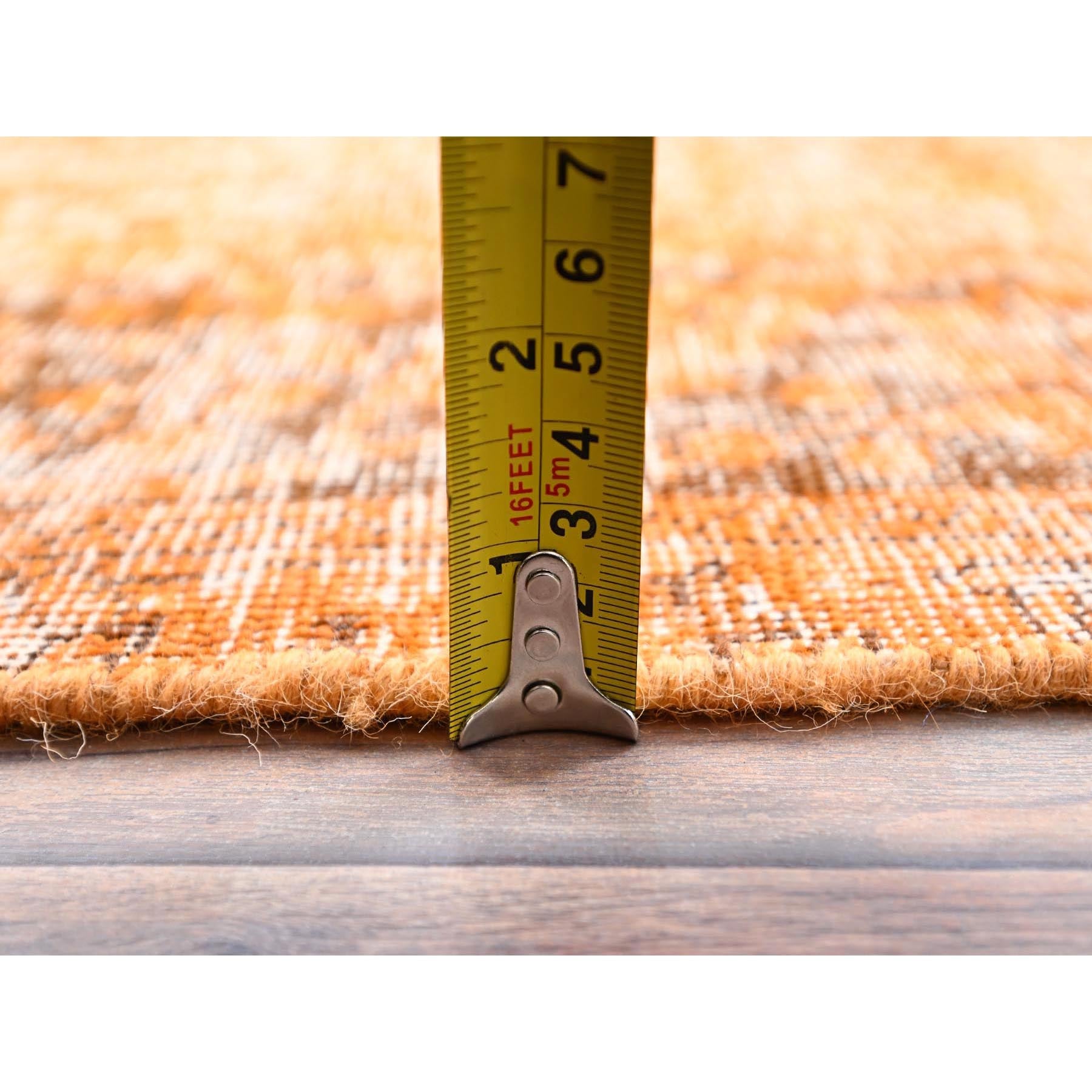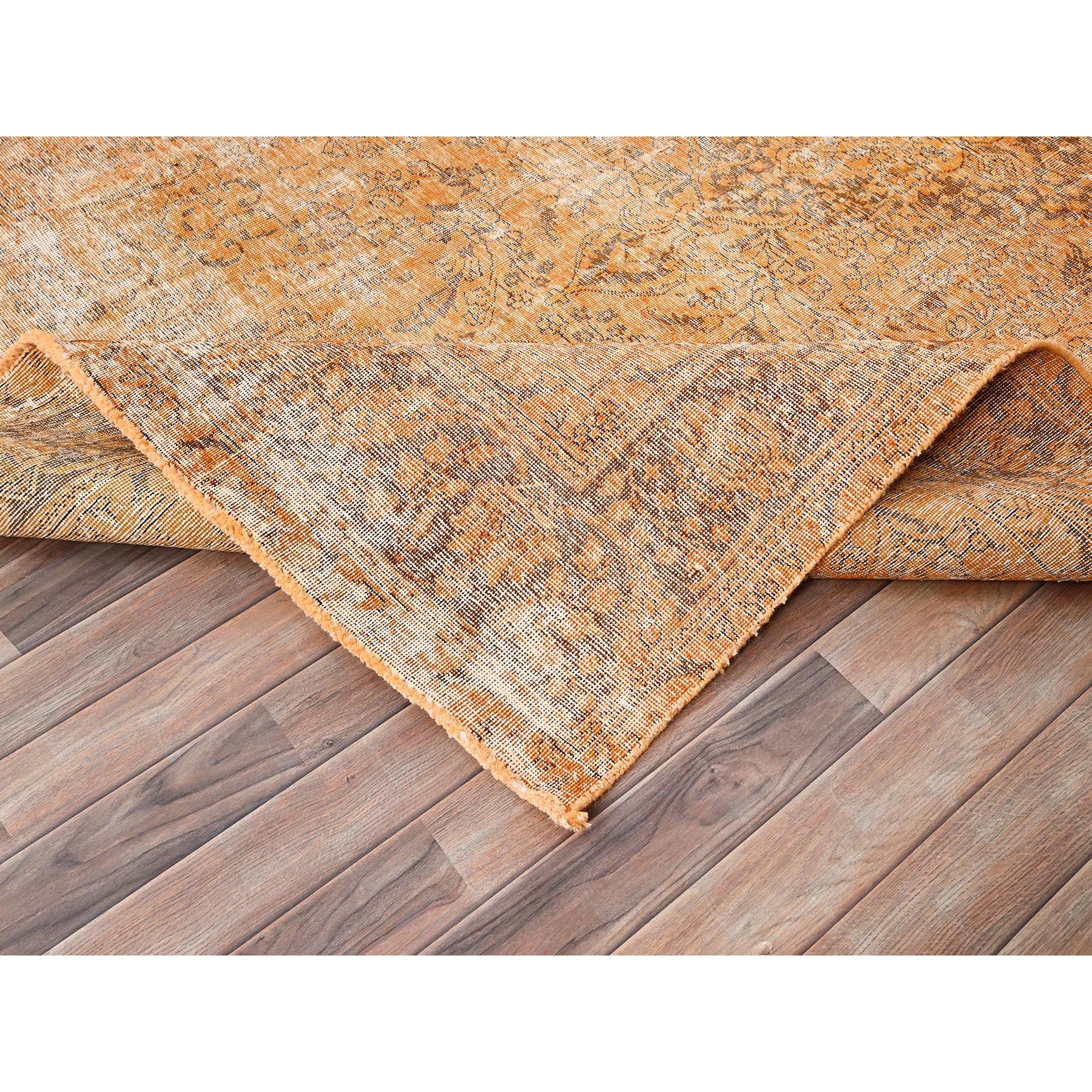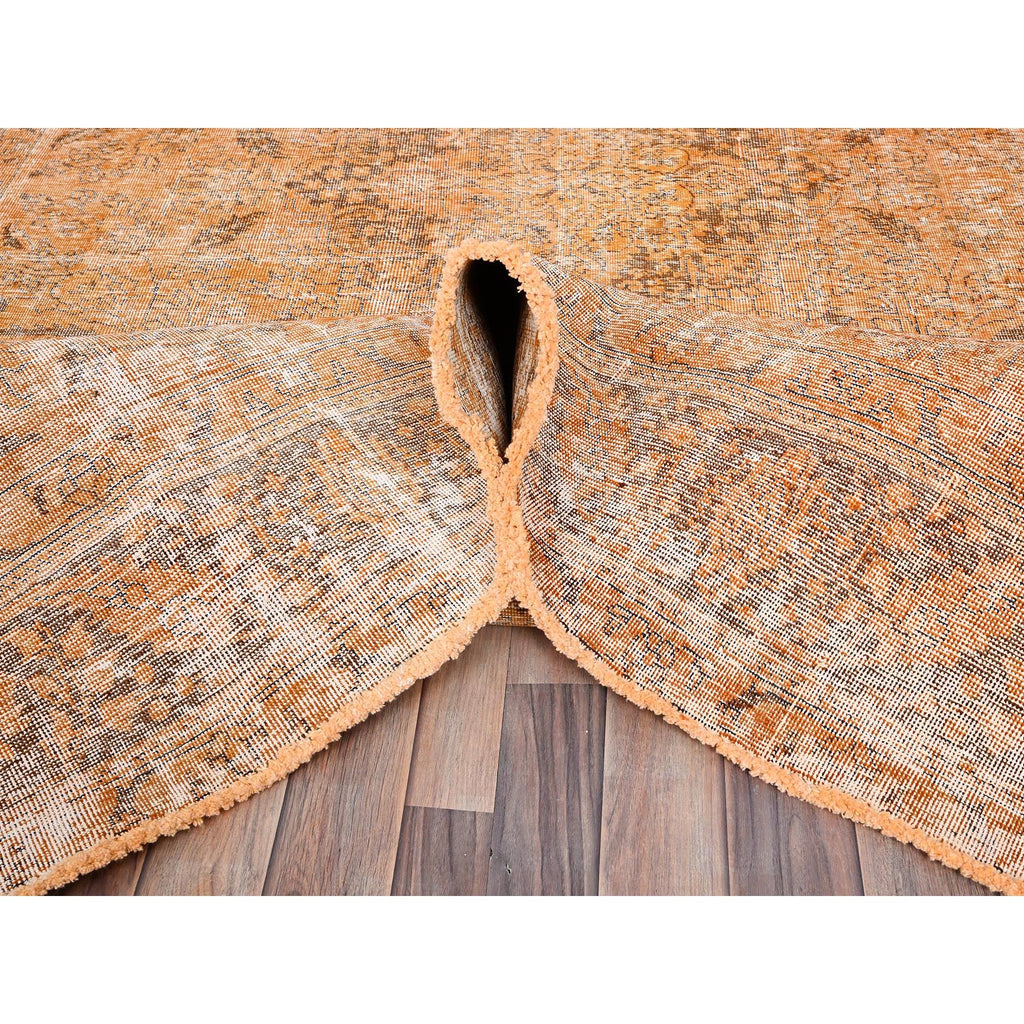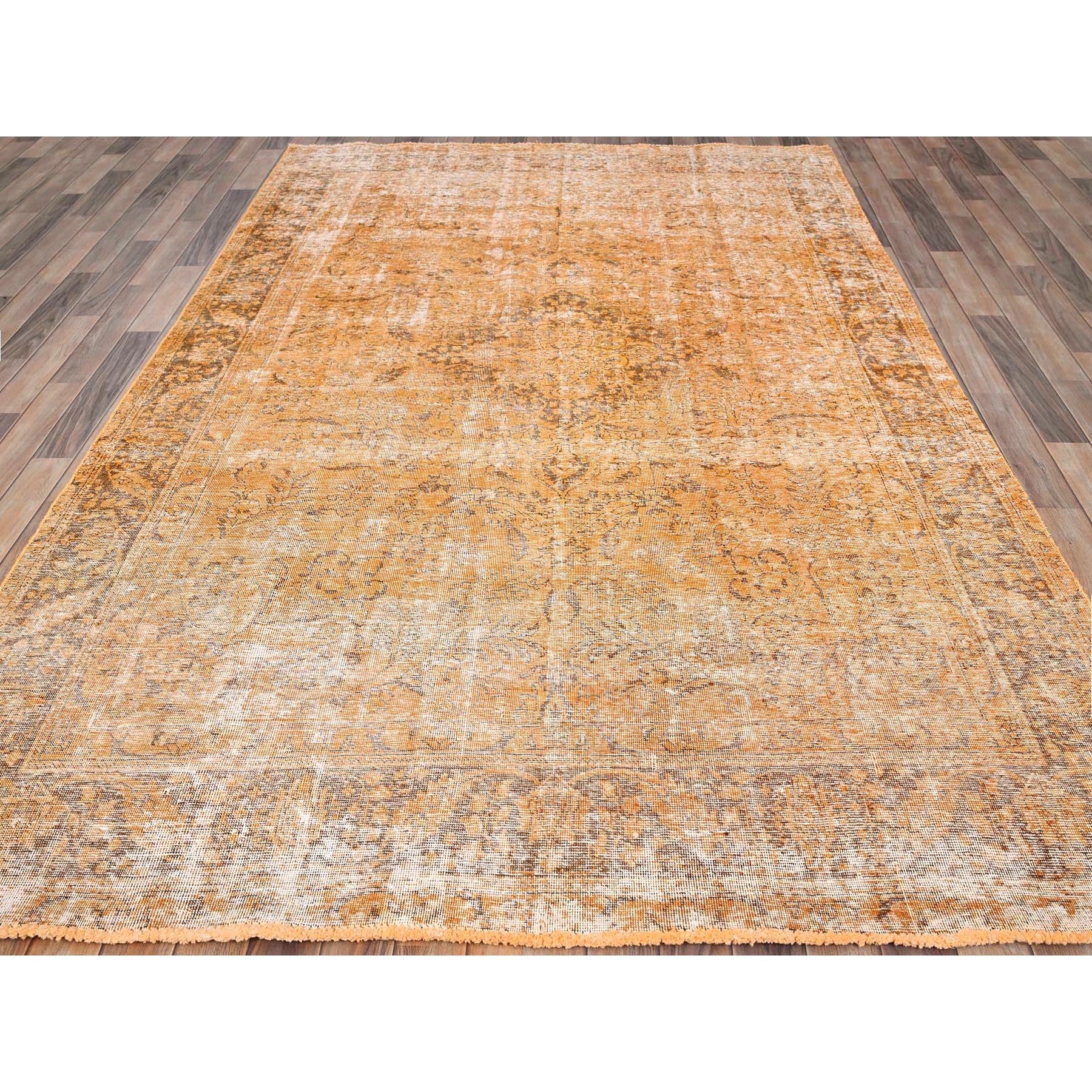 6'5"x10' Carrot Orange, Shaved Down, Distressed Look, Extra Soft Wool, Hand Knotted, Vintage Persian Tabriz With Faded Medallion Design, Oriental Rug FWR513252