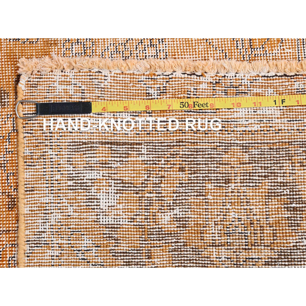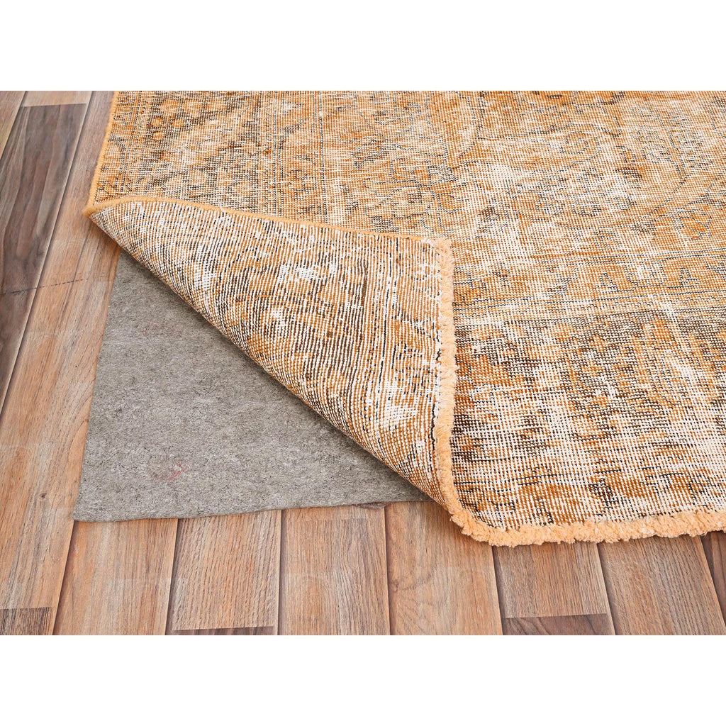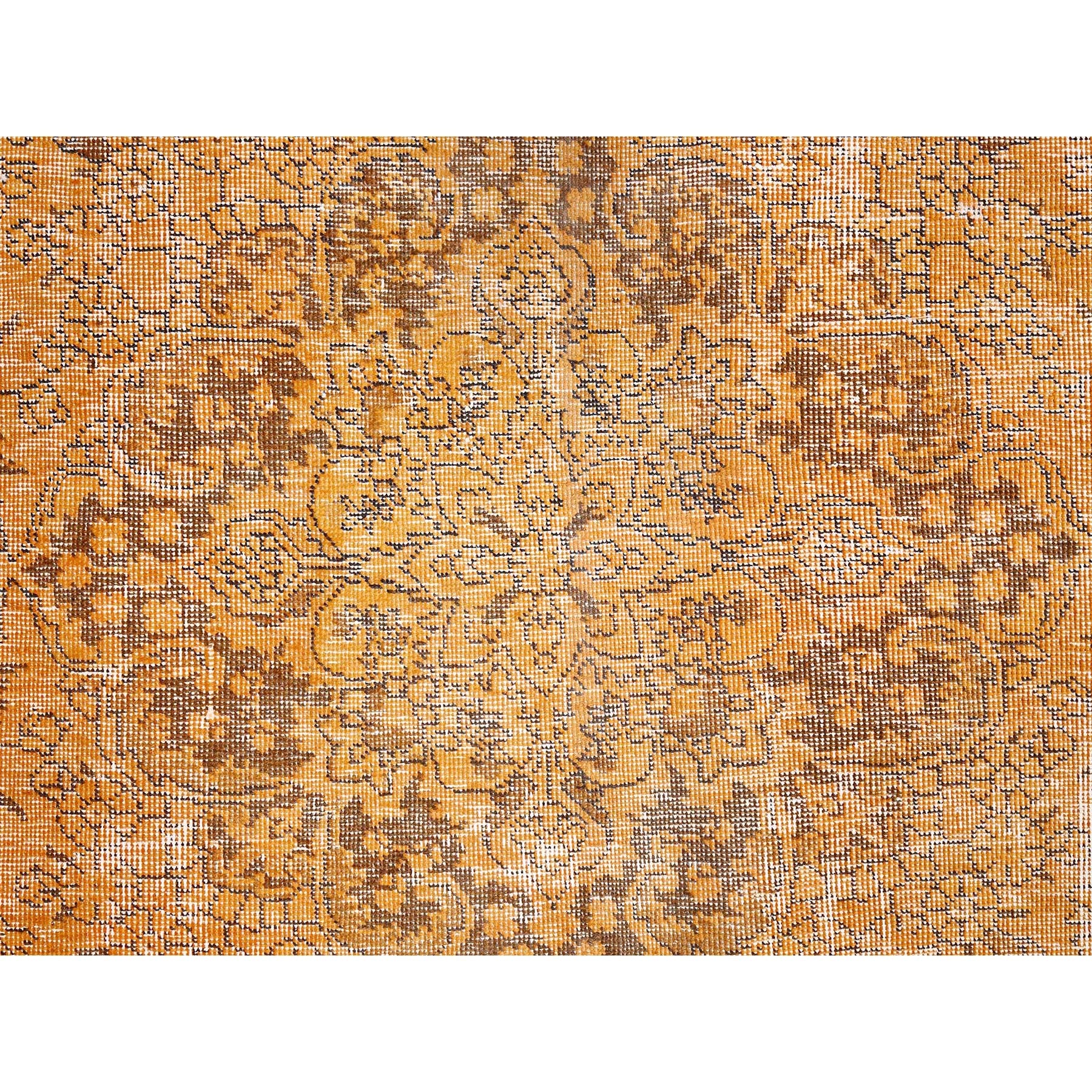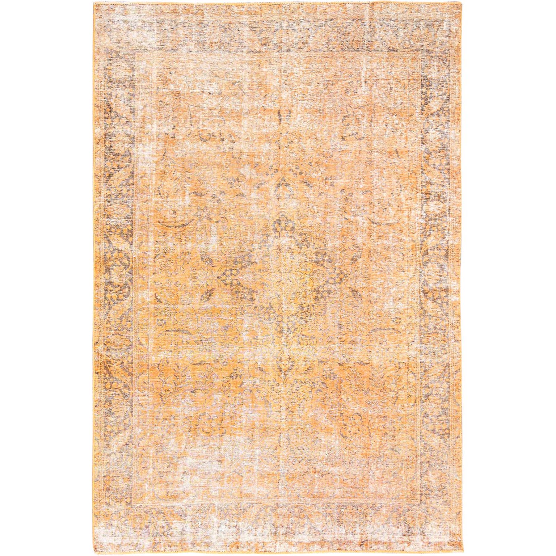 6'5"x10' Carrot Orange, Shaved Down, Distressed Look, Extra Soft Wool, Hand Knotted, Vintage Persian Tabriz With Faded Medallion Design, Oriental Rug FWR513252