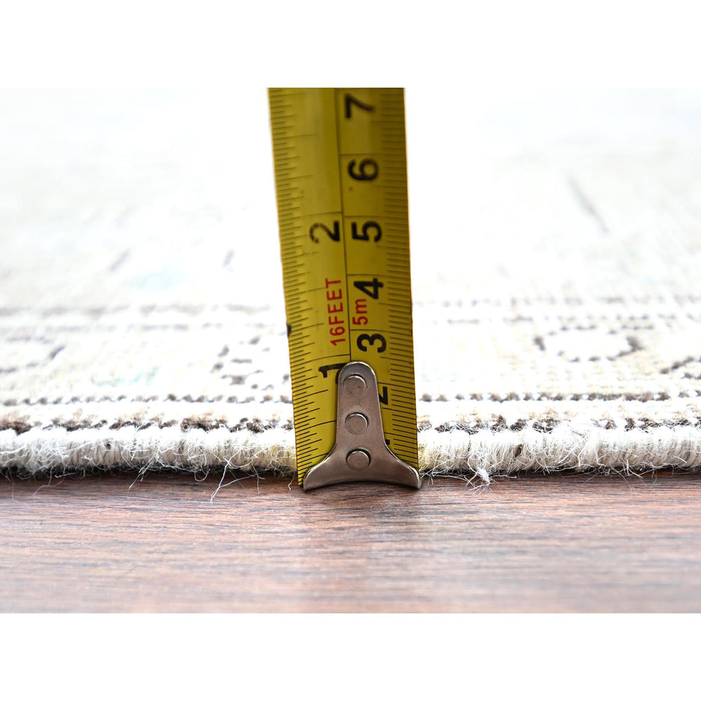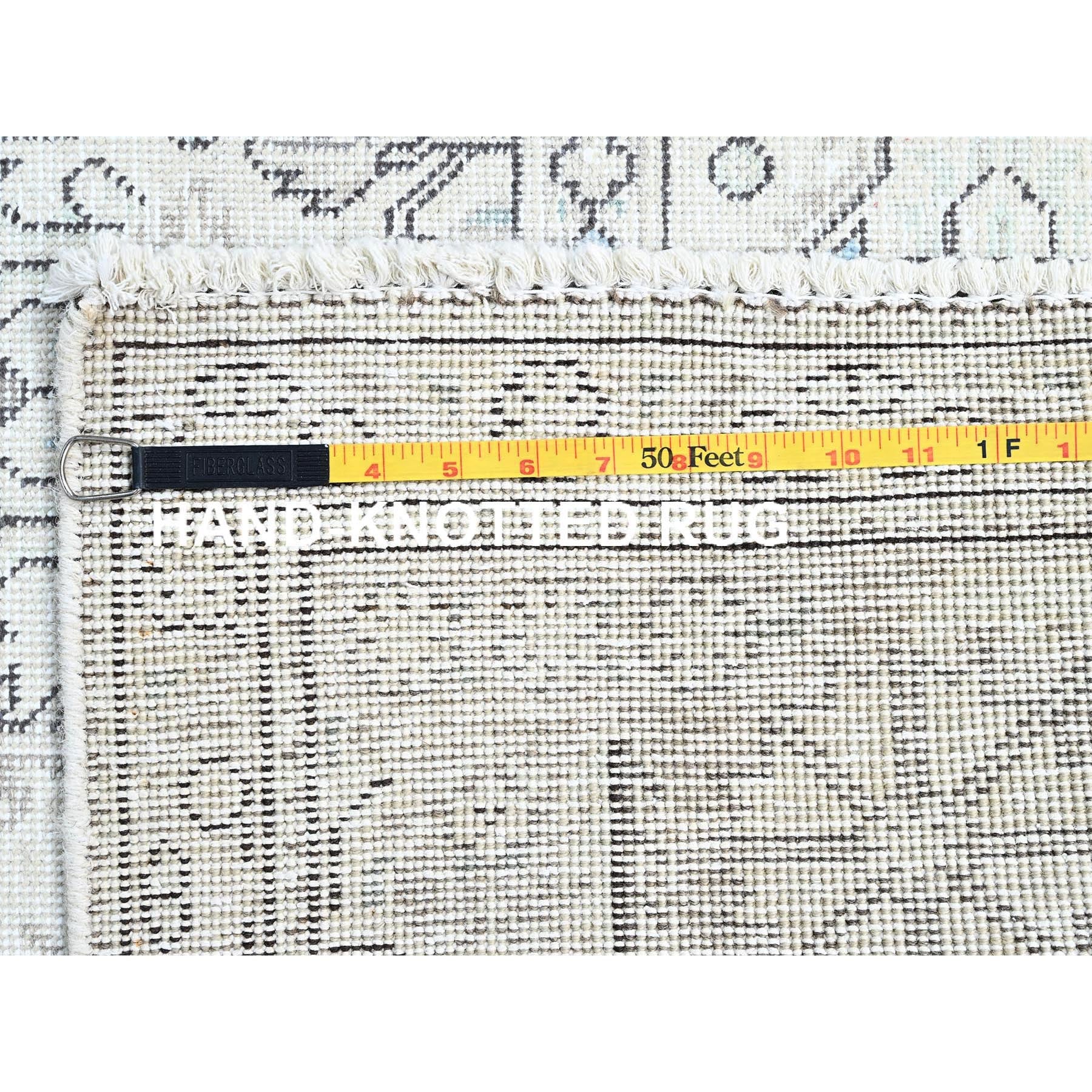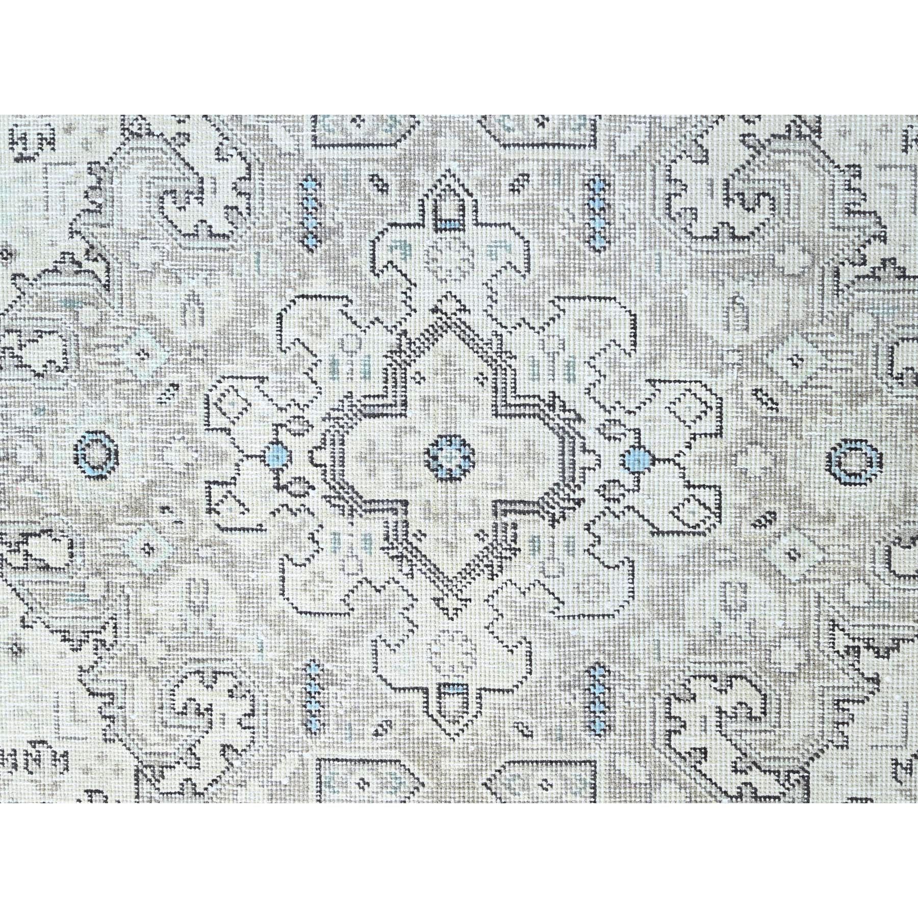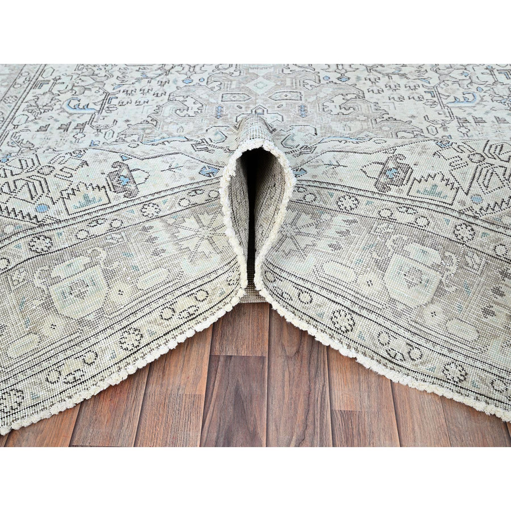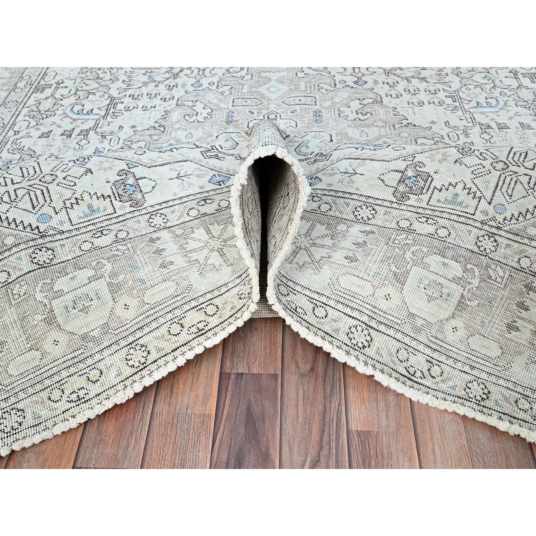 6'5"x9'1" Chantilly Lace White, Good Condition, Cropped Thin, Sheared Low, Vintage Persian Tabriz Geometric Medallion, Even Wear, Sides And Ends Professionally Secured And Cleaned, Distressed Extra Soft Wool Oriental Rug FWR516570
