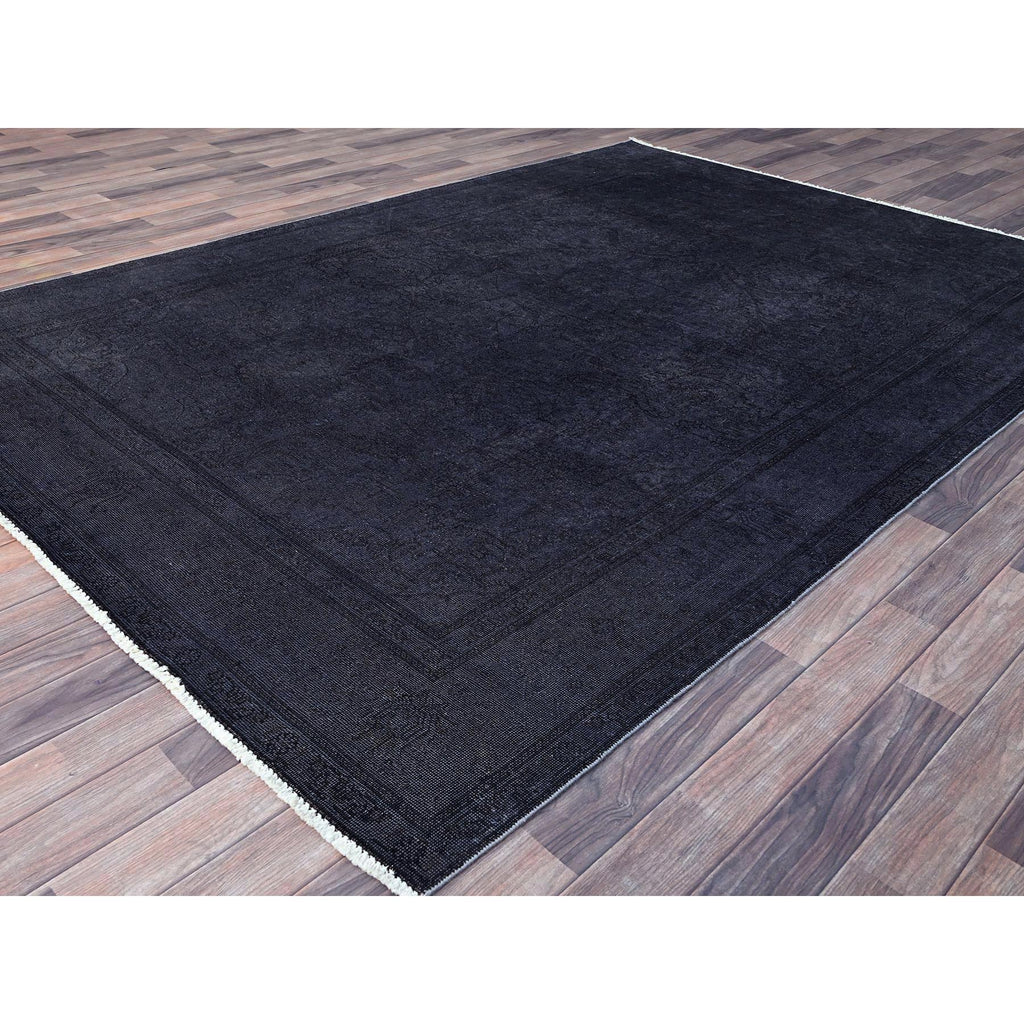 6'5"x9'5" Onyx Black, Overdyed, Evenly Worn, Cropped Thin, Hand Knotted Sides And Ends Professionally Secured, Vintage Persian Tabriz, Sheared Low, Cleaned, Extra Soft Wool, Oriental Rug FWR521616