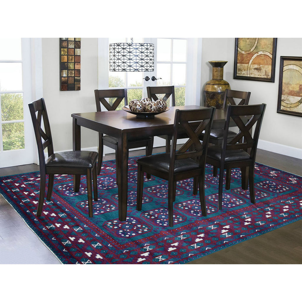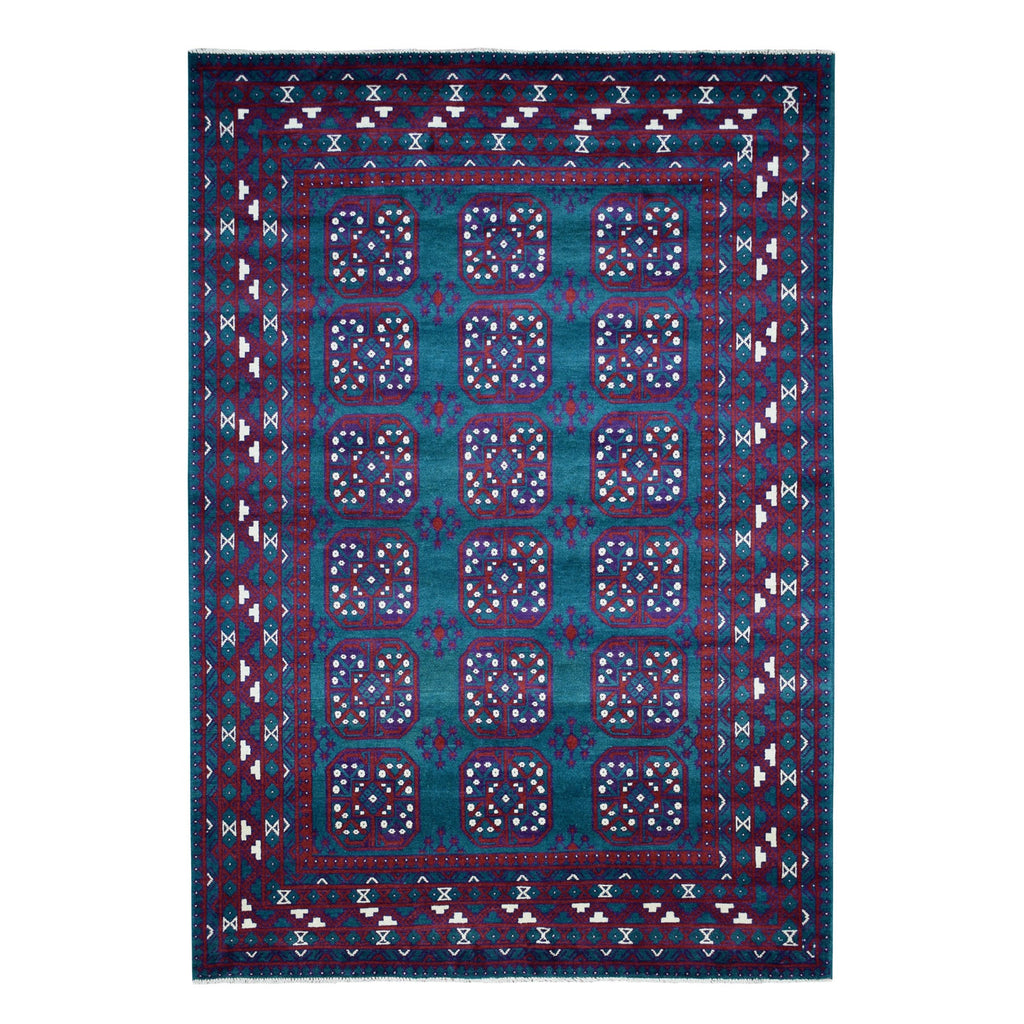 6'6"x9'4" Green Elephant Feet Design Colorful Afghan Baluch Hand Knotted Pure Wool Oriental Rug FWR320124
