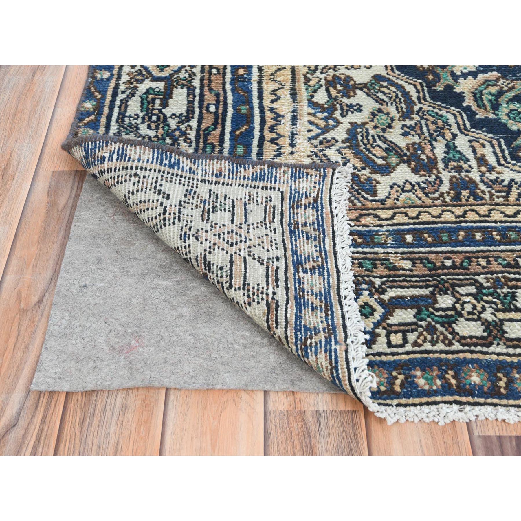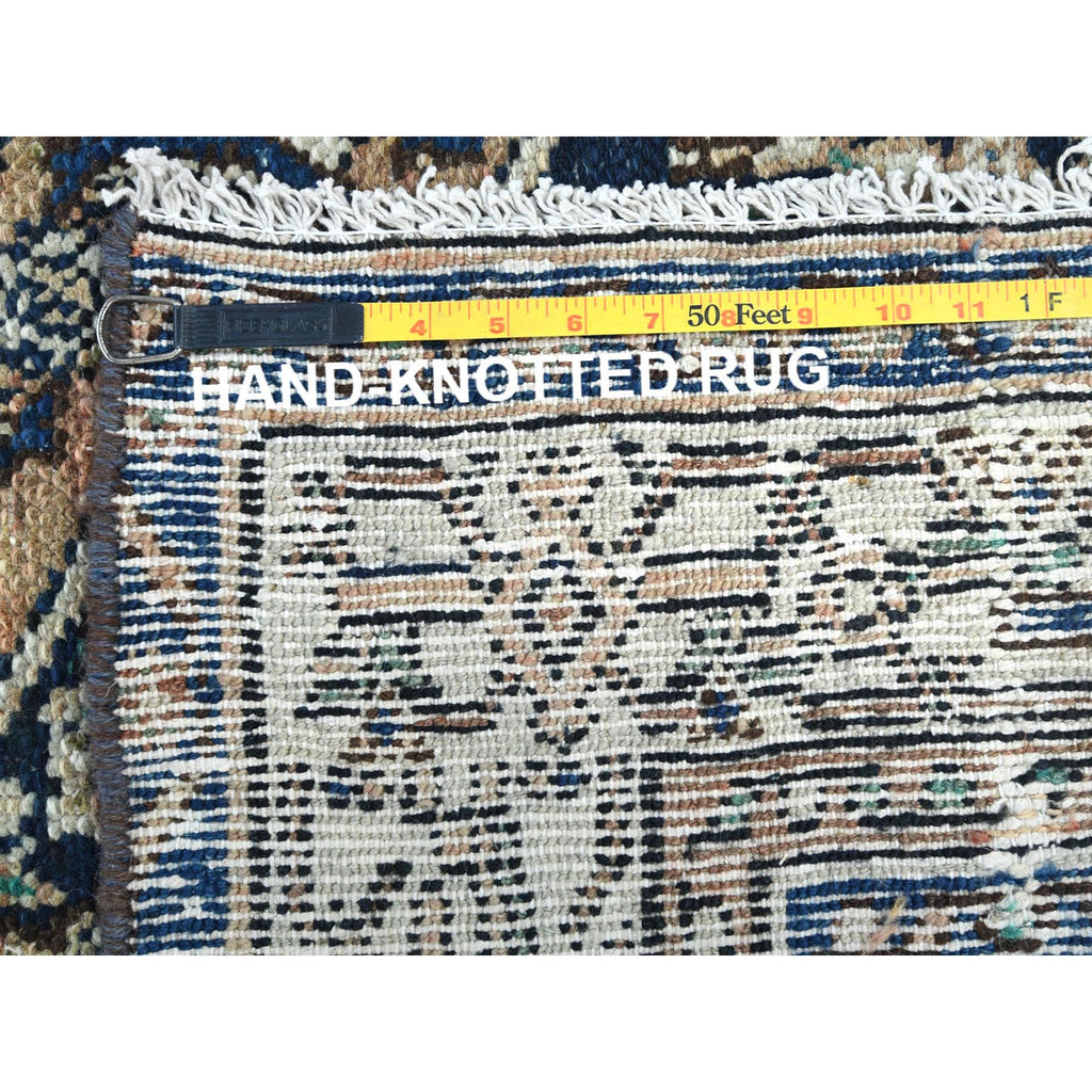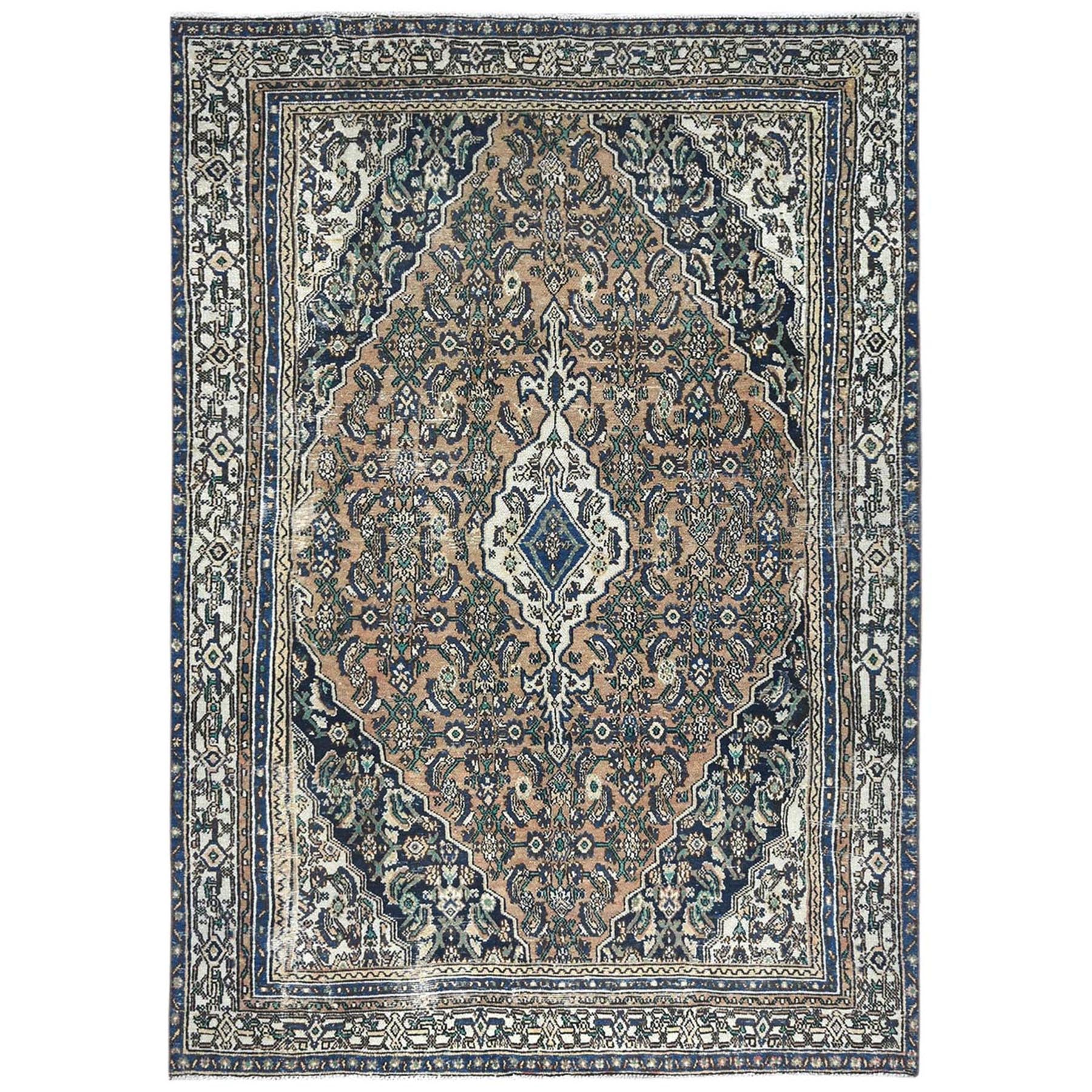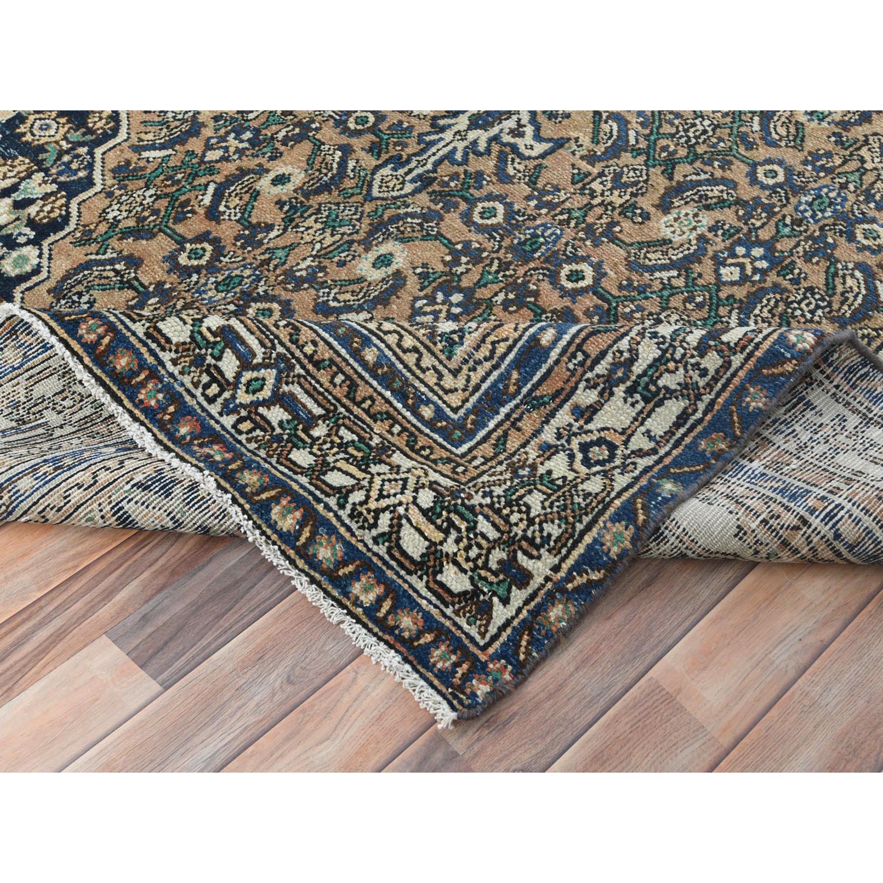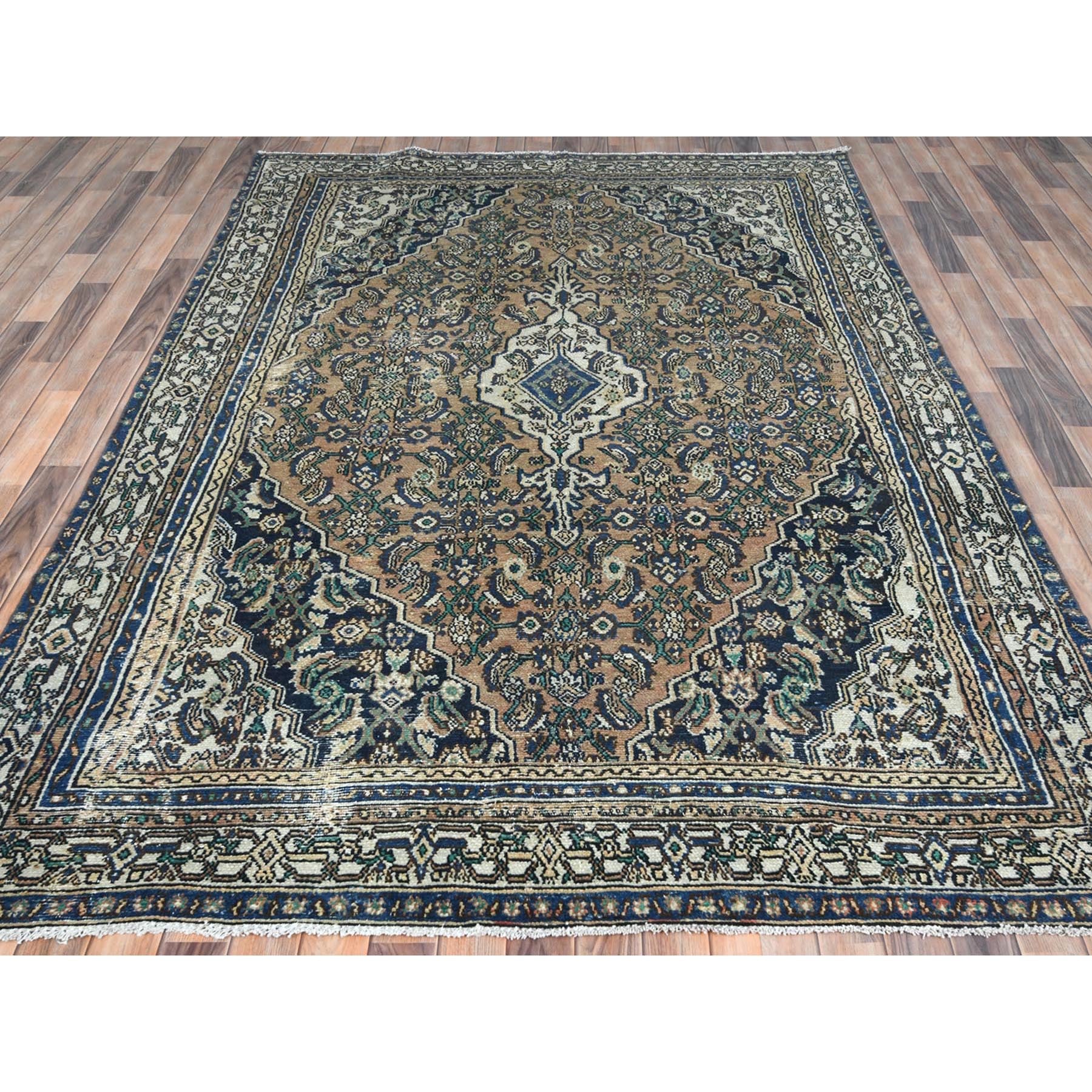 6'6"x9'6" Brown, Vintage Persian Hamadan Cropped Thin, Distressed Look Worn Wool Hand Knotted, Oriental Rug FWR487164