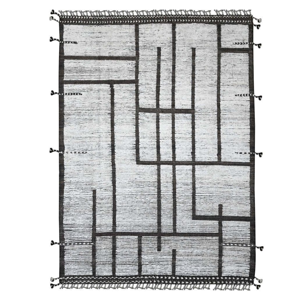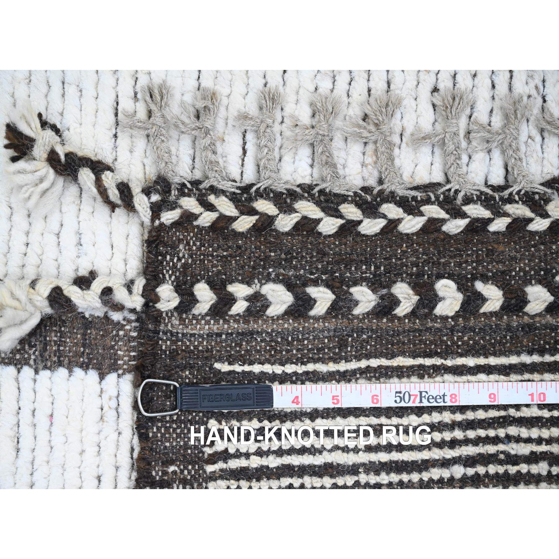 6'6"x9' Daisy White, Moroccan Weave With Maze Design, Geometric Pattern, Soft Wool, Hand Knotted, Tone On Tone, Textured Pile, Oriental Rug FWR124458