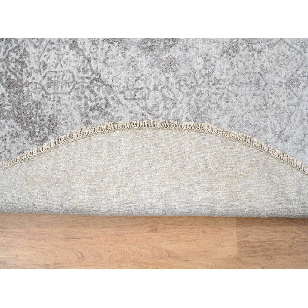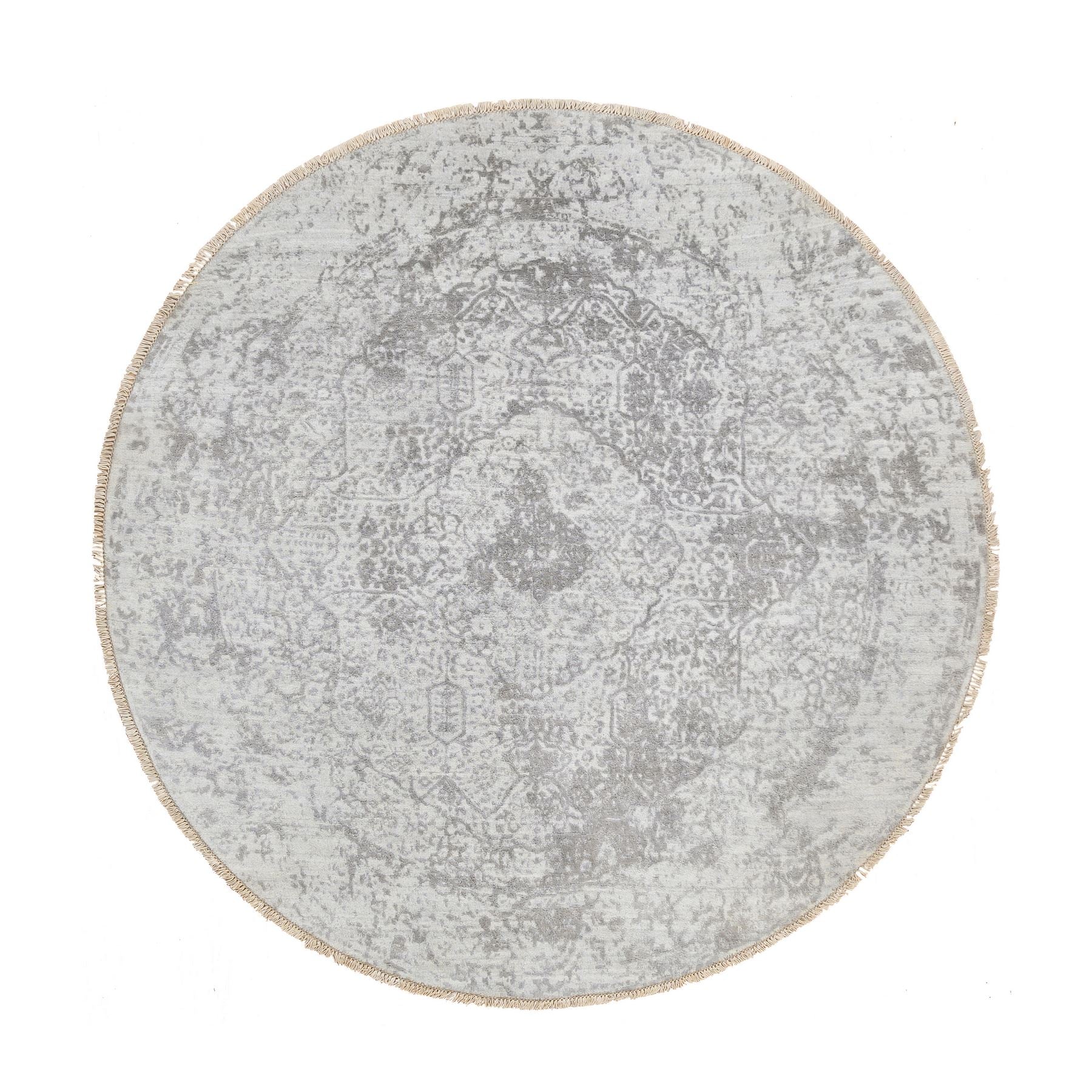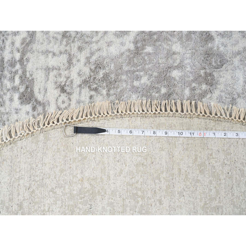 6'7"x6'7" Gray, Hand Knotted Broken Persian Design, Wool And Pure Silk, Round Oriental Rug FWR385932