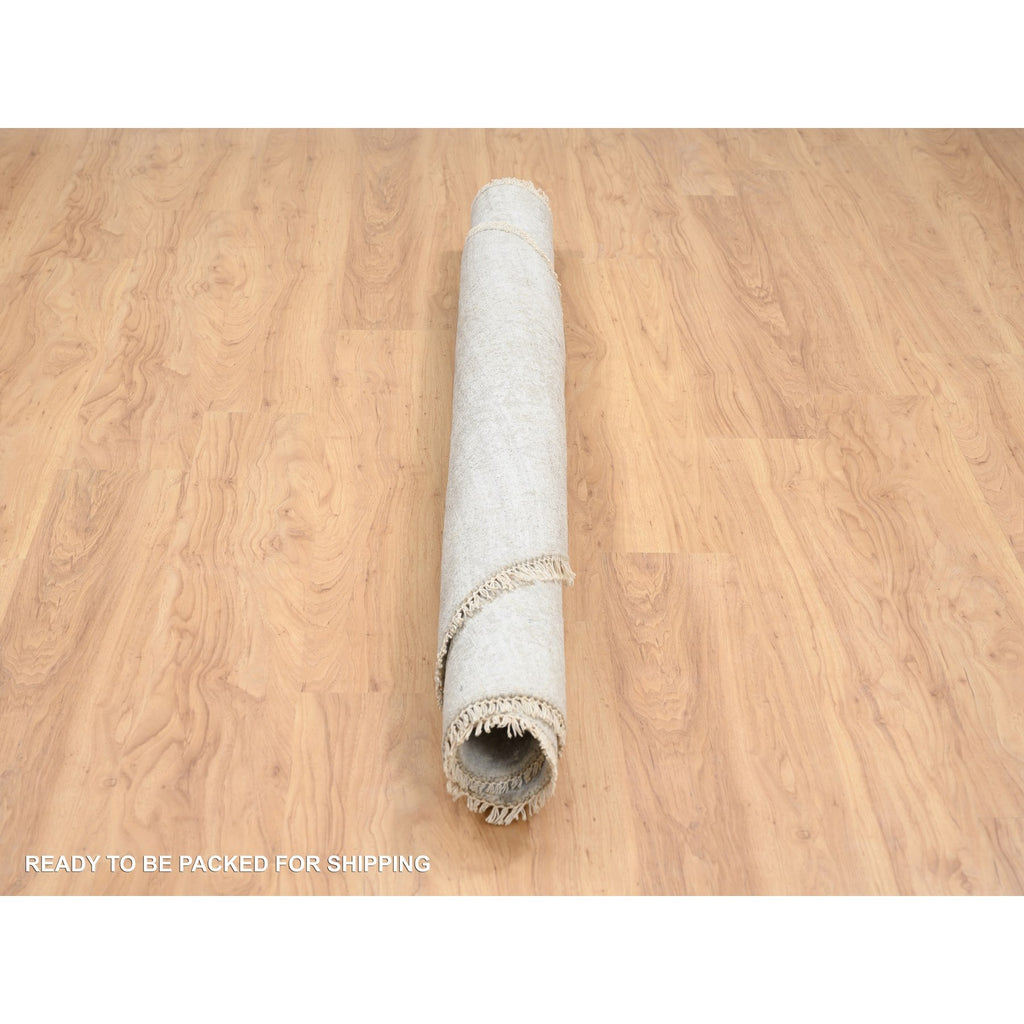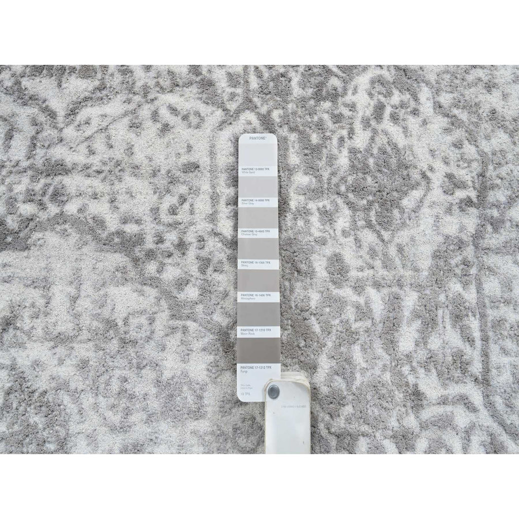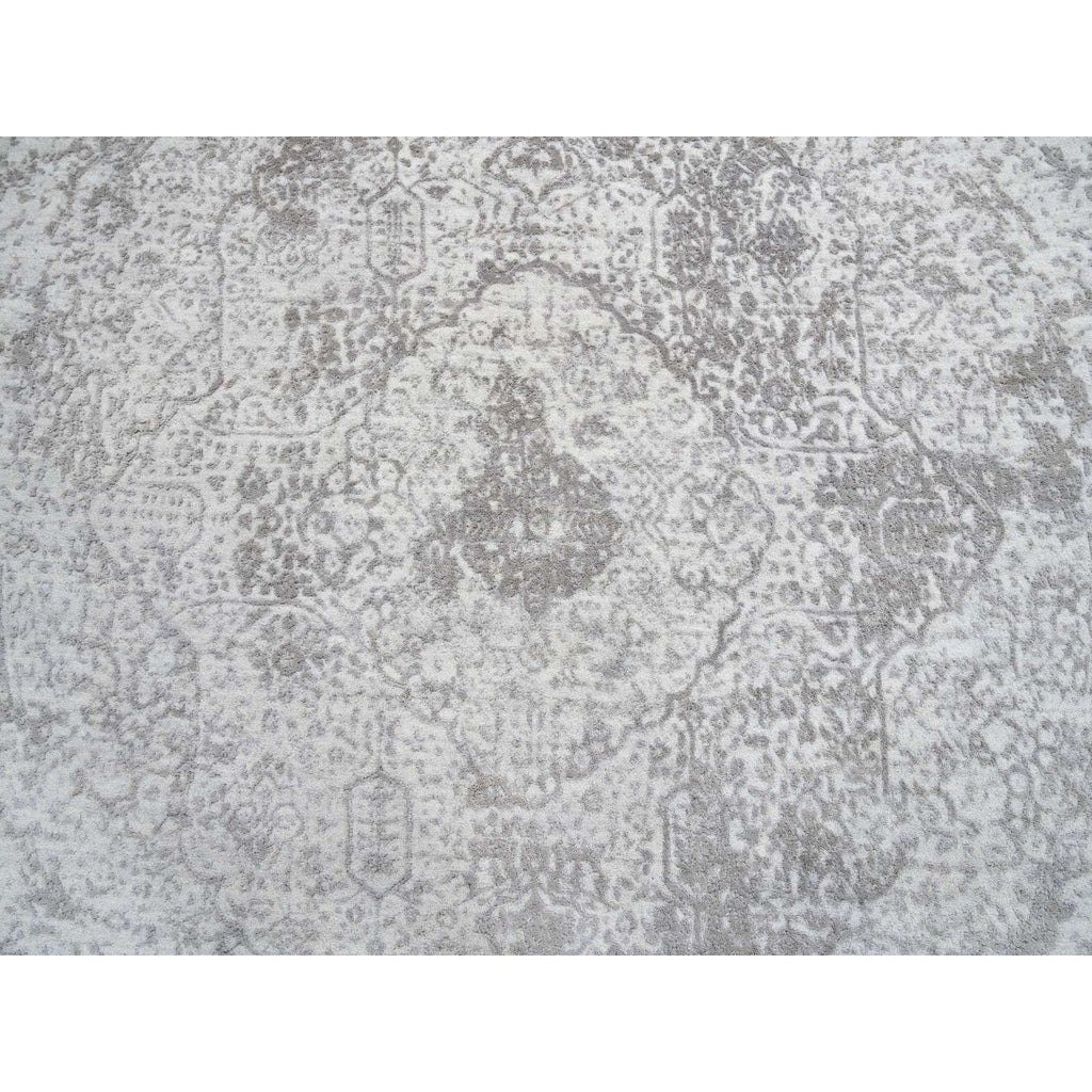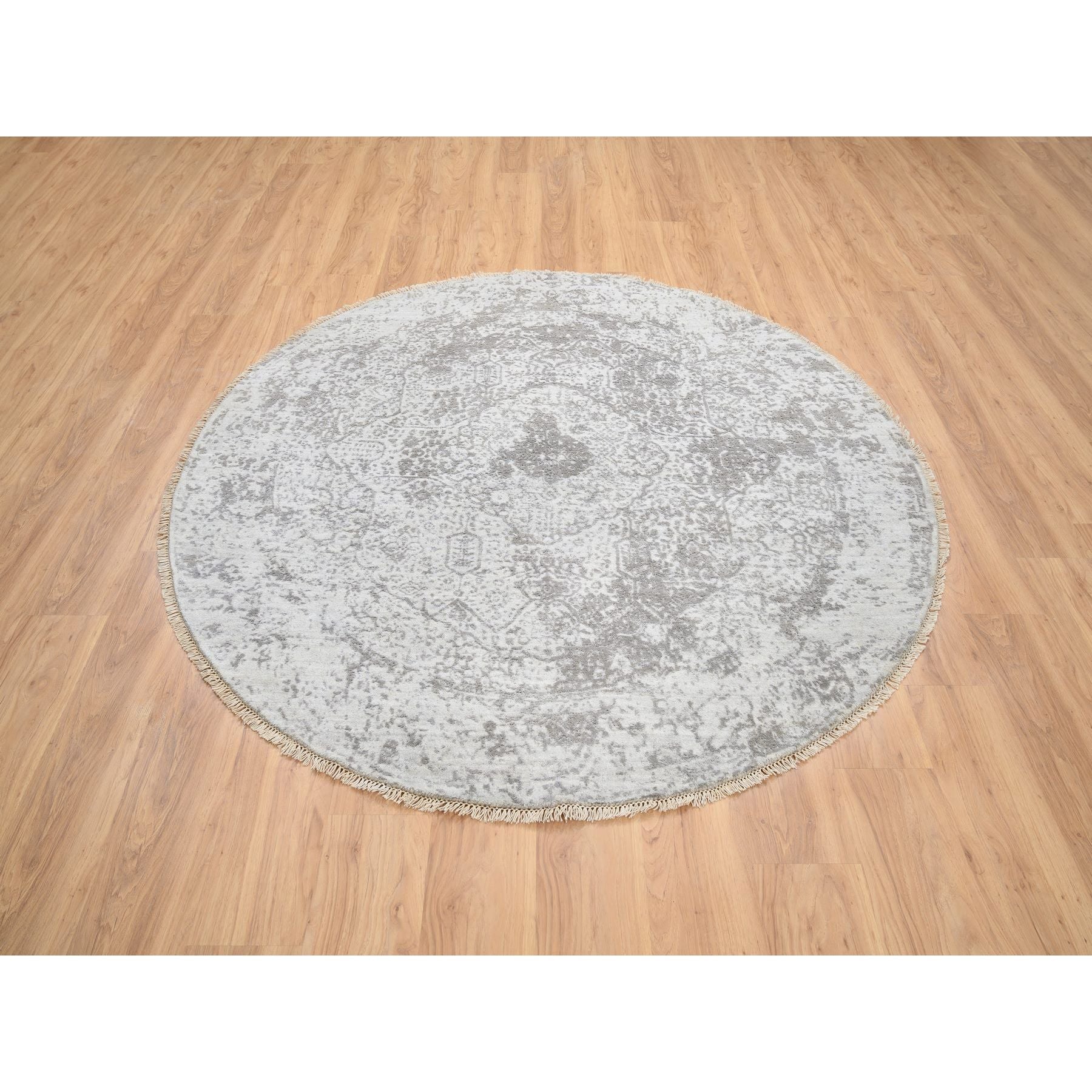 6'7"x6'7" Gray, Hand Knotted Broken Persian Design, Wool And Pure Silk, Round Oriental Rug FWR385932