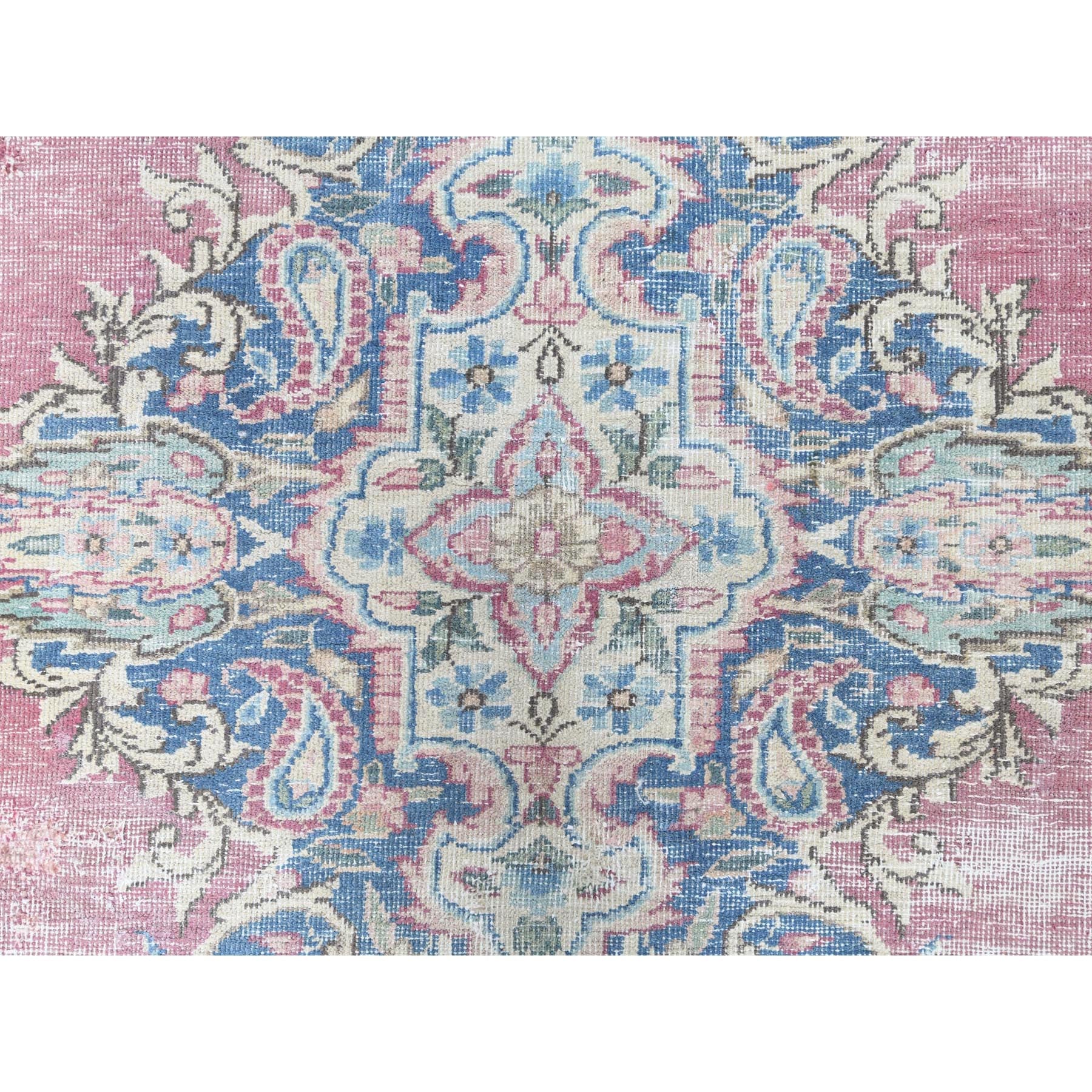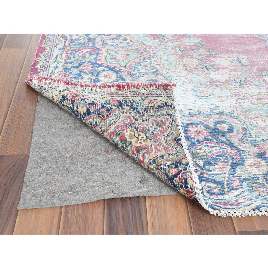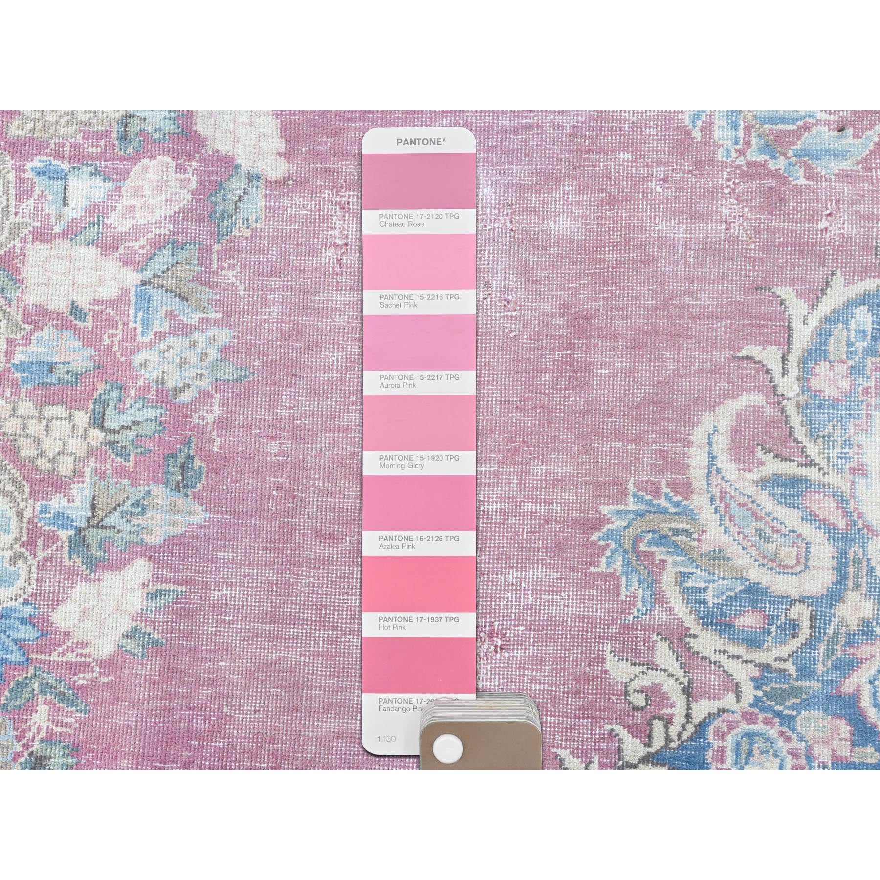 6'7"x8'7" Vintage Persian Kerman, Distressed Look, Worn Wool, Shaved Down, Hand Knotted, Pink, Oriental Rug FWR370464