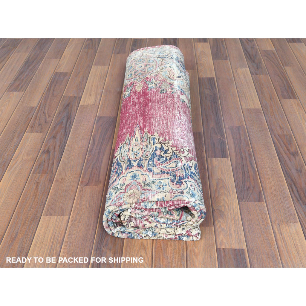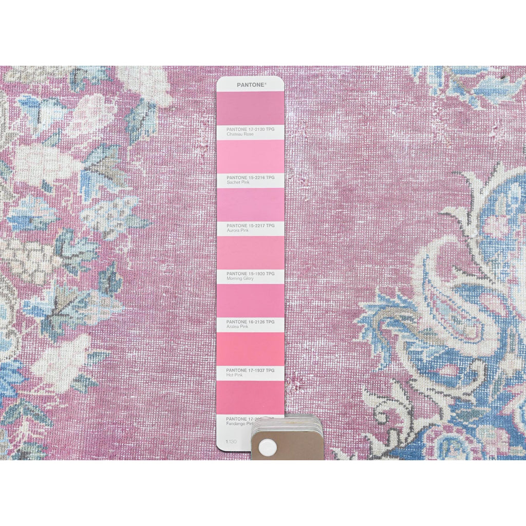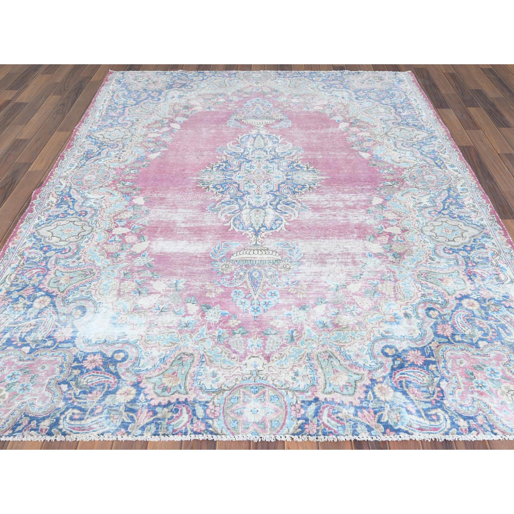 6'7"x8'7" Vintage Persian Kerman, Distressed Look, Worn Wool, Shaved Down, Hand Knotted, Pink, Oriental Rug FWR370464