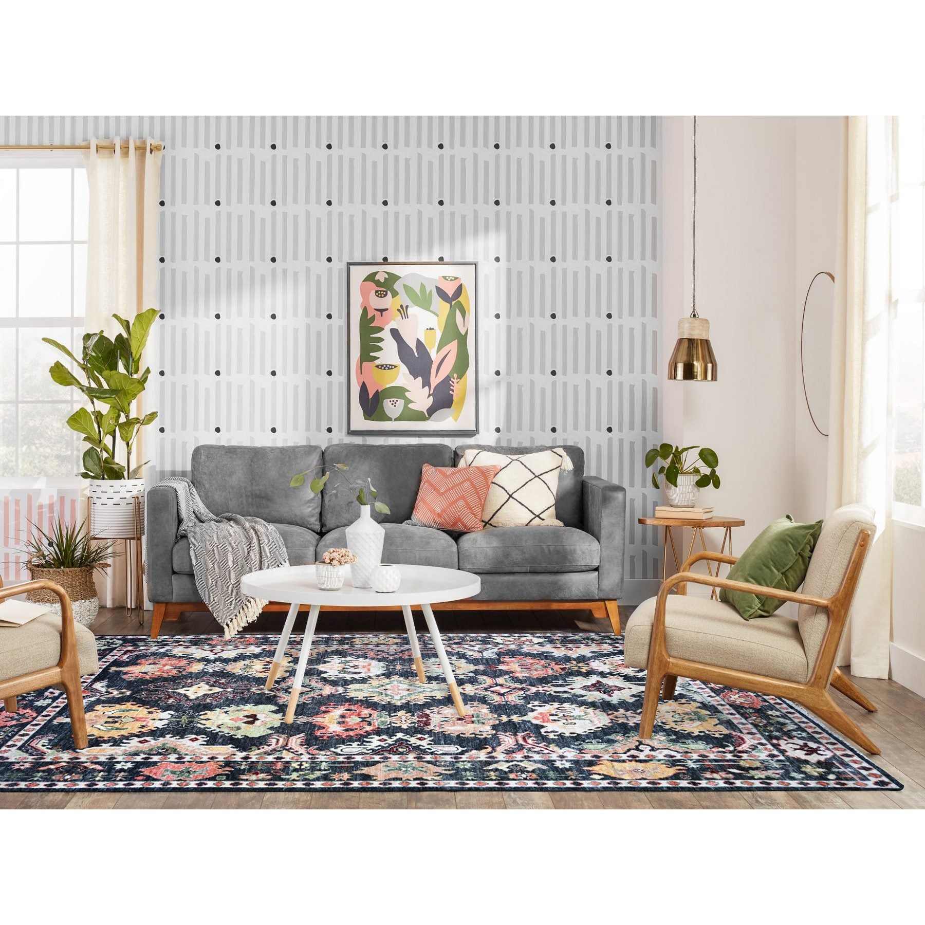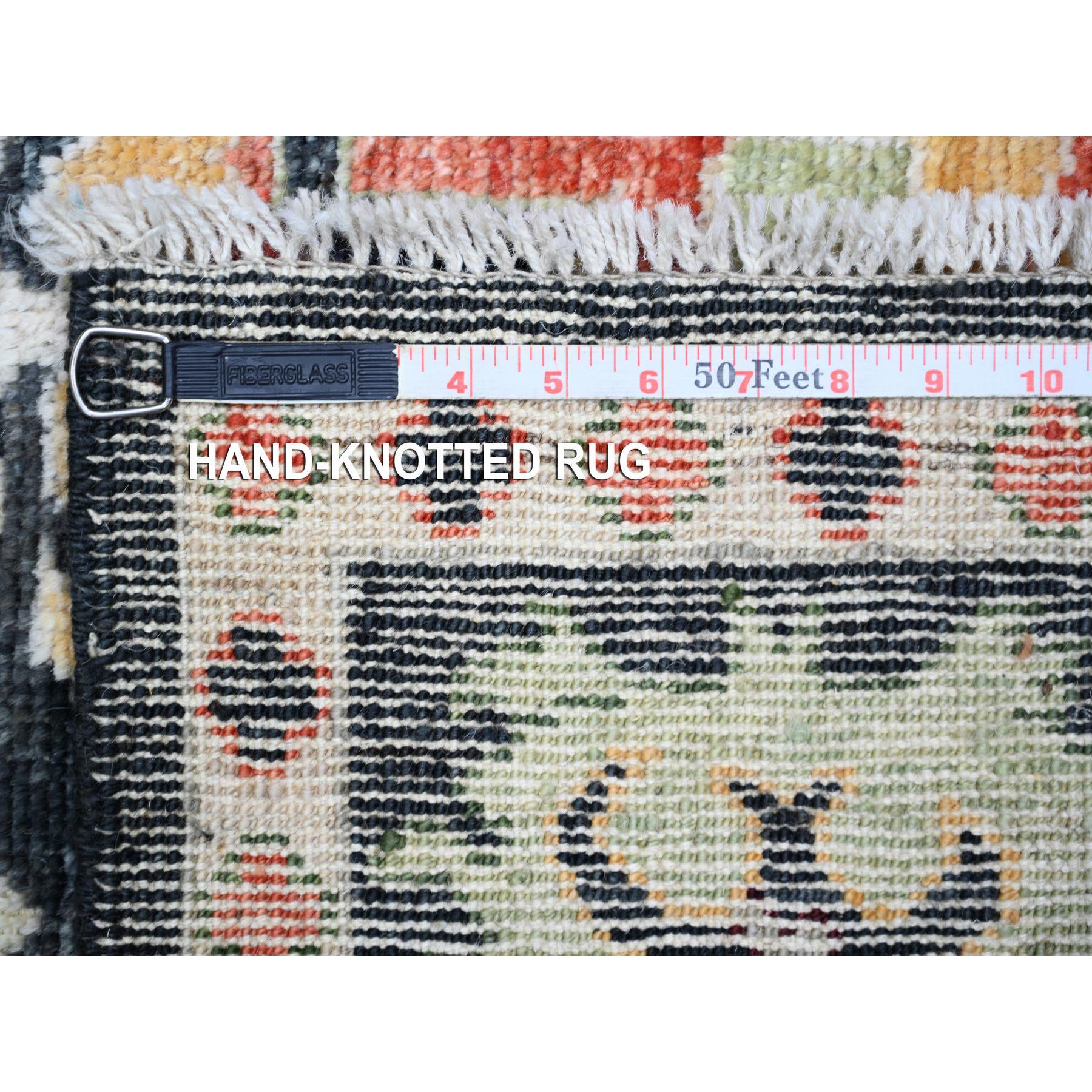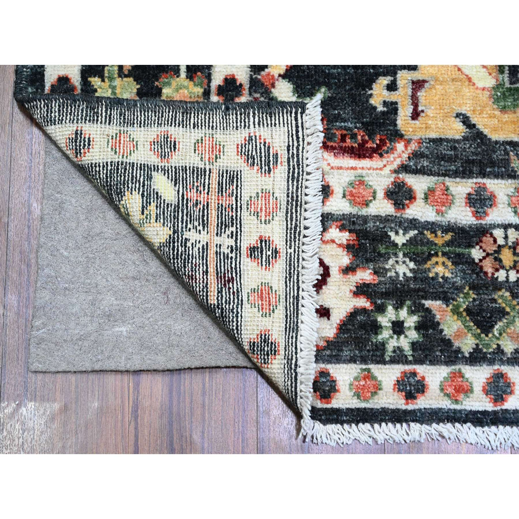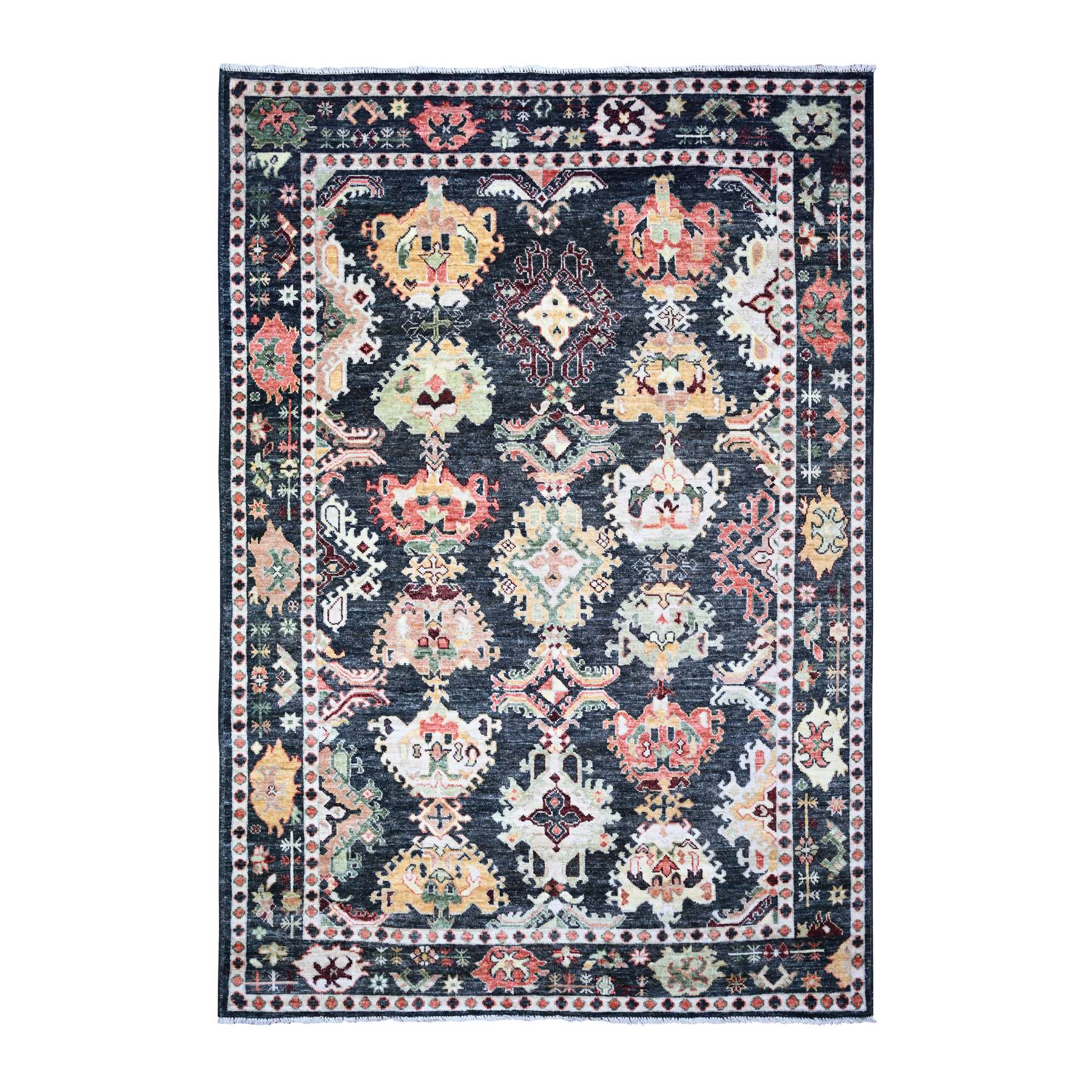 6'7"x9'5" Charcoal Black, Afghan Angora Oushak With Pop Of Color, Geometric Leaf Design, Soft Wool, Hand Knotted, Vegetable Dyes, Oriental Rug FWR439632