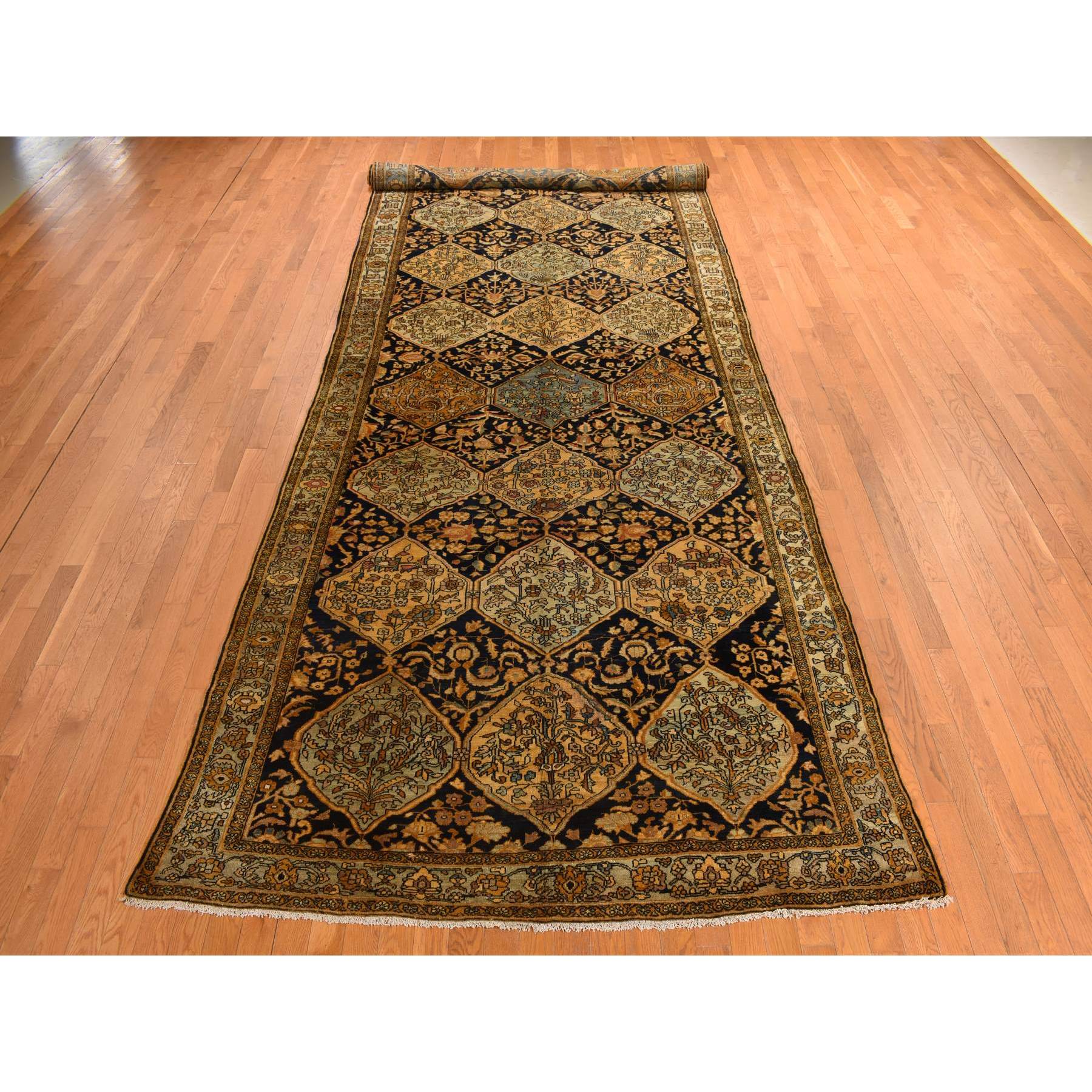 6'8"x19'3" Midnight Blue With Yellow, Antique Persian Bakhtiari In An Excellent Condition, Diamond Shape Garden Medallion Design, Hand Knotted, Pure Wool, Gallery Size Wide Runner, Oriental Rug FWR469932