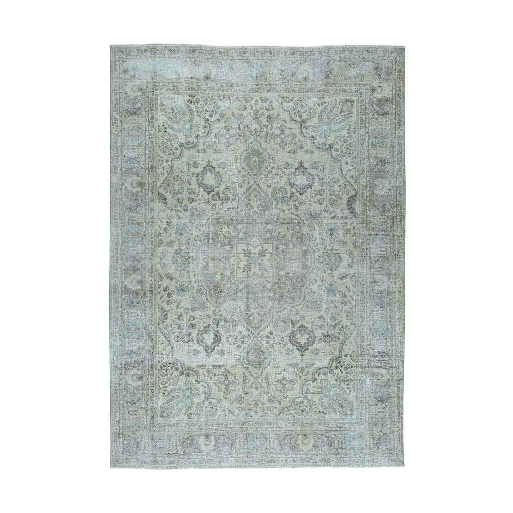 6'8"x9'6" Beige Vintage Persian Tabriz Worn Pile Hand Knotted Oriental Rug FWR313626