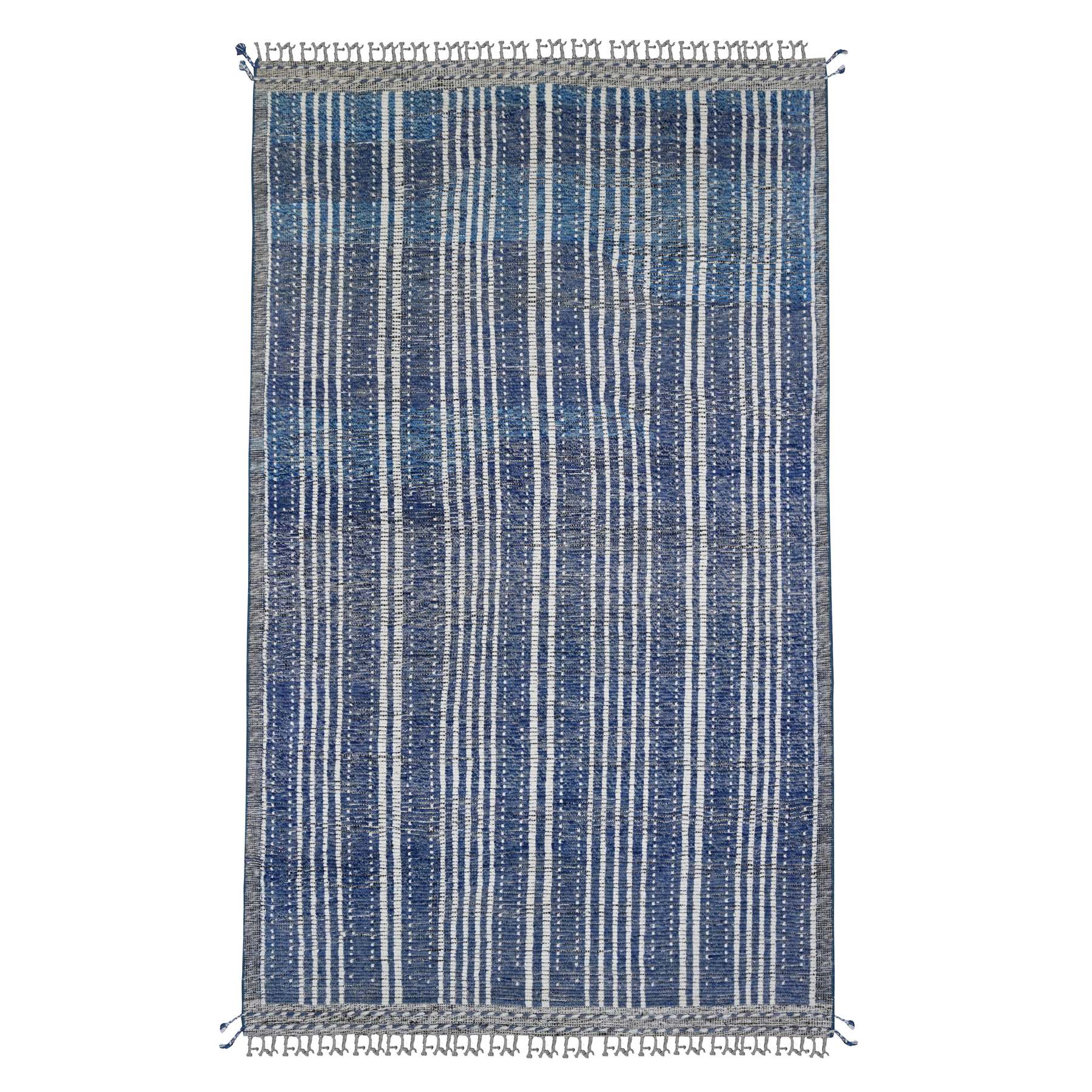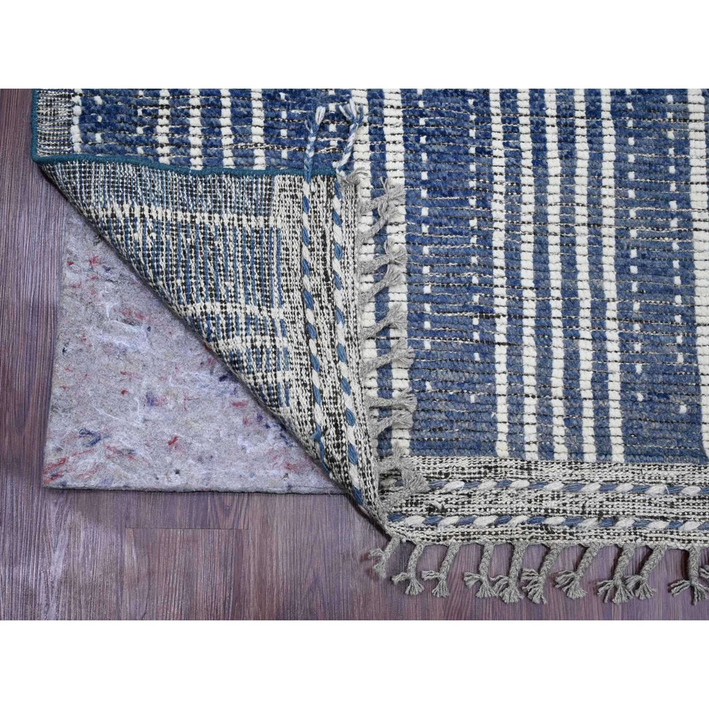 6'x10'4" Aegean Blue, Moroccan Weave With Line Design, Soft Wool, Hand Knotted, Tone On Tone, Textured Pile, Oriental Rug FWR124446