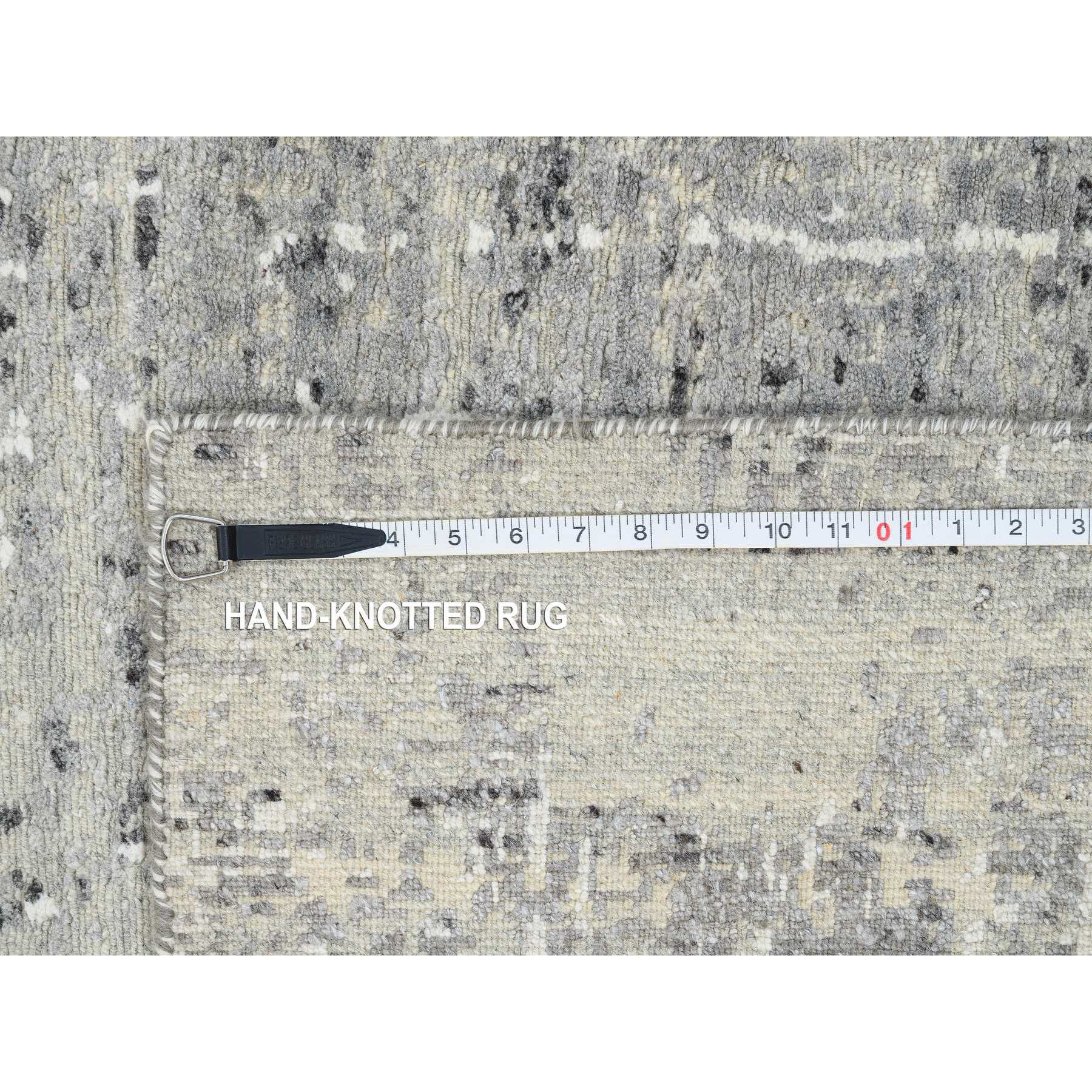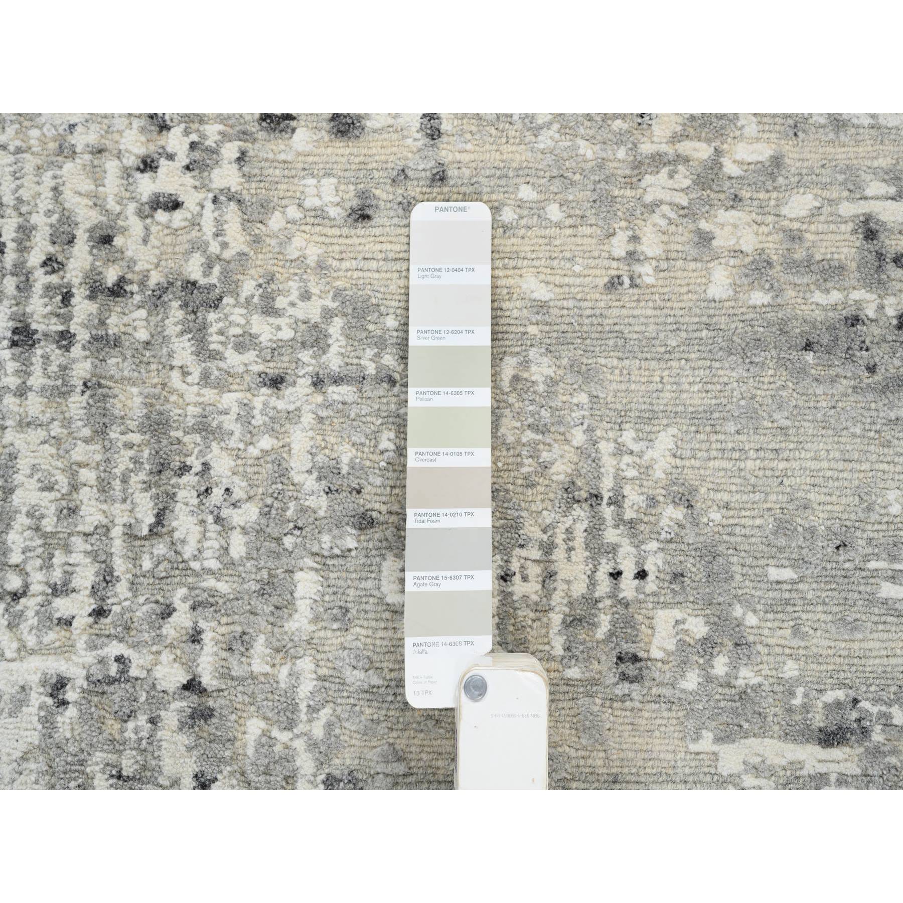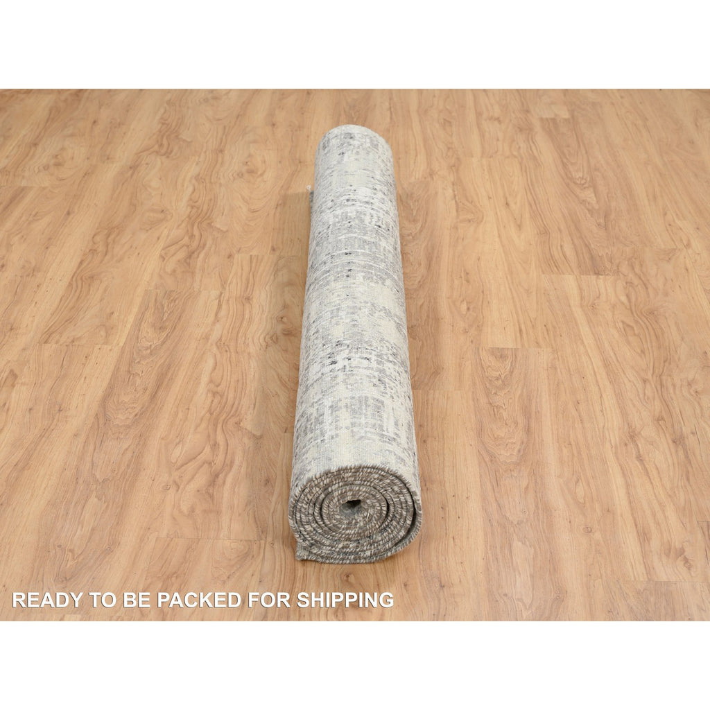 6'x11'10" Light Gray, Hand Spun Undyed Natural Wool, Hand Knotted, Modern Design, Gallery Size Runner Oriental Rug FWR388128