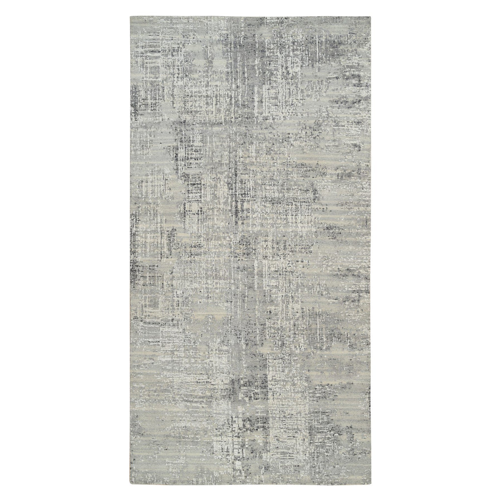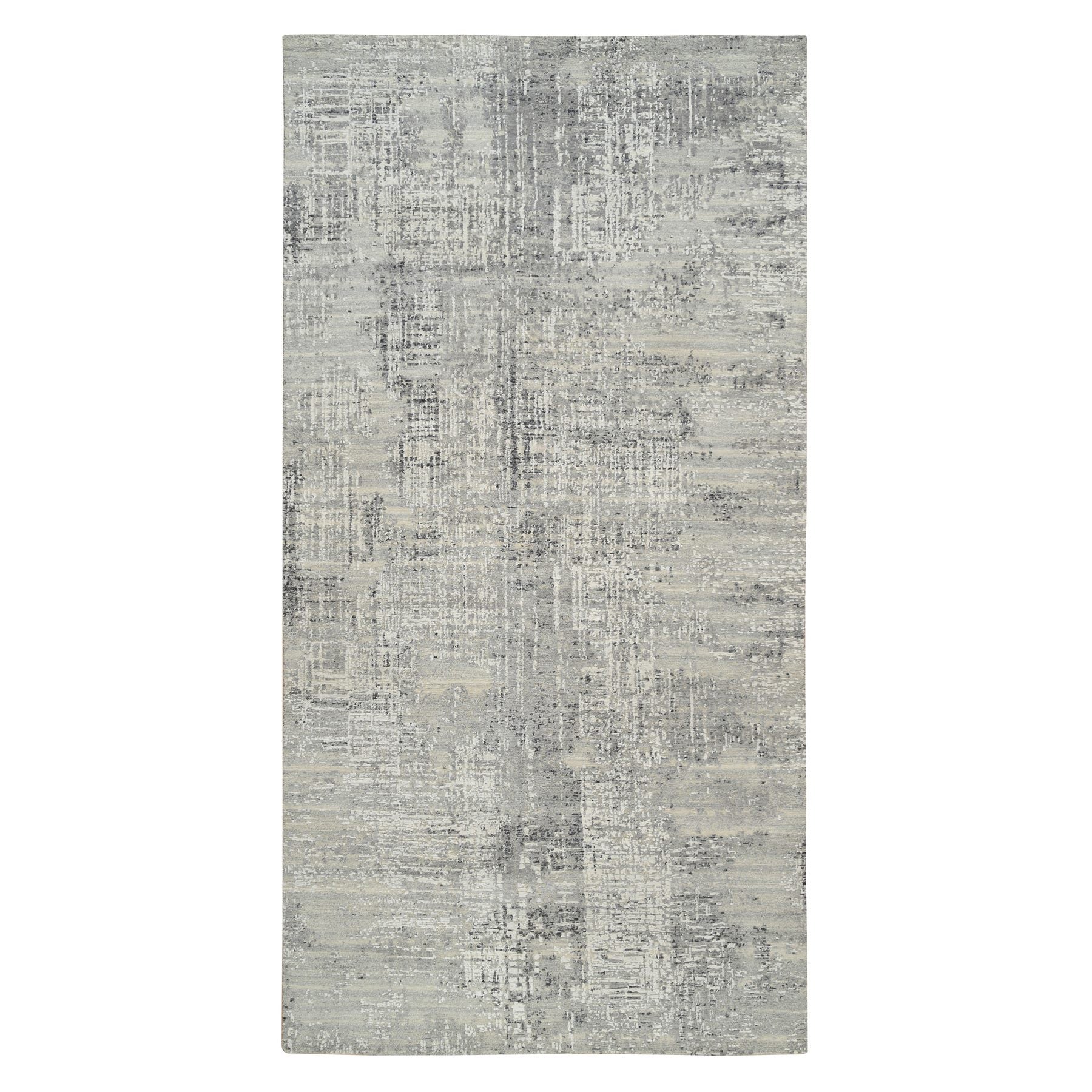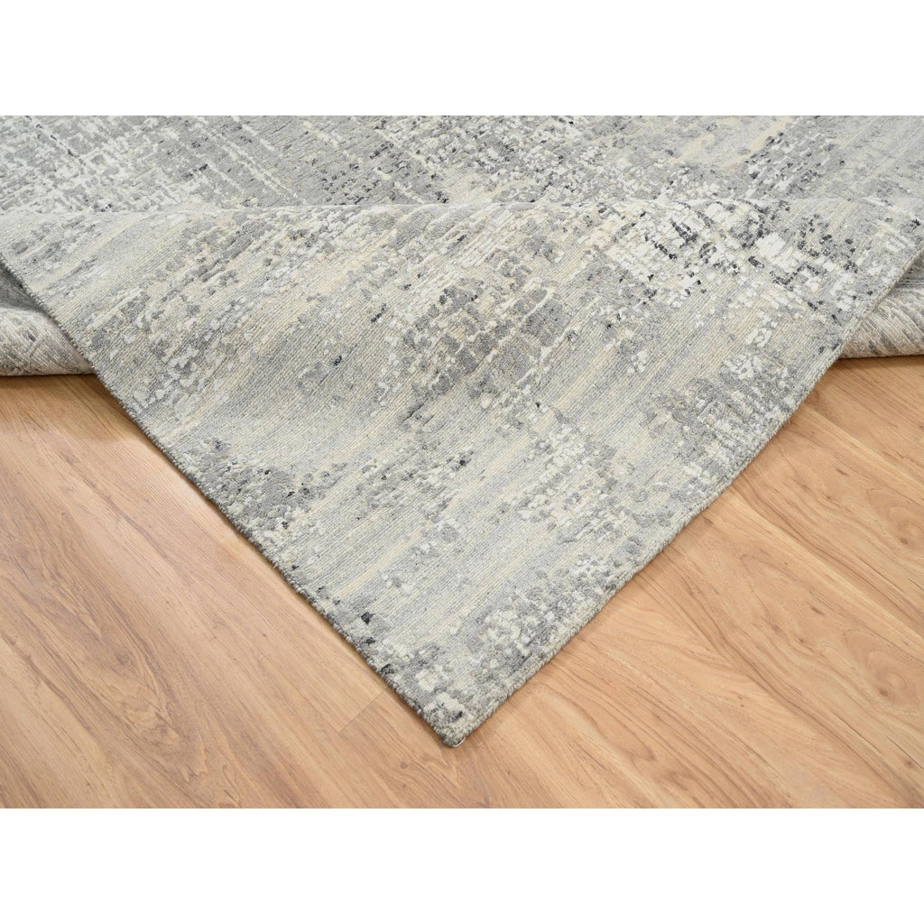 6'x11'10" Light Gray, Hand Spun Undyed Natural Wool, Hand Knotted, Modern Design, Gallery Size Runner Oriental Rug FWR388128