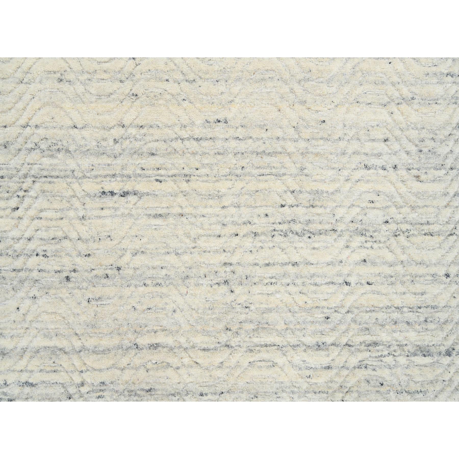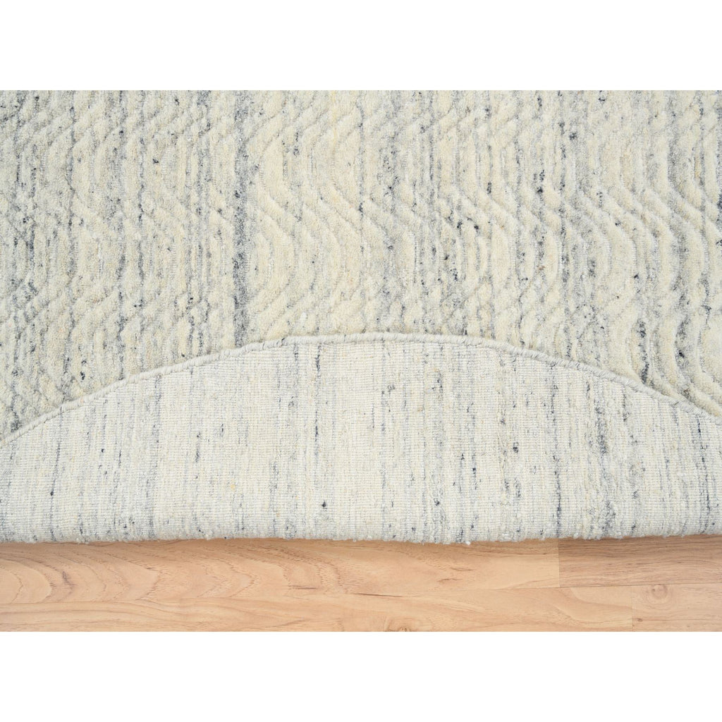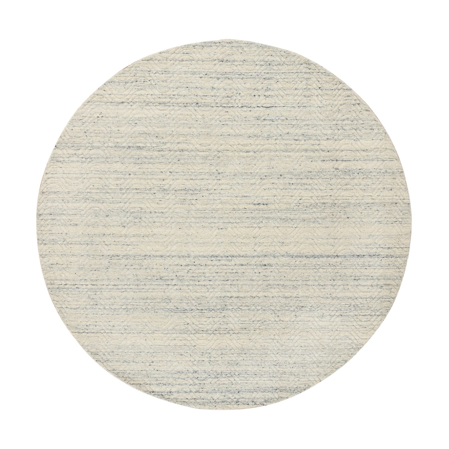 6'x6' Beige, Soft Wool Hand Loomed, Variegated Textured Modern Design, Round Oriental Rug FWR389028
