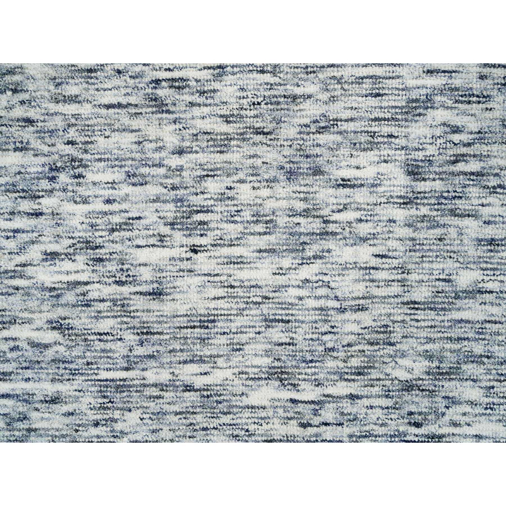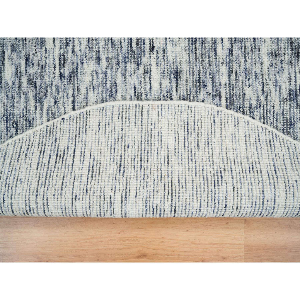 6'x6' Blue And Ivory, Soft To The Touch Pure Wool, Hand Loomed Modern Striae Design, Round Oriental Rug FWR391524