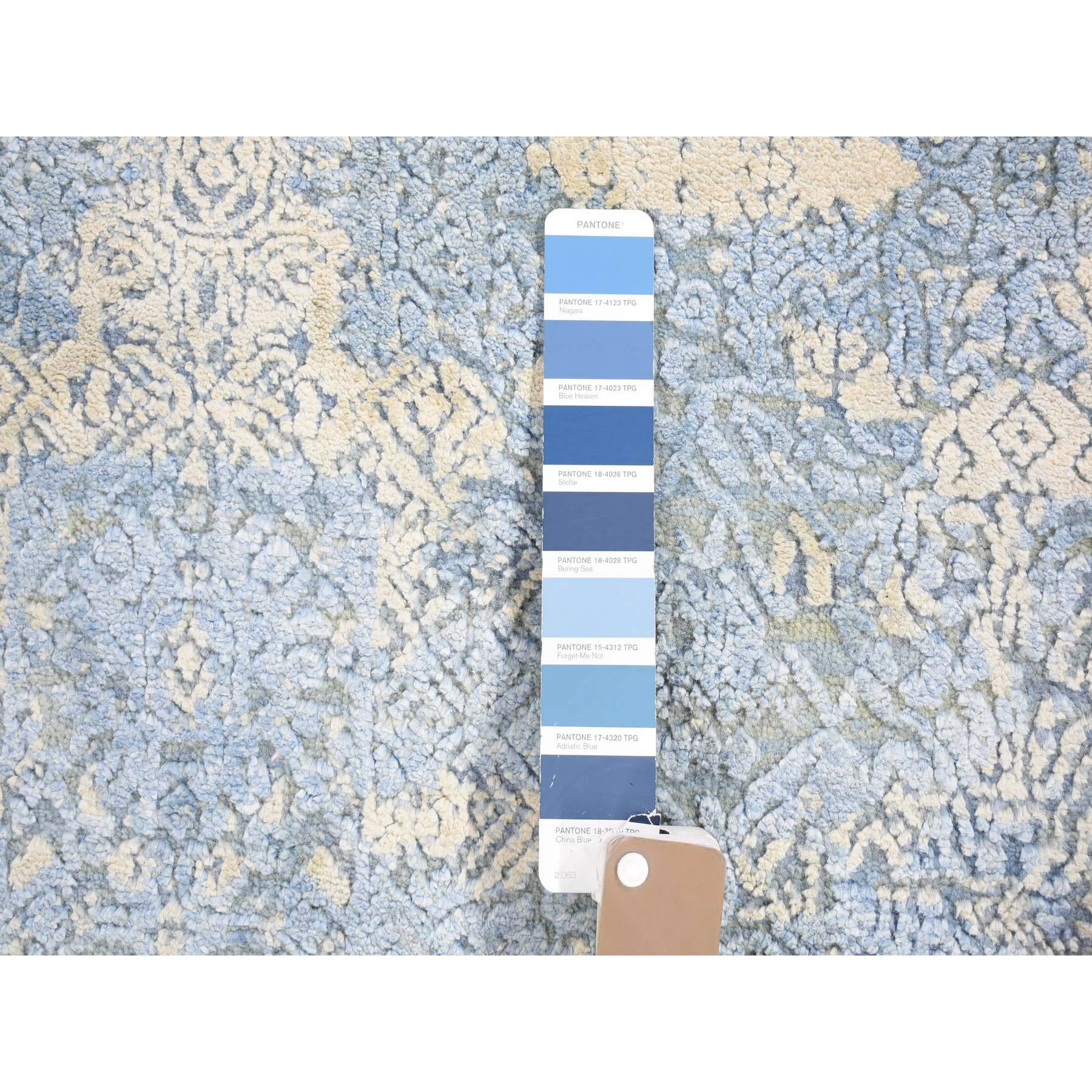 6'x6' Blue Hand Knotted Wool And Pure Silk Jewellery Design With Soft Colors Round Oriental Rug FWR480858