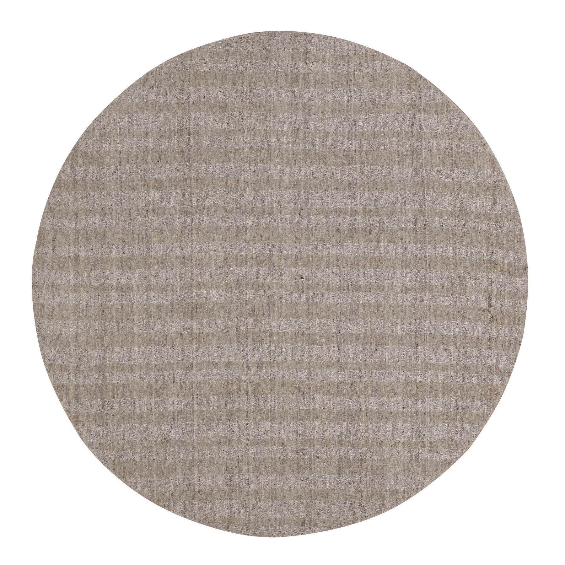 6'x6' Bone Brown, Undyed Natural Wool, Stripes Design With Salt And Pepper Effect, Hand Loomed, Round, Oriental Rug FWR549924