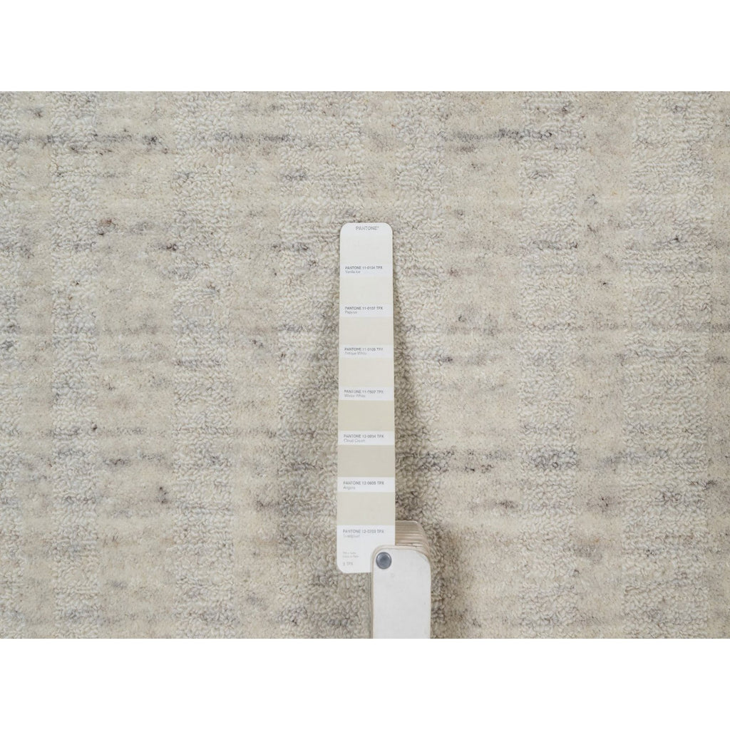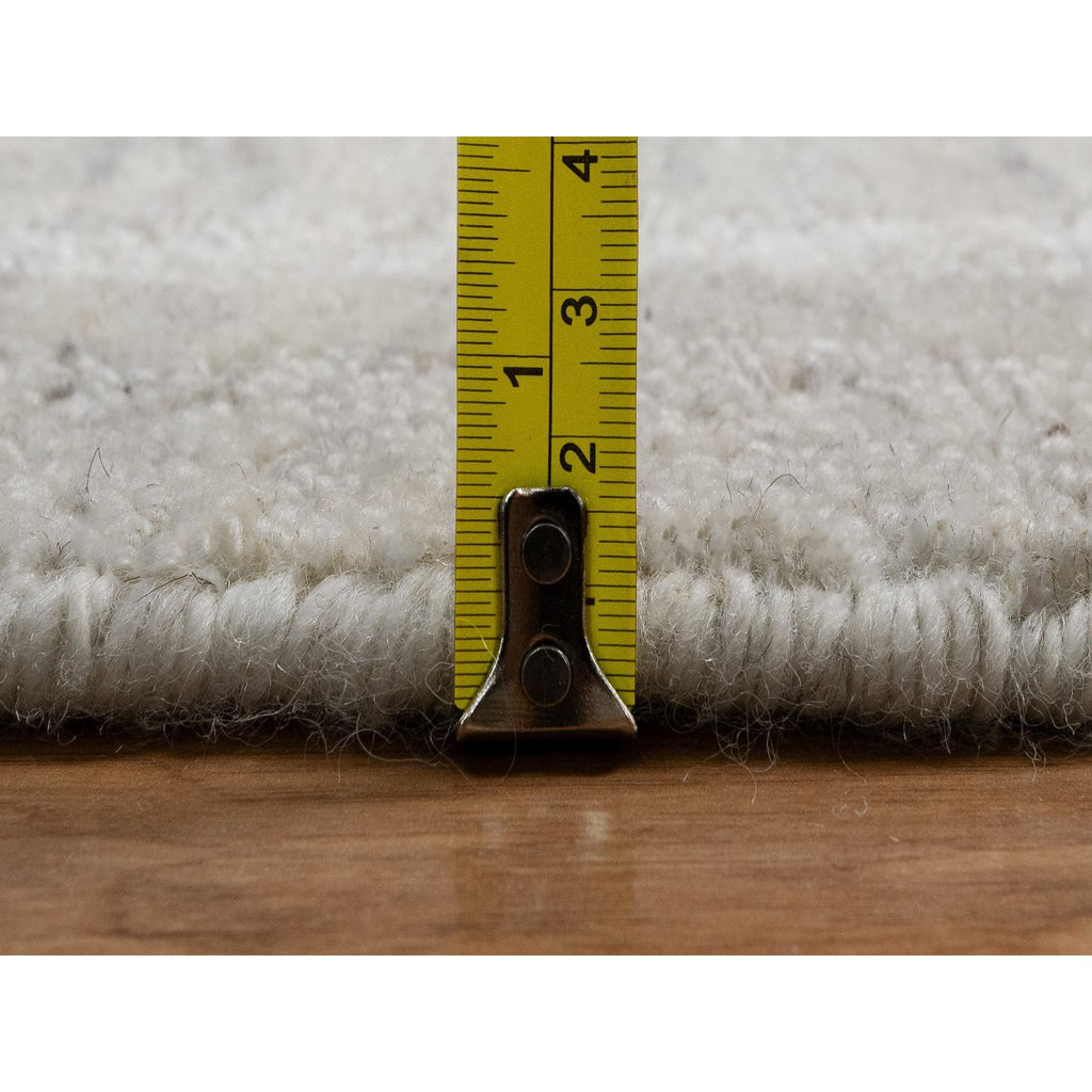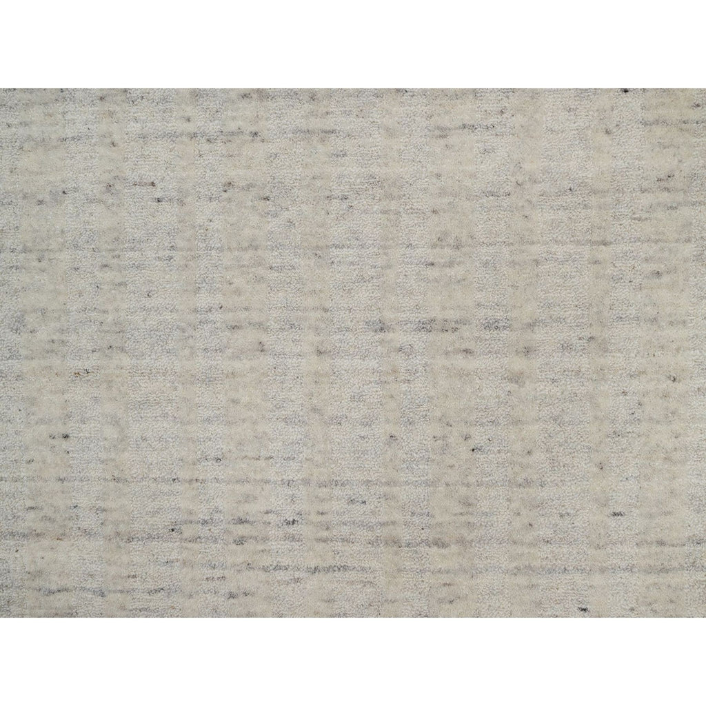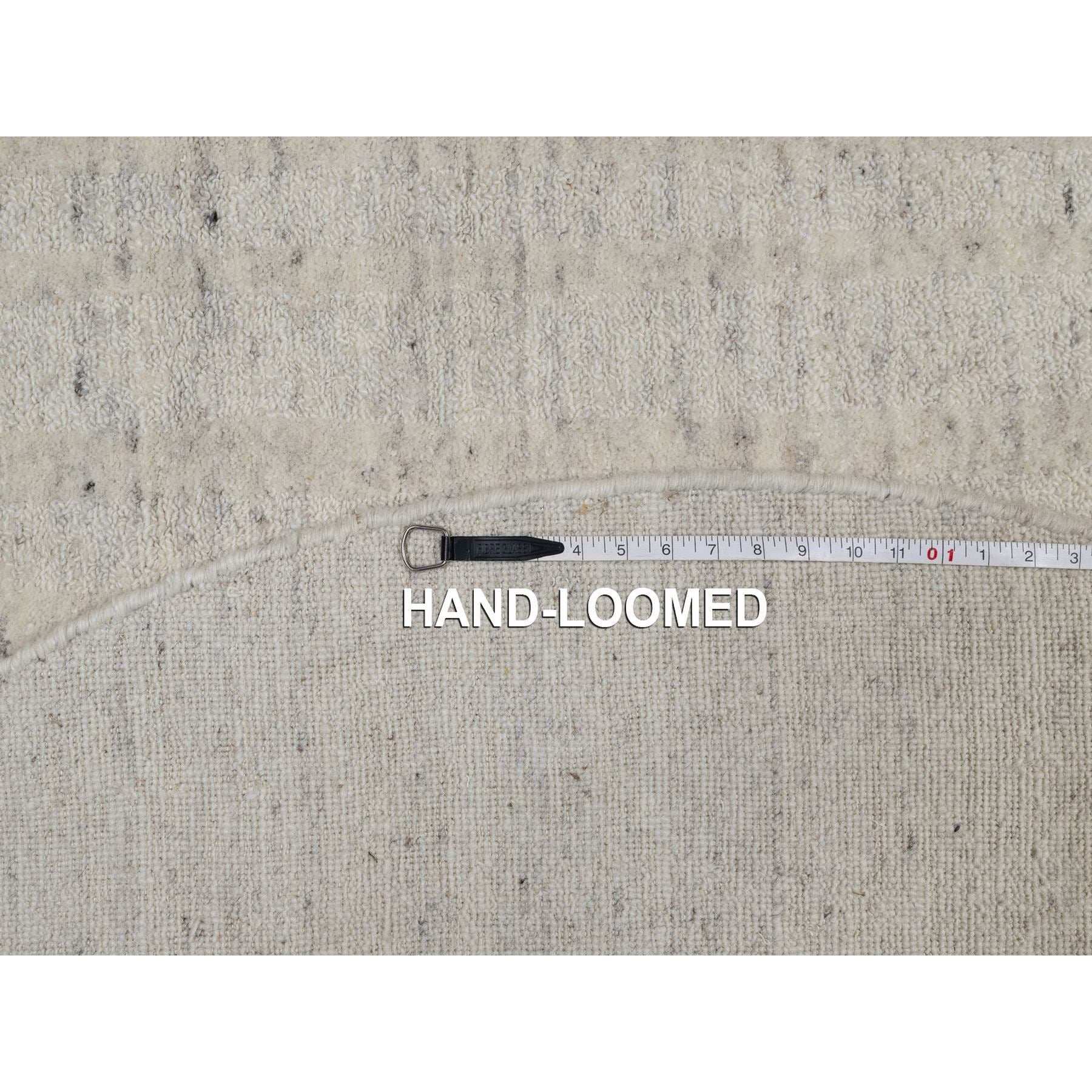 6'x6' Bone White, Vertical Stripes Design With Salt And Pepper Effect, Undyed Natural Wool, Hand Loomed, Round, Oriental Rug FWR550068