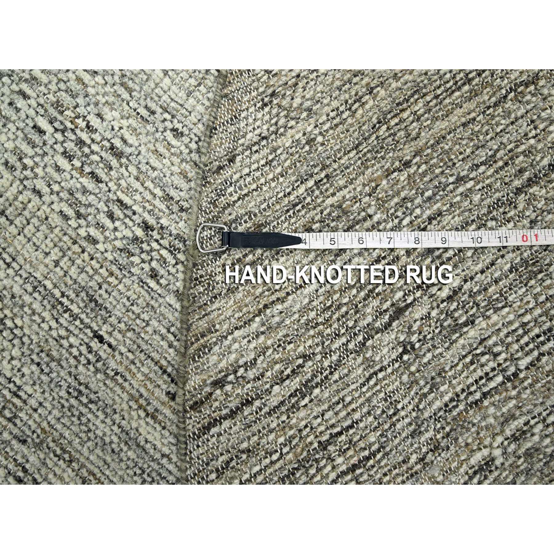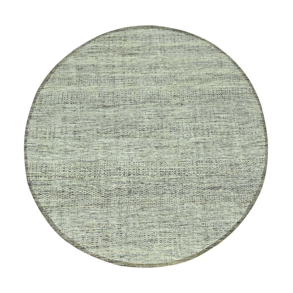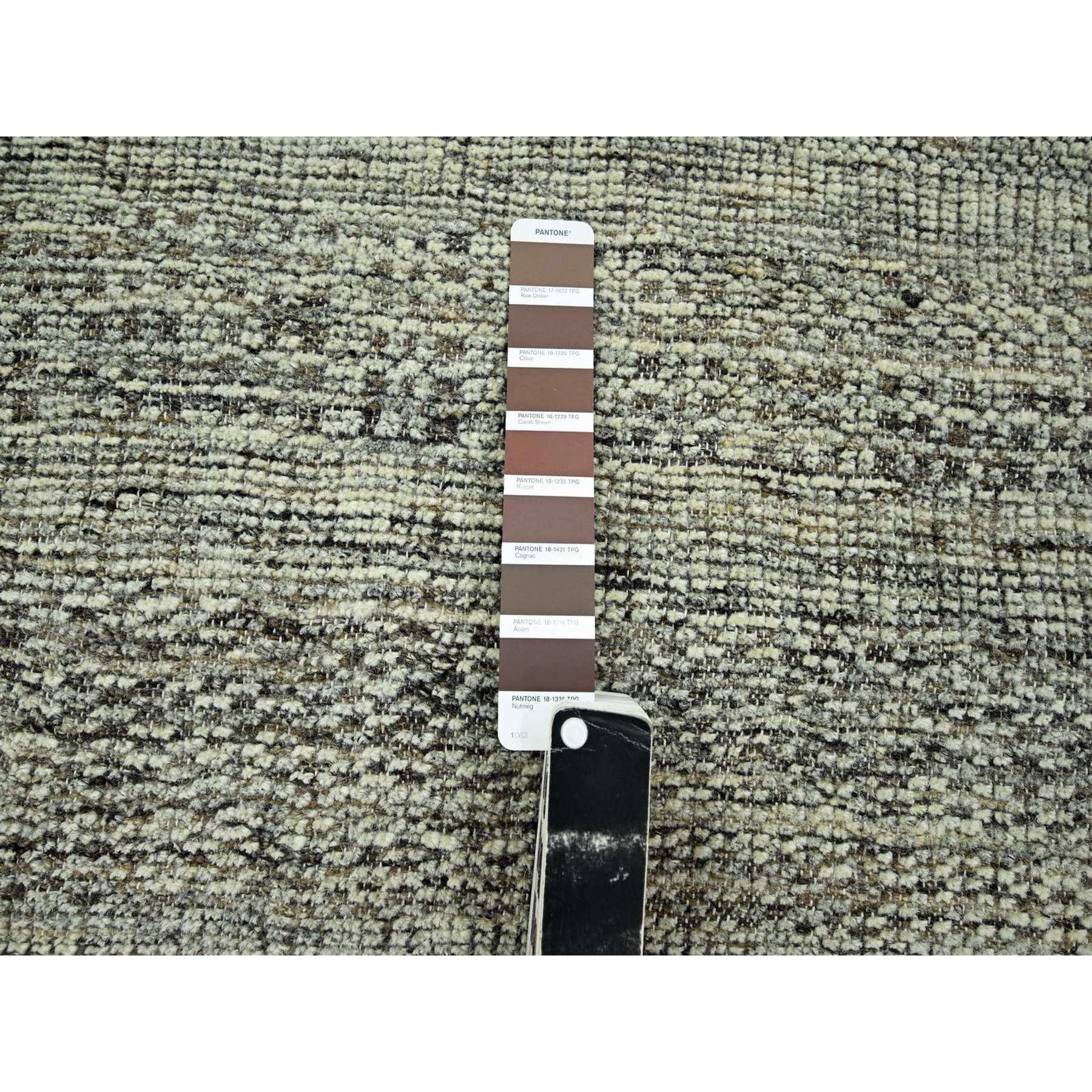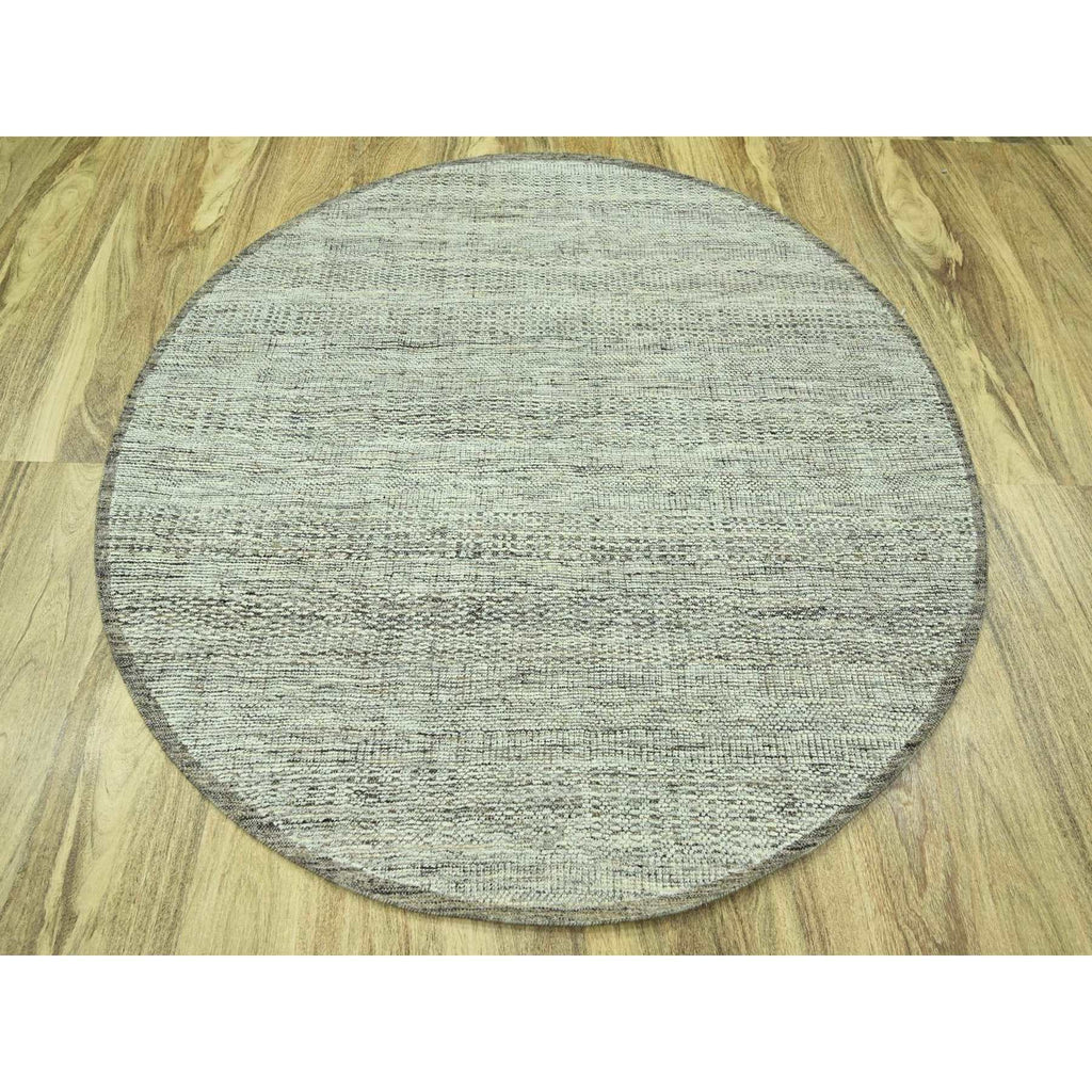 6'x6' Coconut Brown, Oxidized And Distressed Grass Design With Exposed Warps, Hand Knotted, 100% Wool, Round, Oriental Rug FWR460398