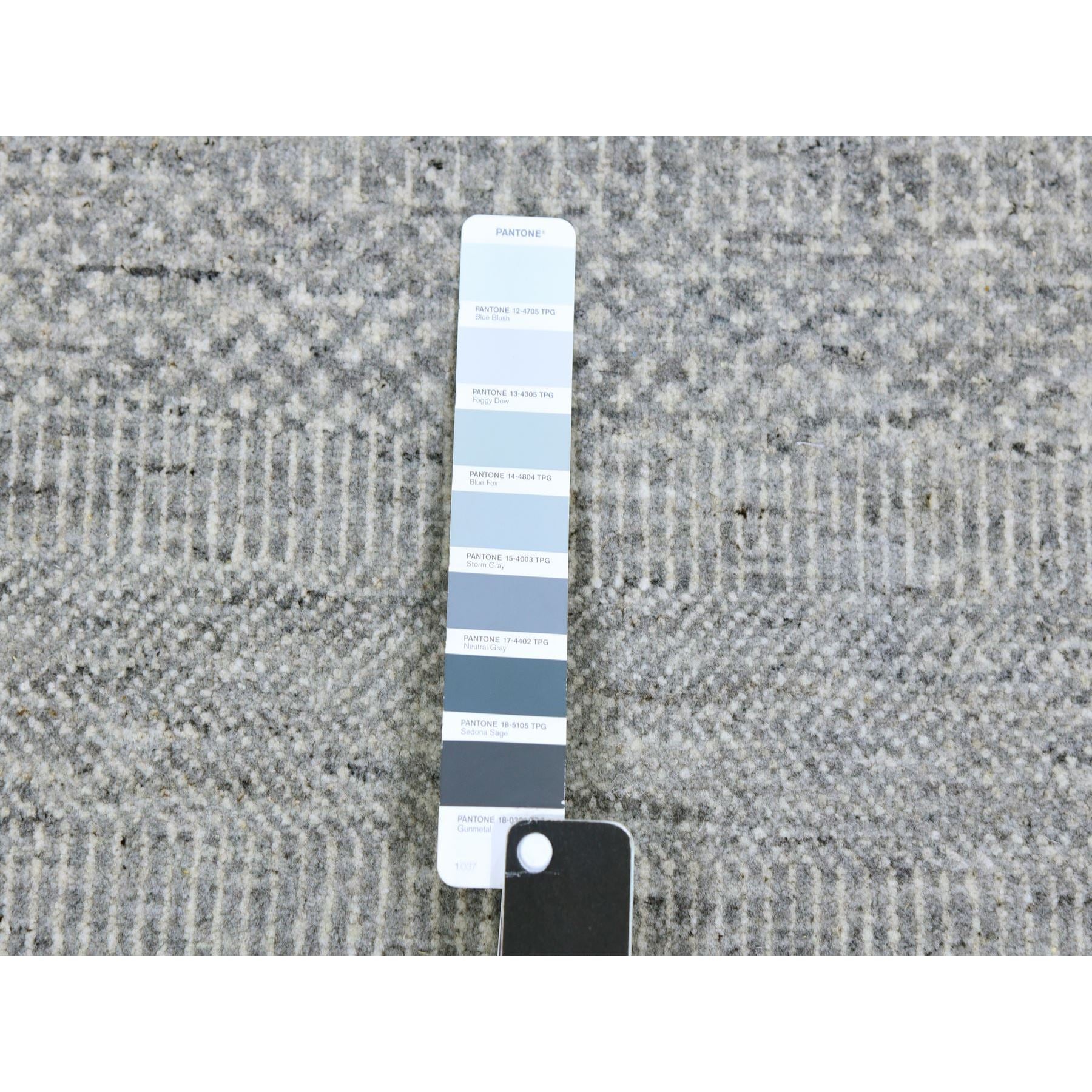 6'x6' Dark Gray, Hand Knotted, Tone On Tone, Modern Grass Design, Natural Undyed Wool, Square Oriental Rug FWR477258